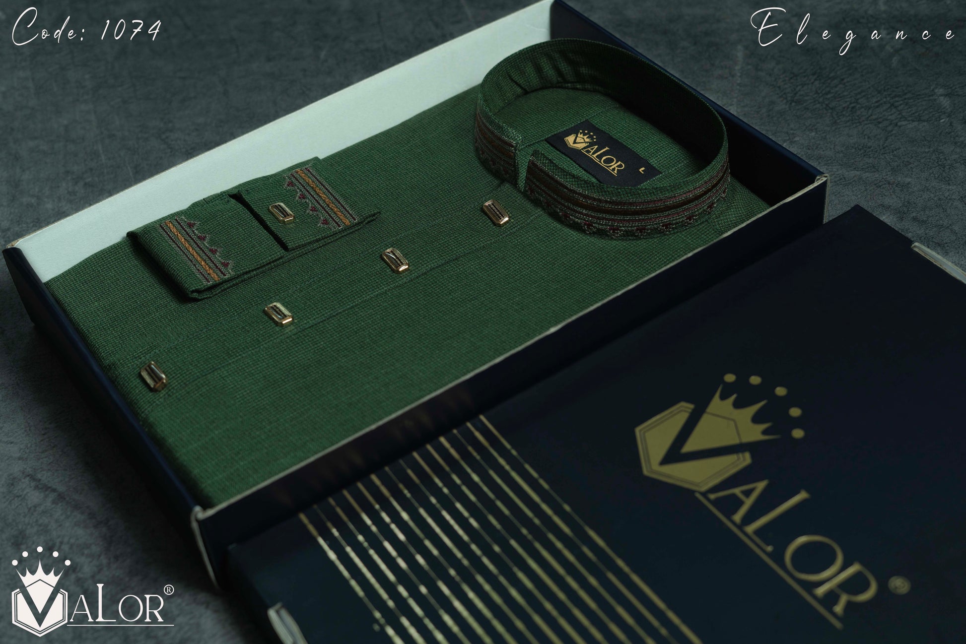 Storage: Store your VALOR Panjabi in a cool, dry place, away from direct sunlight, to prevent fabric discoloration. Cover it with a breathable garment bag to protect it from dust.