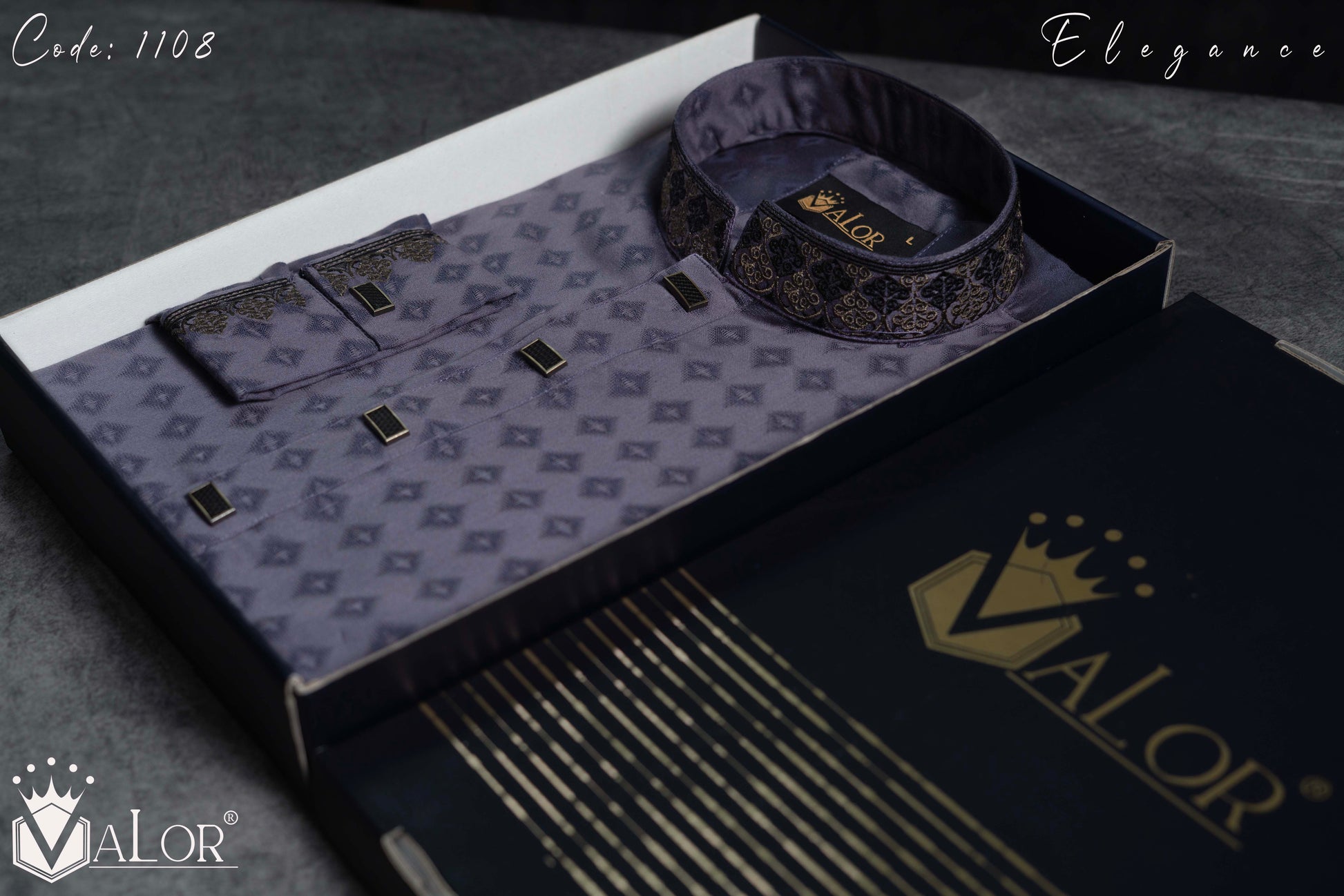 Storage: Store your VALOR Panjabi in a cool, dry place, away from direct sunlight, to prevent fabric discoloration. Cover it with a breathable garment bag to protect it from dust.