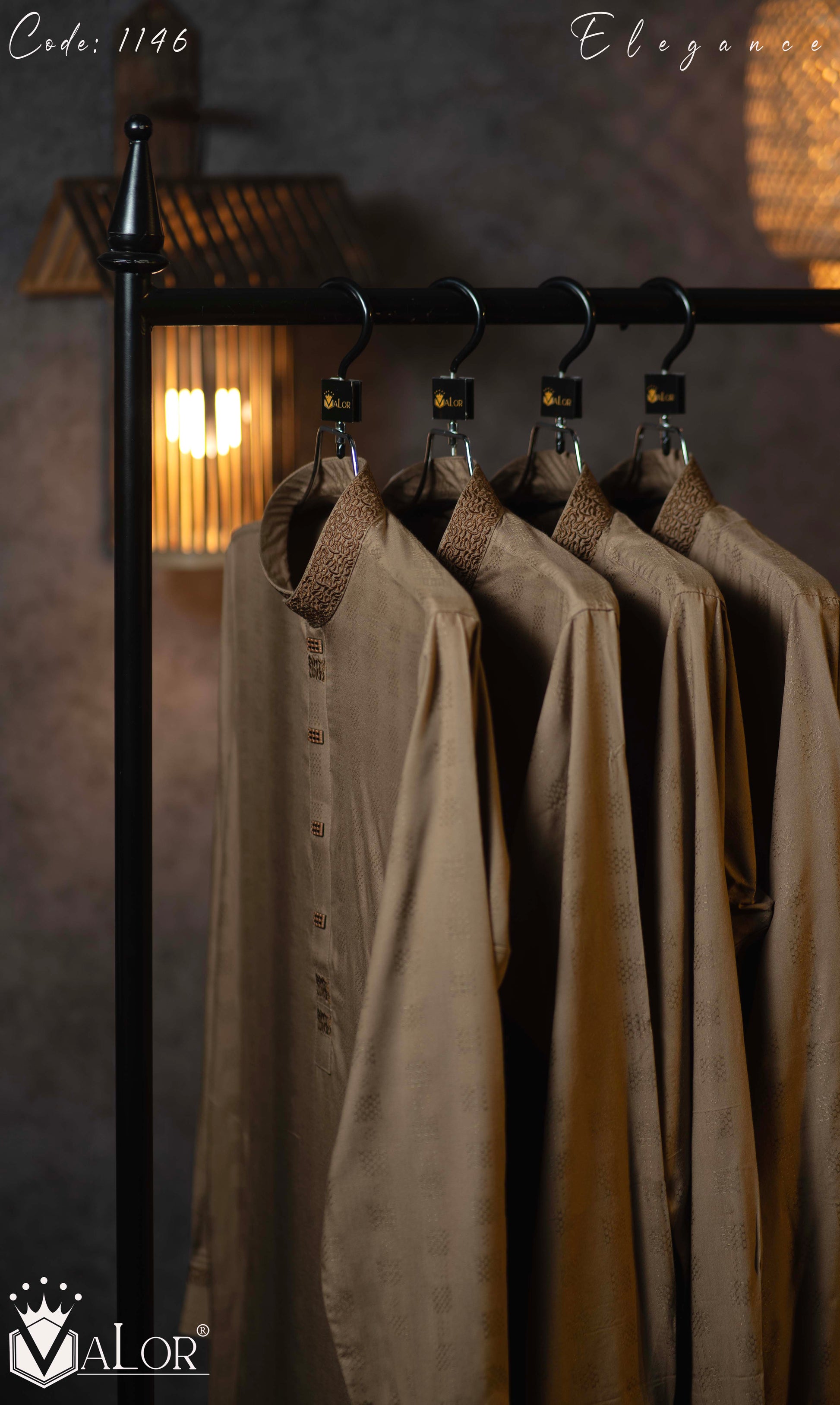 Storage: Store your VALOR Panjabi in a cool, dry place, away from direct sunlight, to prevent fabric discoloration. Cover it with a breathable garment bag to protect it from dust.