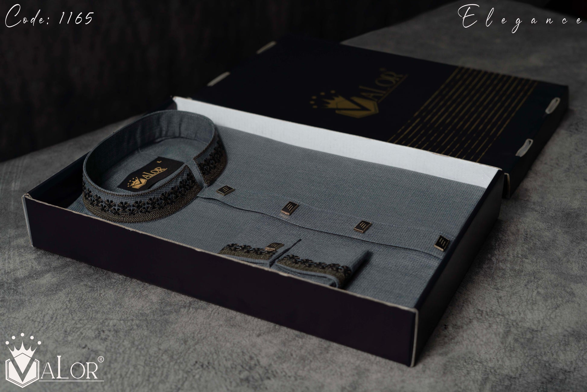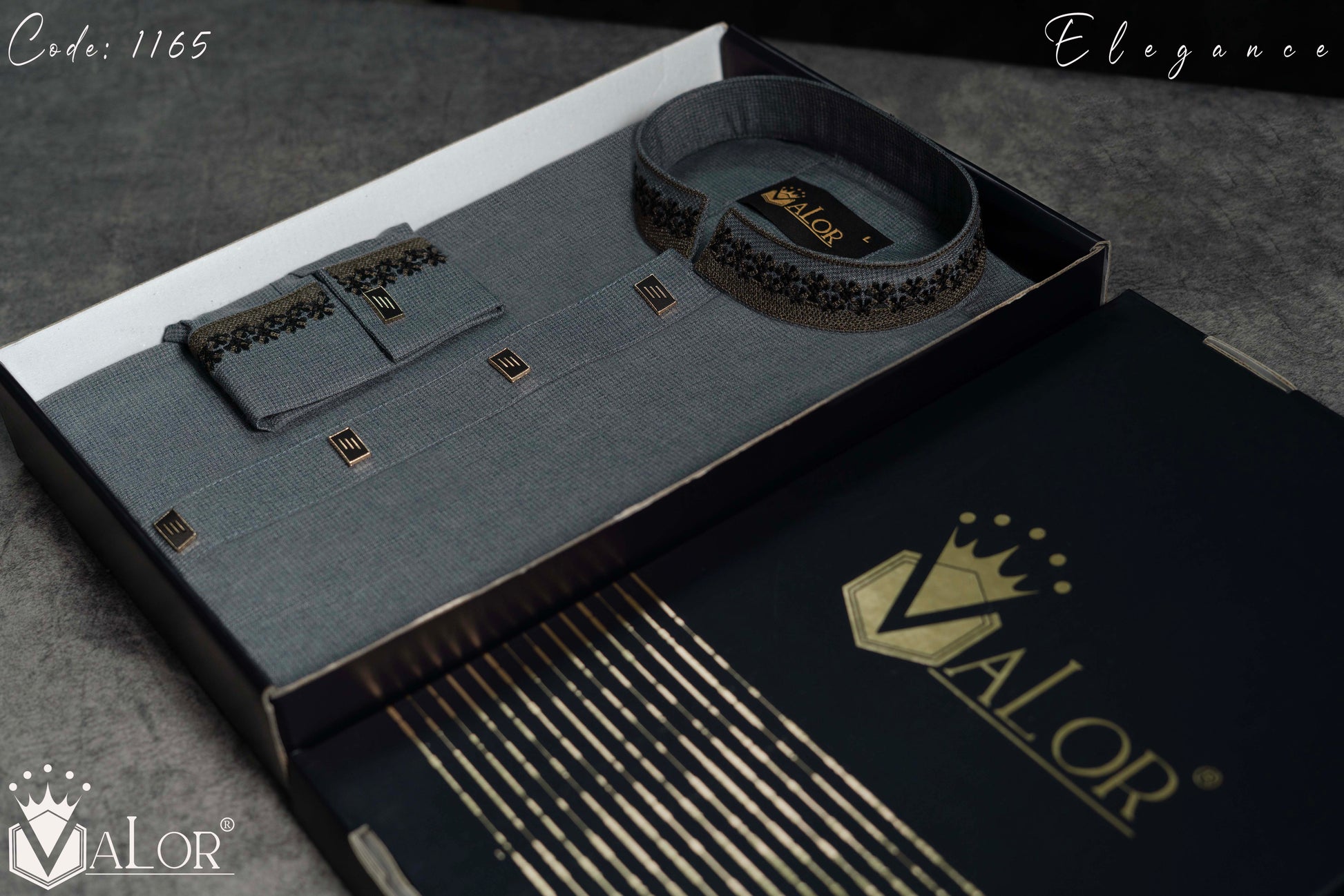 Storage: Store your VALOR Panjabi in a cool, dry place, away from direct sunlight, to prevent fabric discoloration. Cover it with a breathable garment bag to protect it from dust.