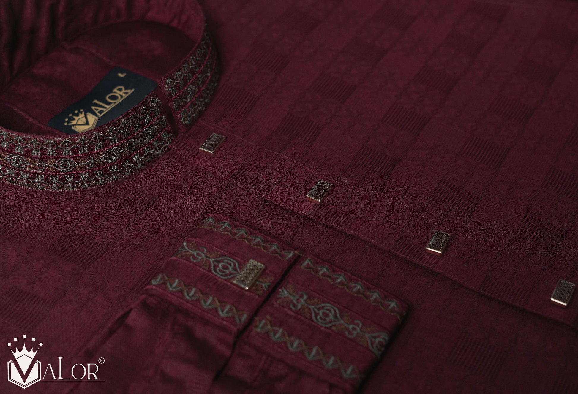 Storage: Store your VALOR Panjabi in a cool, dry place, away from direct sunlight, to prevent fabric discoloration. Cover it with a breathable garment bag to protect it from dust.