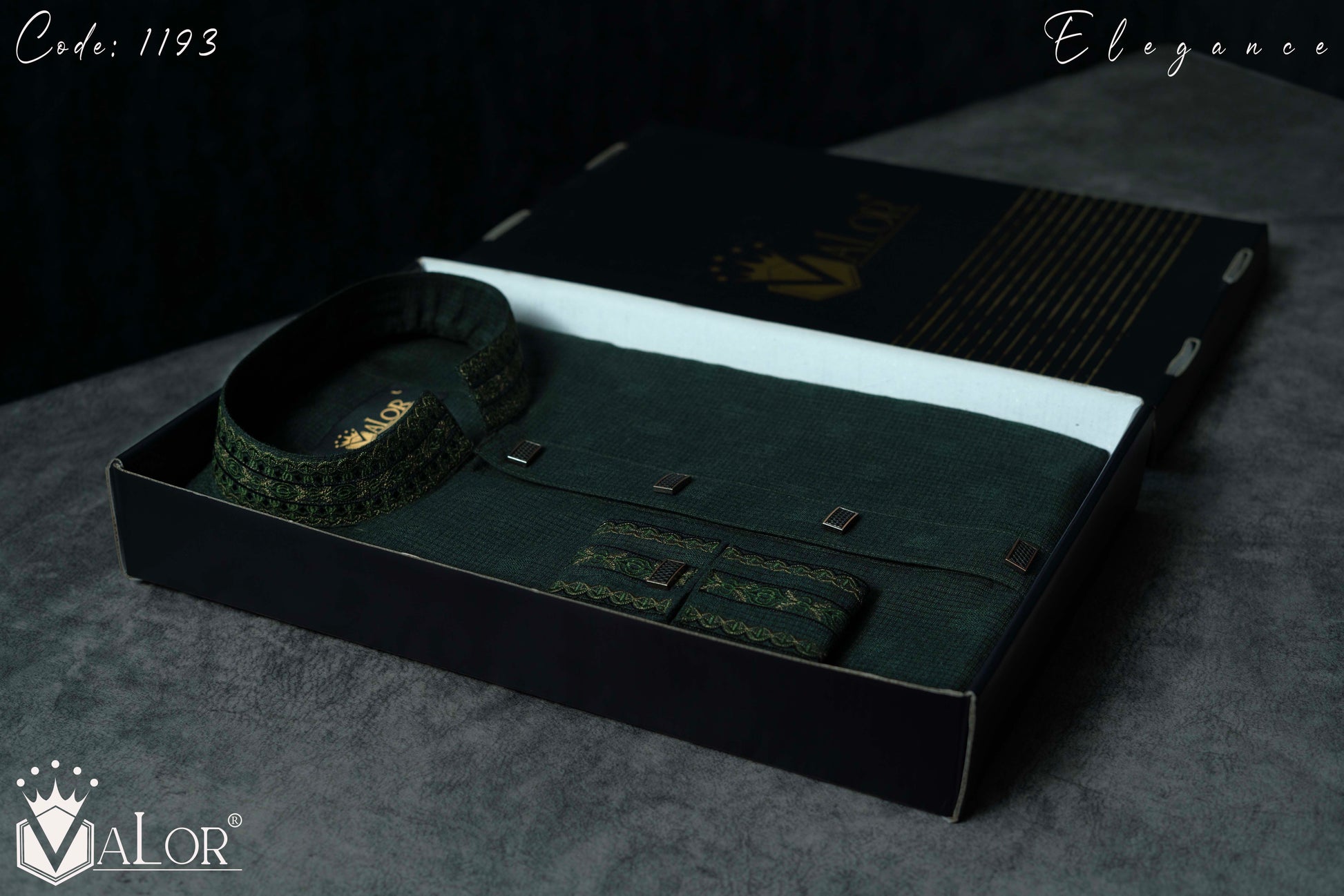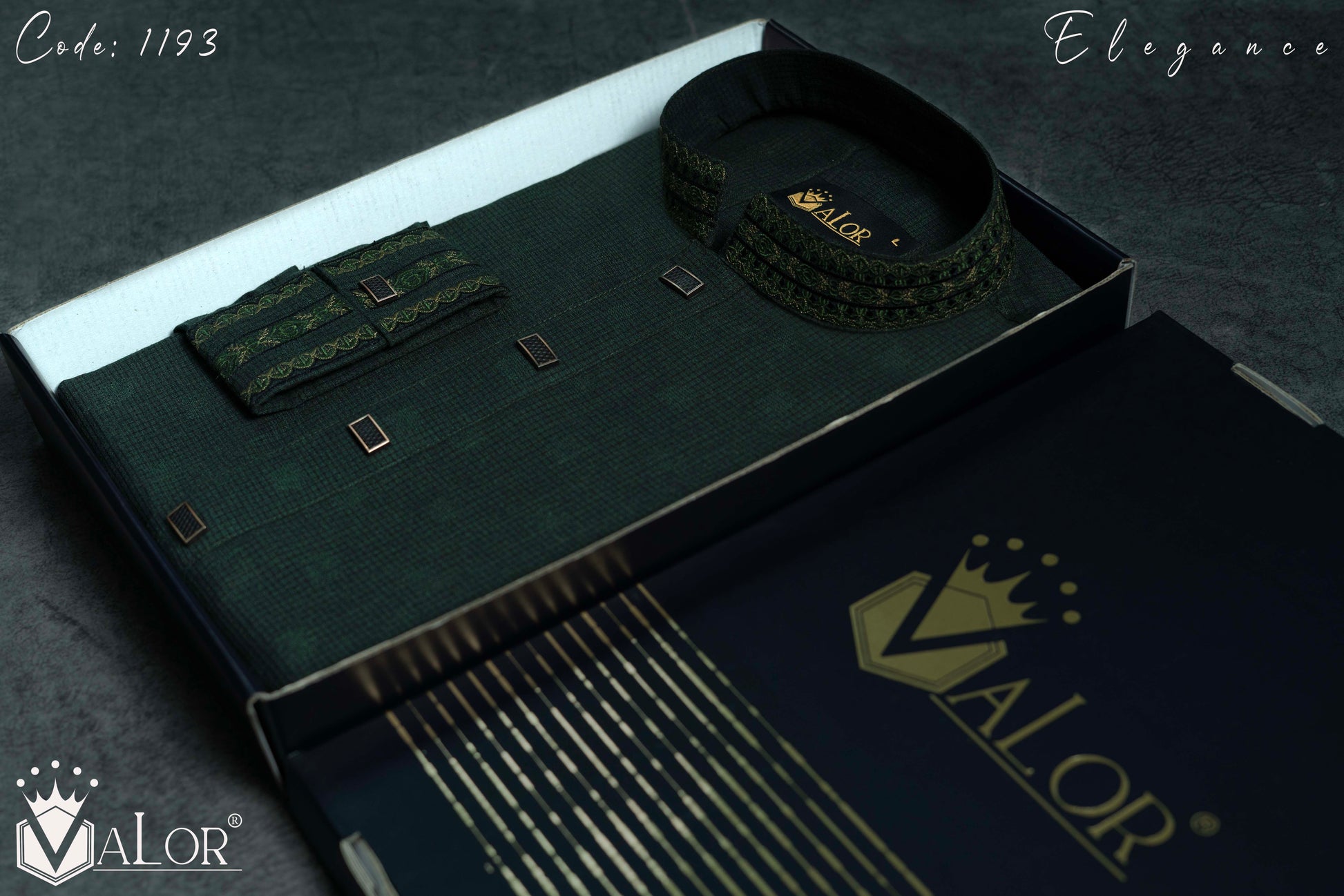 Storage: Store your VALOR Panjabi in a cool, dry place, away from direct sunlight, to prevent fabric discoloration. Cover it with a breathable garment bag to protect it from dust.
