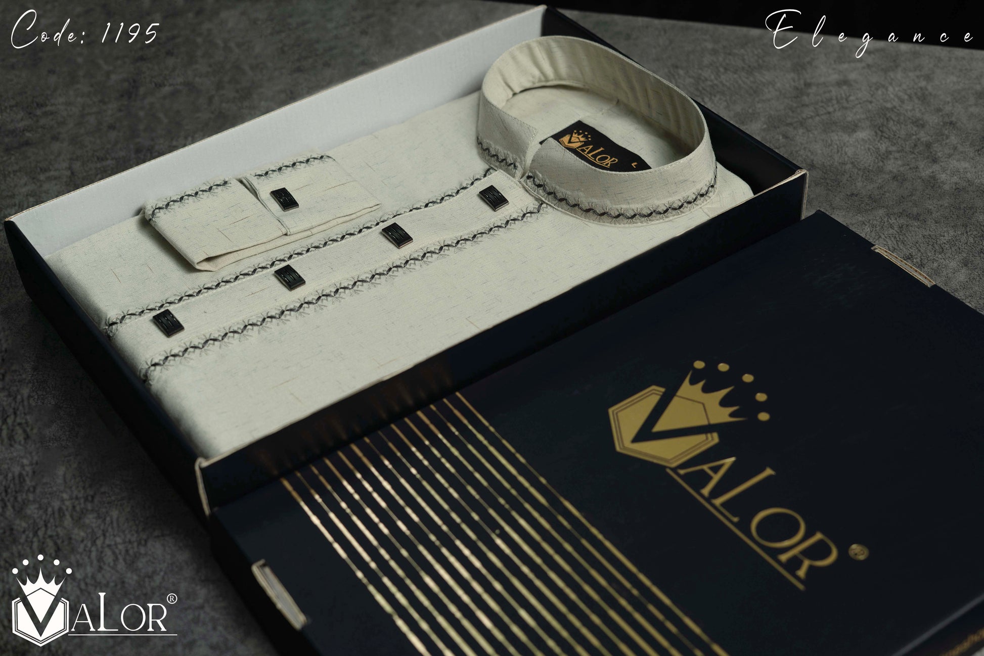 Storage: Store your VALOR Panjabi in a cool, dry place, away from direct sunlight, to prevent fabric discoloration. Cover it with a breathable garment bag to protect it from dust.