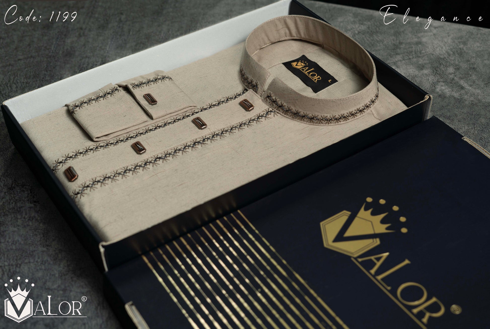 Storage: Store your VALOR Panjabi in a cool, dry place, away from direct sunlight, to prevent fabric discoloration. Cover it with a breathable garment bag to protect it from dust.