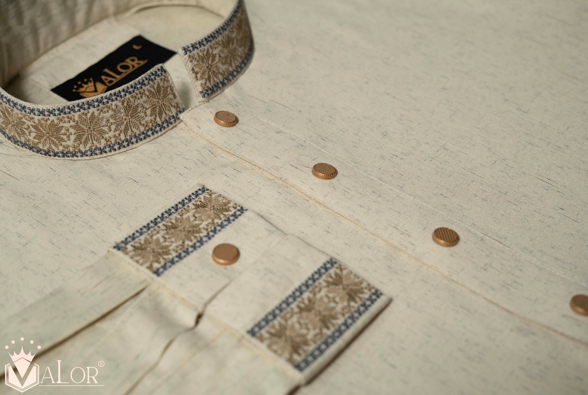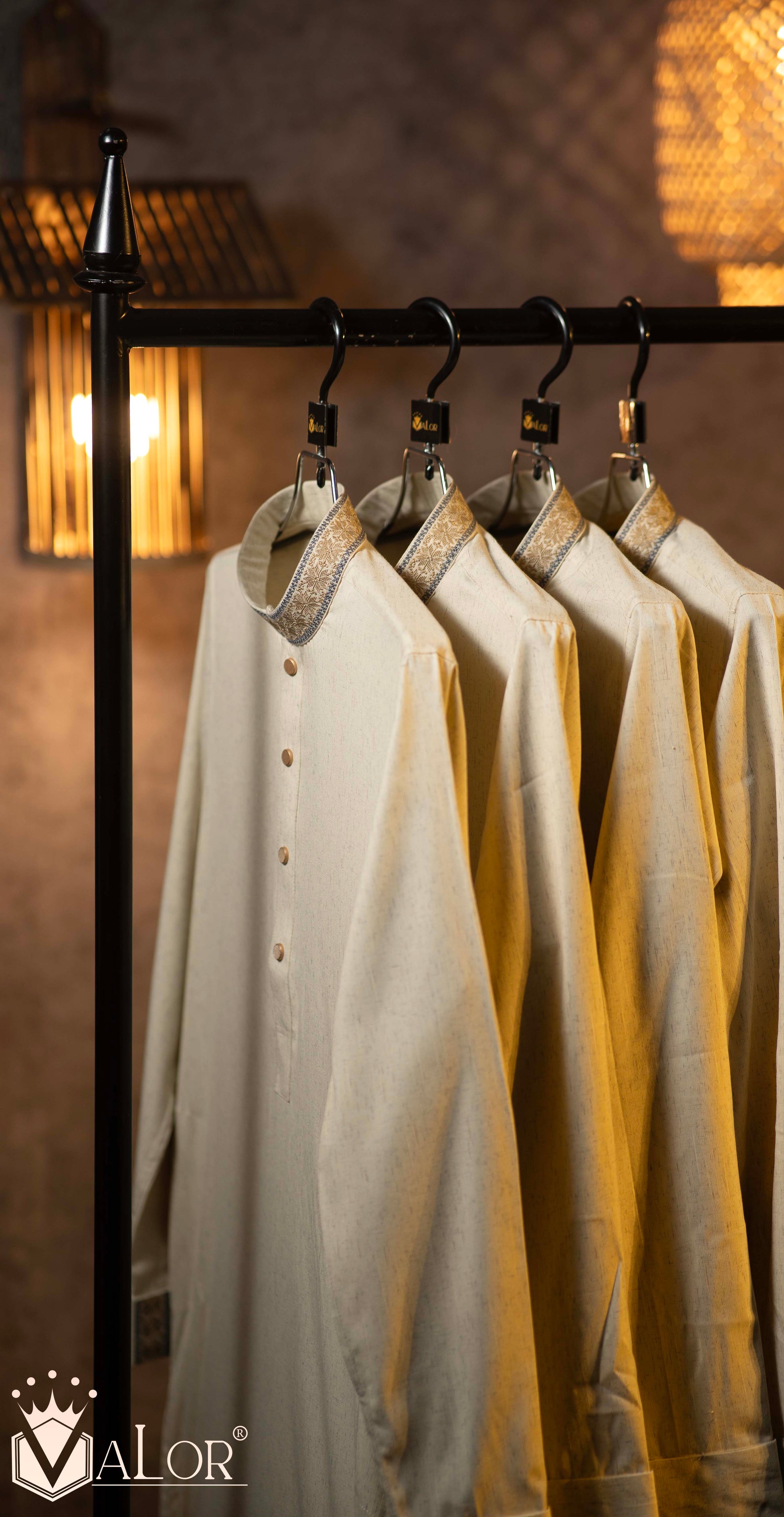 Storage: Store your VALOR Panjabi in a cool, dry place, away from direct sunlight, to prevent fabric discoloration. Cover it with a breathable garment bag to protect it from dust.