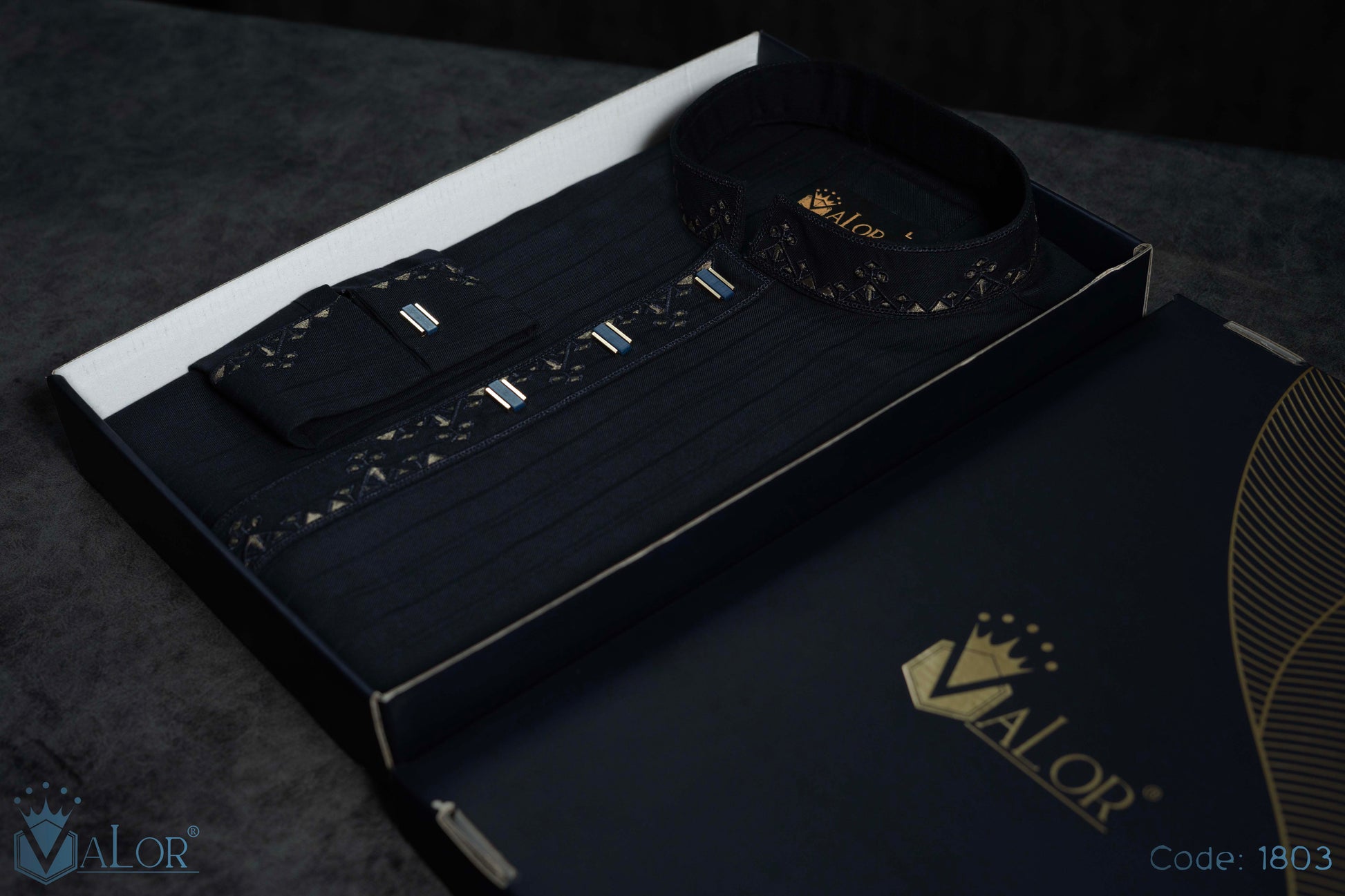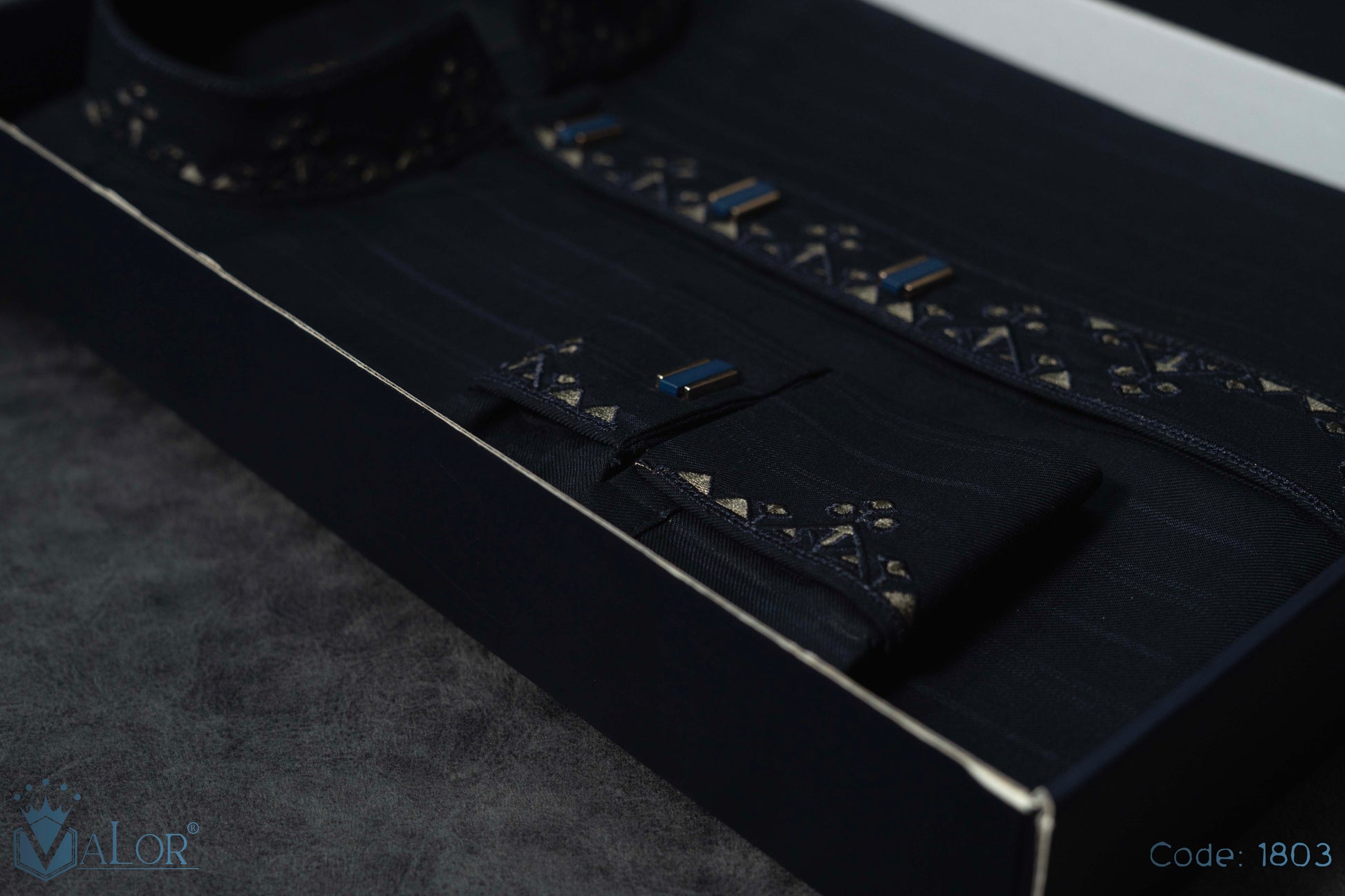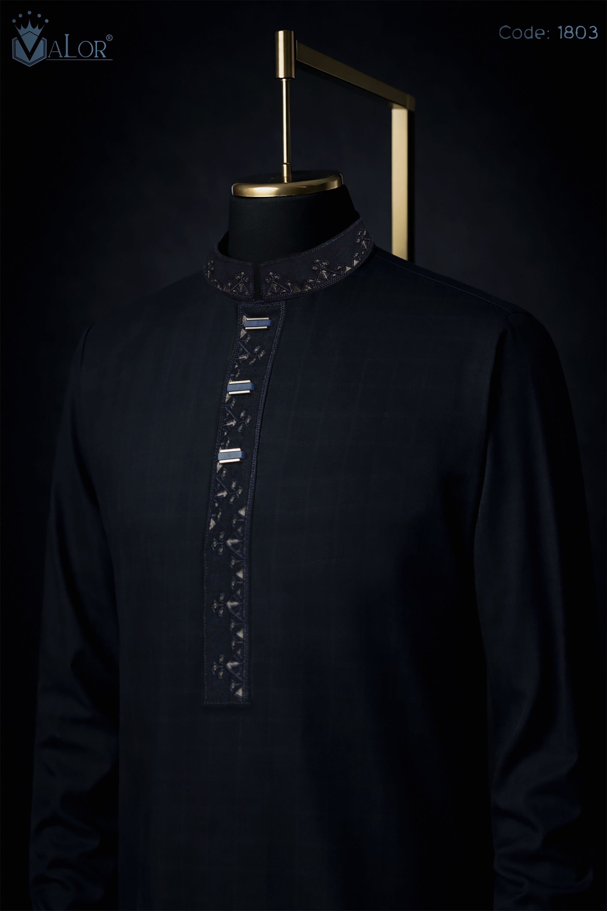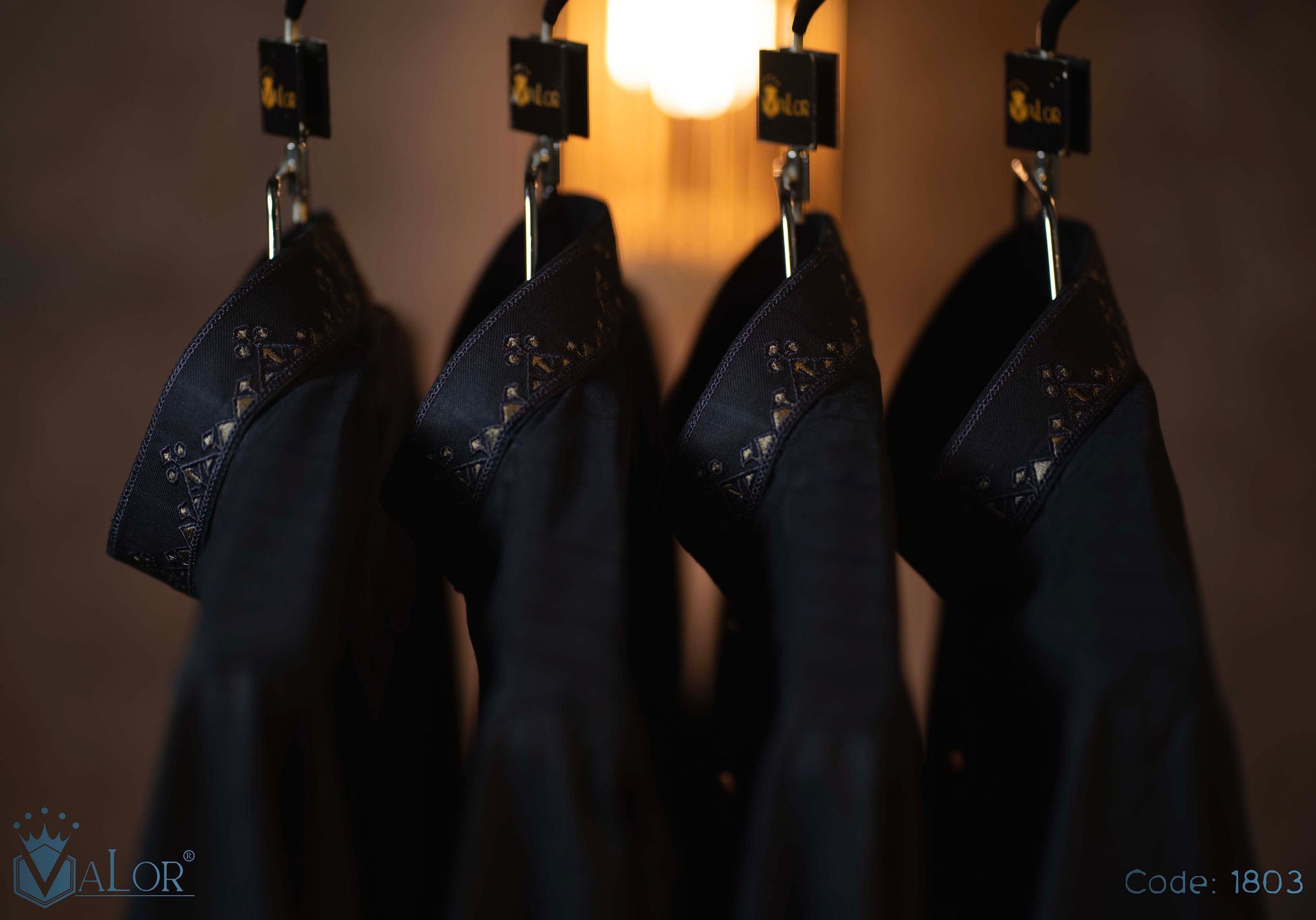 Store your VALOR Panjabi in a cool, dry place, away from direct sunlight, to prevent fabric discoloration. Cover it with a breathable garment bag to protect it from dust.