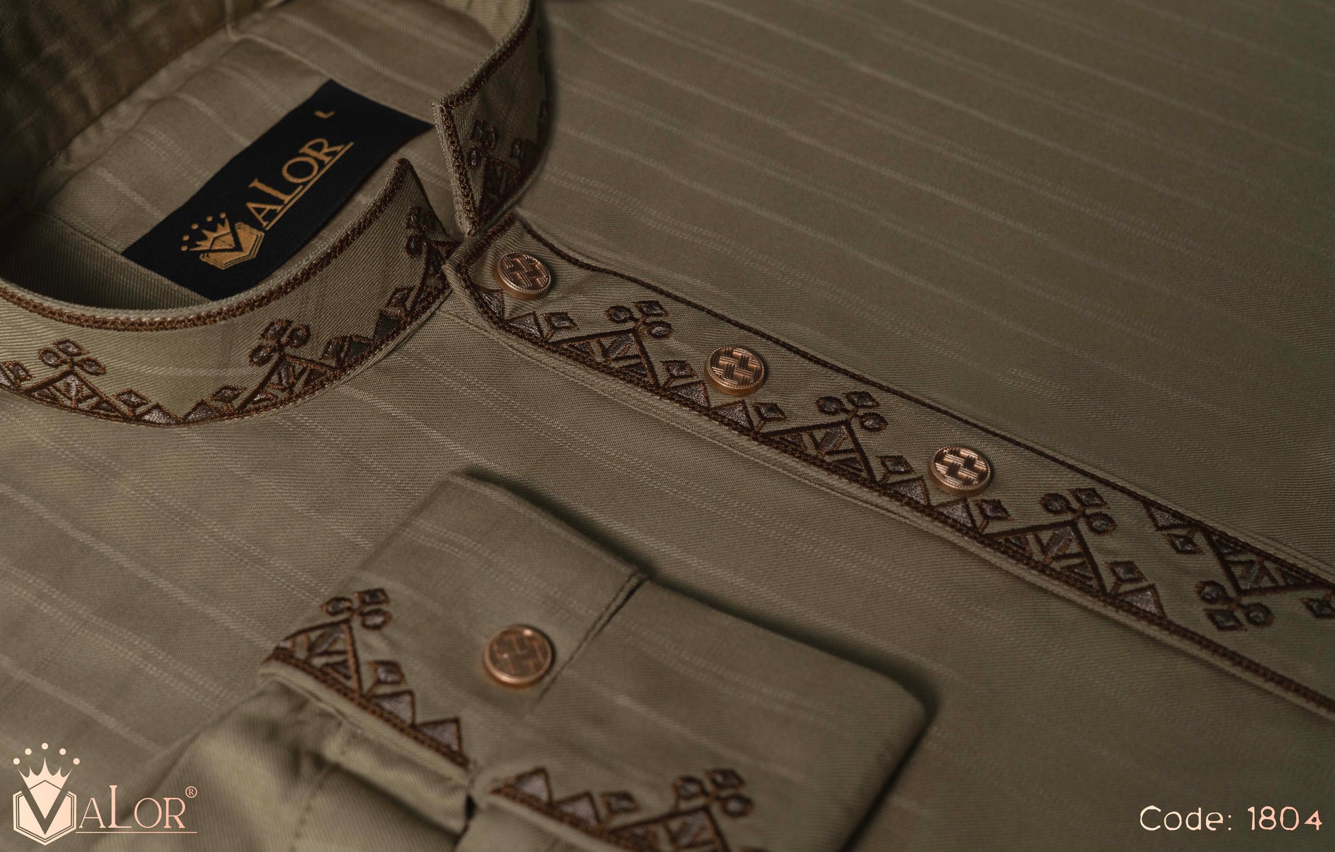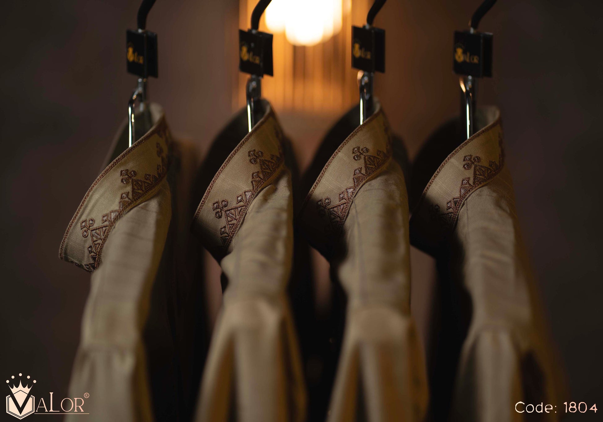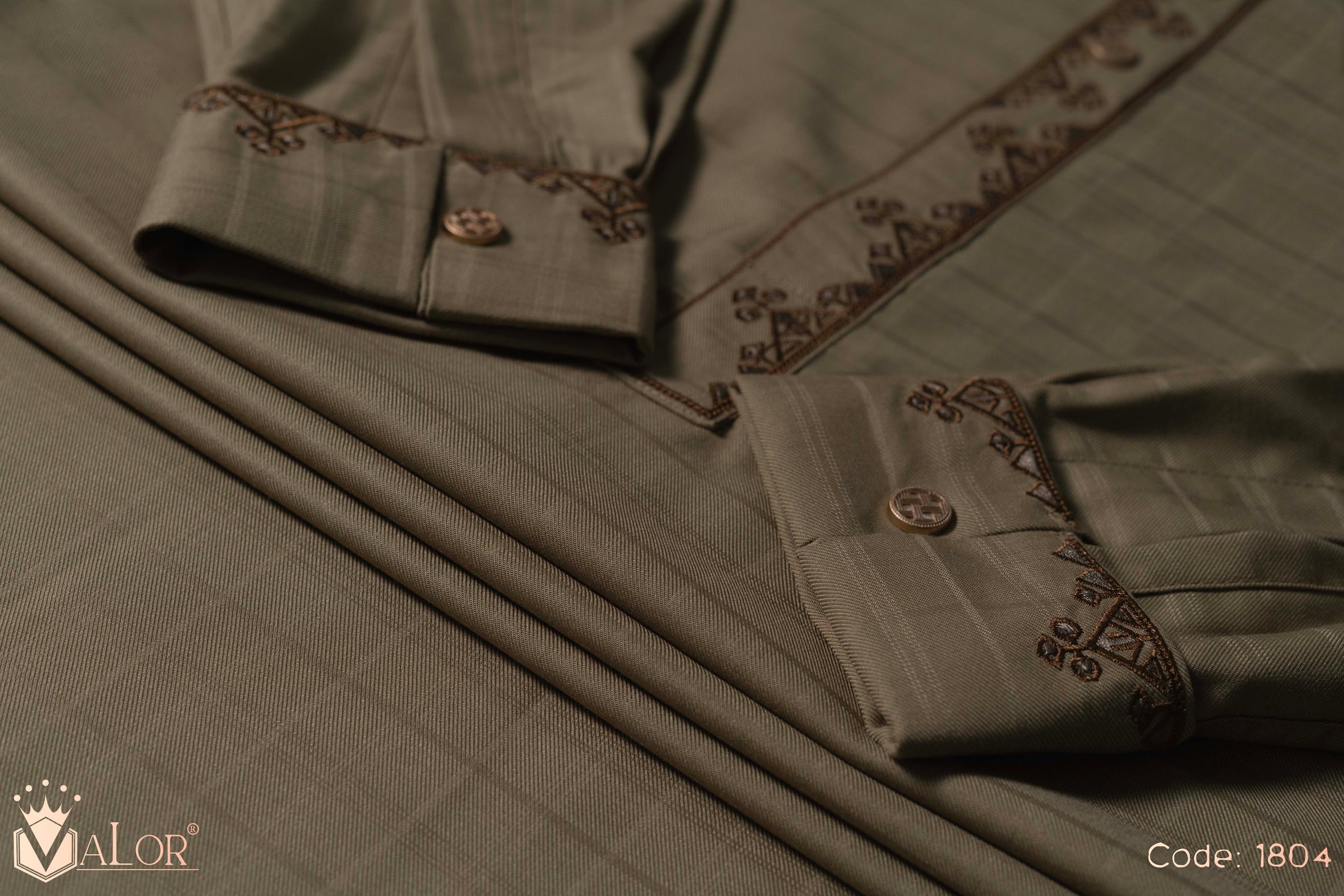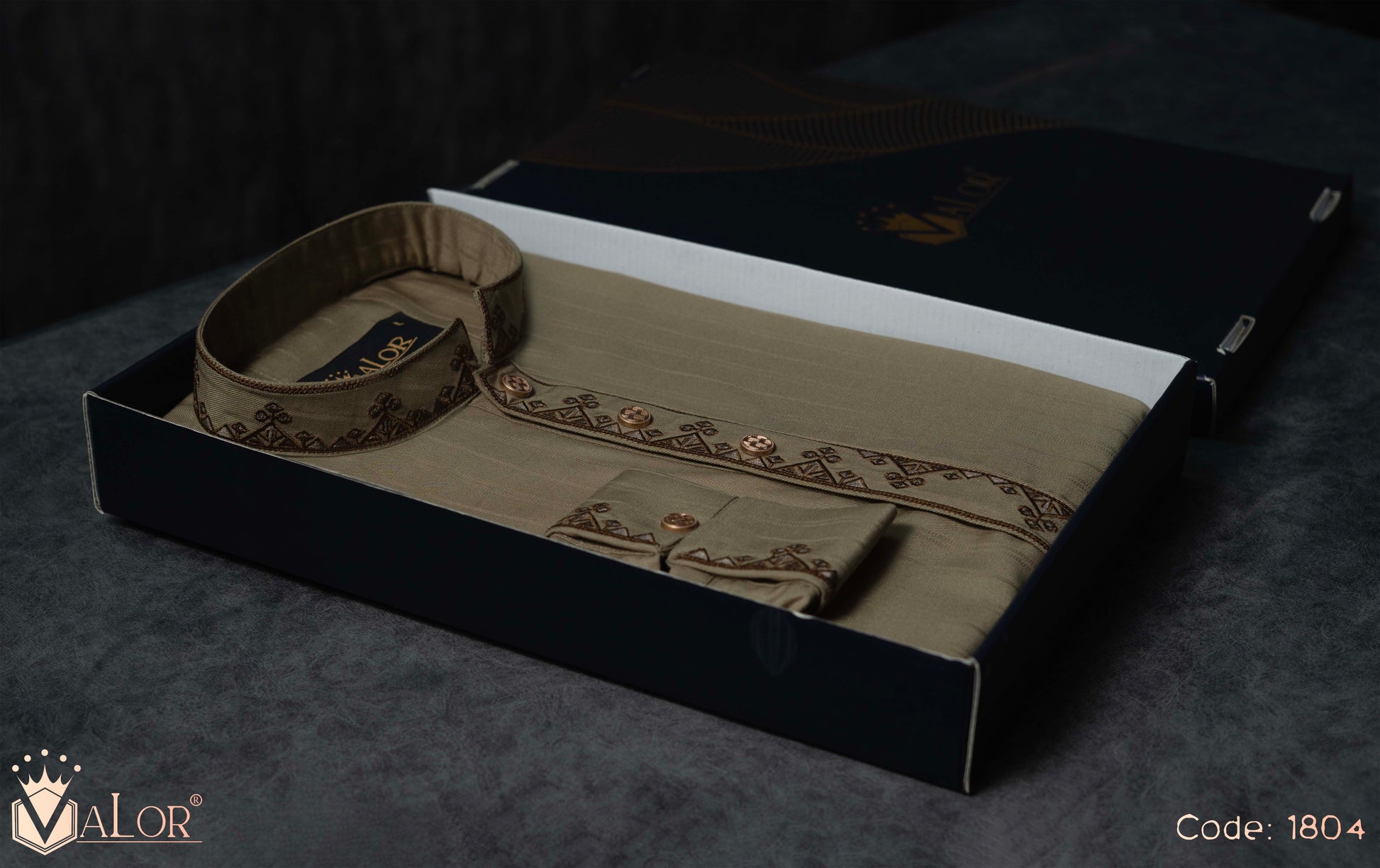 Store your VALOR Panjabi in a cool, dry place, away from direct sunlight, to prevent fabric discoloration. Cover it with a breathable garment bag to protect it from dust.