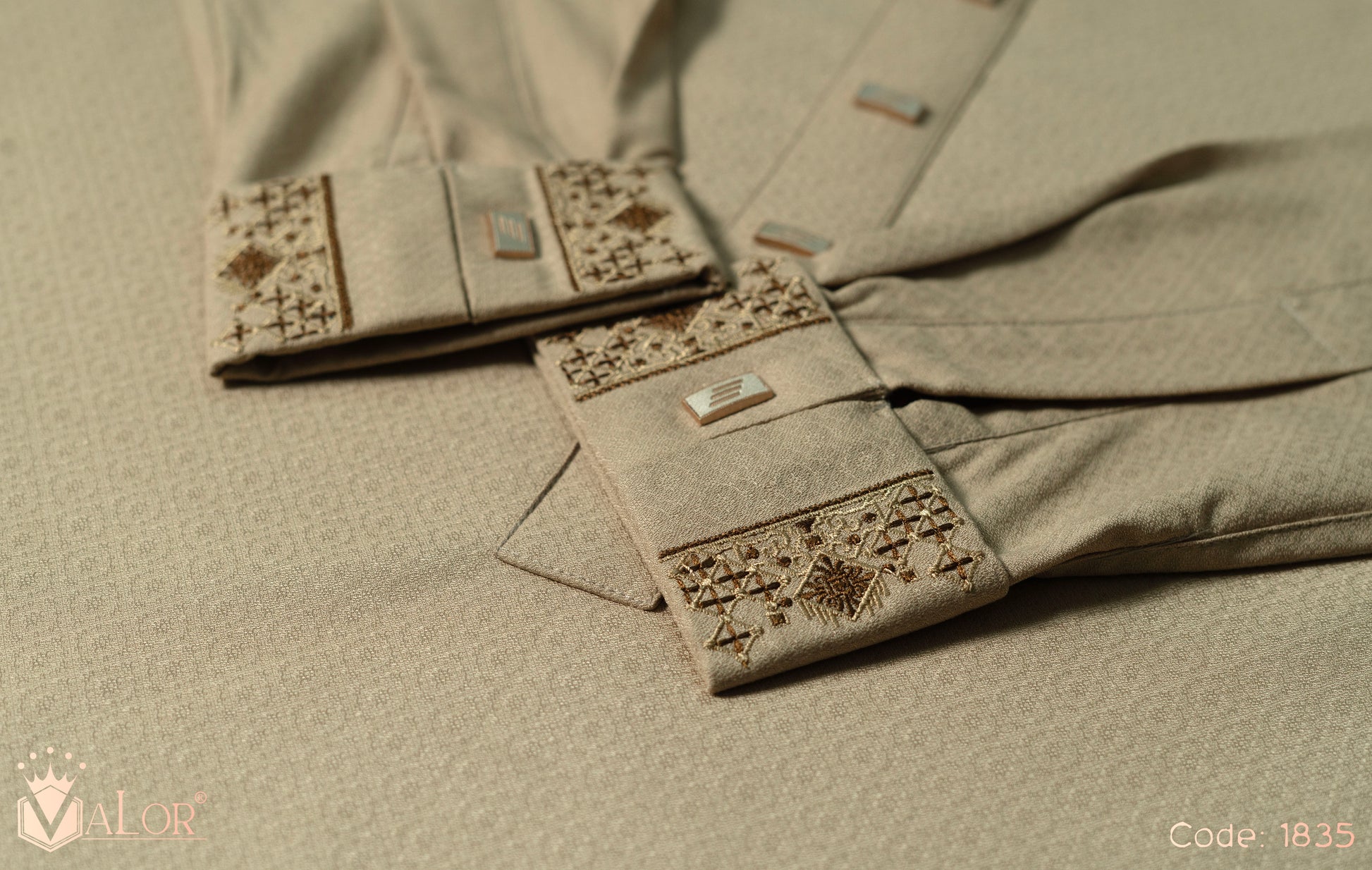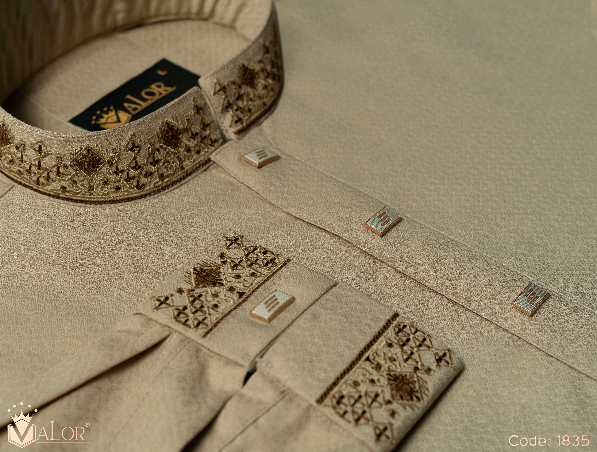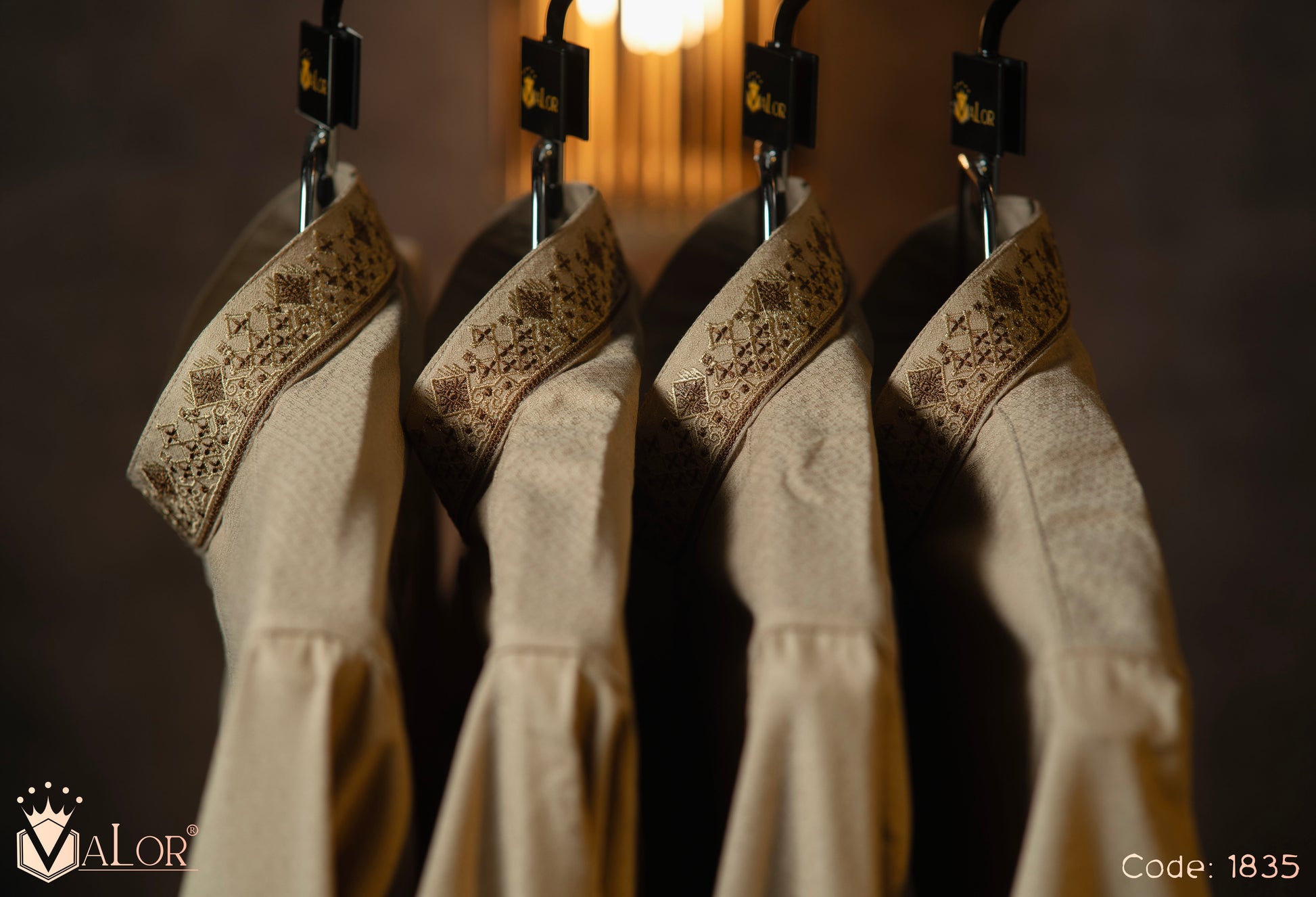 Store your VALOR Panjabi in a cool, dry place, away from direct sunlight, to prevent fabric discoloration. Cover it with a breathable garment bag to protect it from dust.