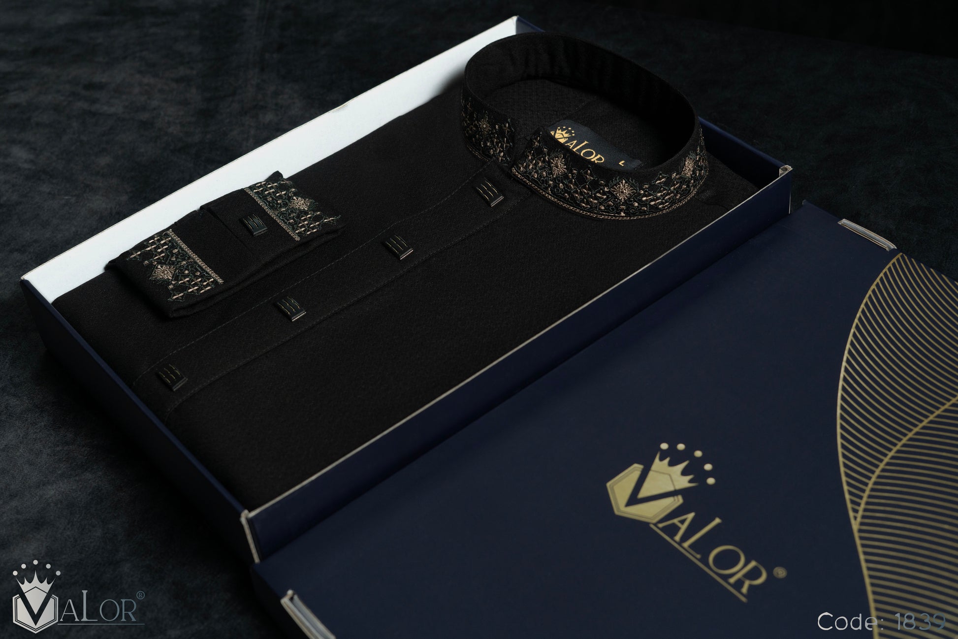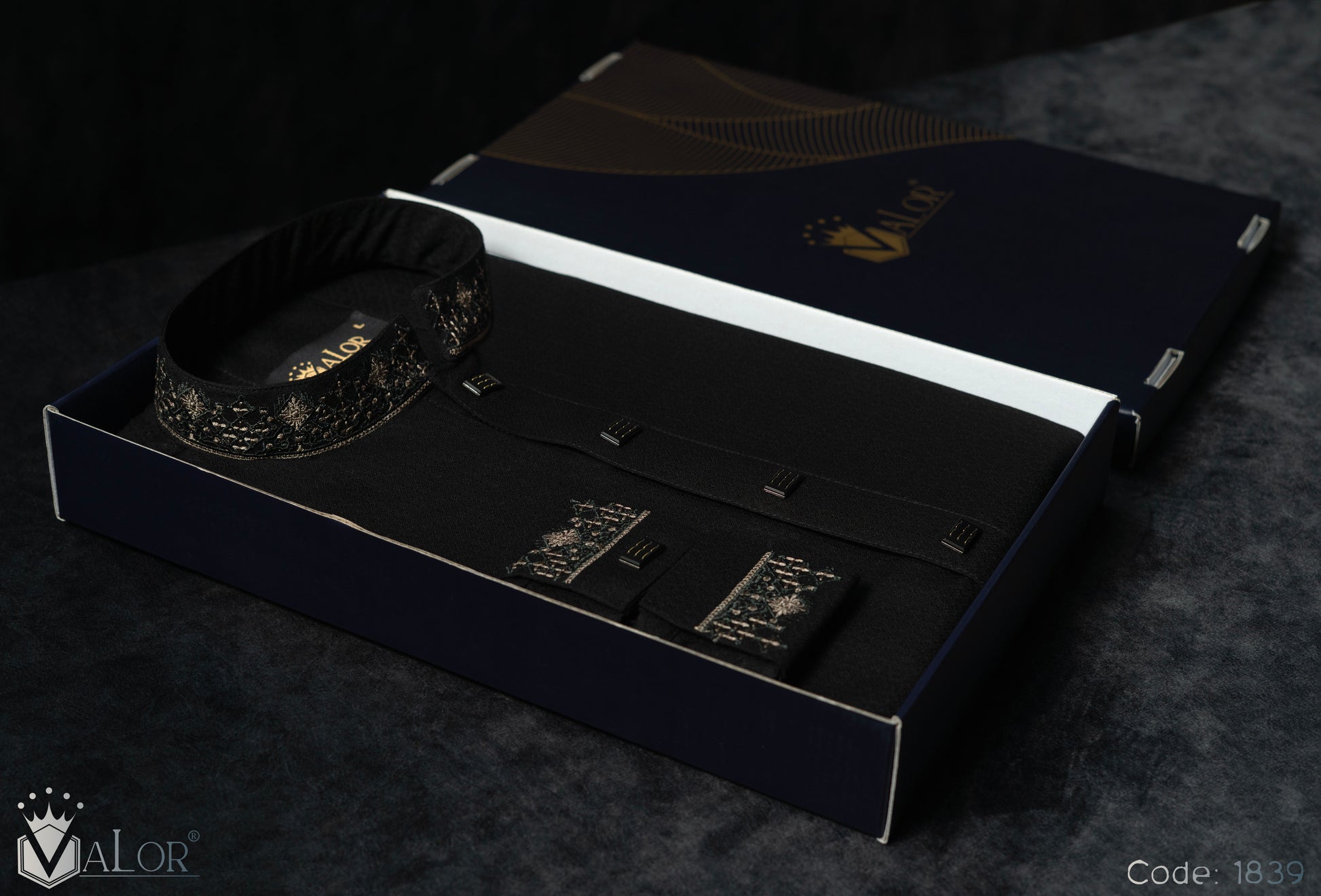 Store your VALOR Panjabi in a cool, dry place, away from direct sunlight, to prevent fabric discoloration. Cover it with a breathable garment bag to protect it from dust.
