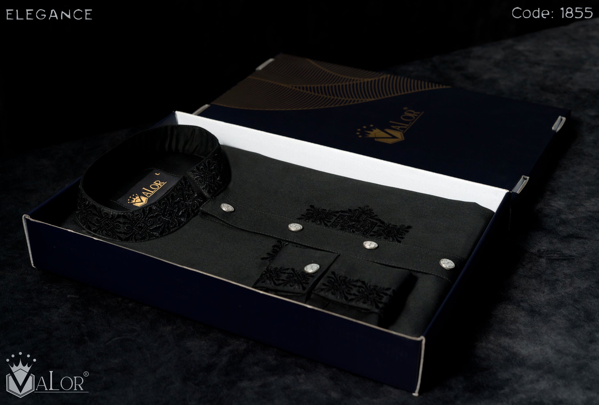 Store your VALOR Panjabi in a cool, dry place, away from direct sunlight, to prevent fabric discoloration. Cover it with a breathable garment bag to protect it from dust.