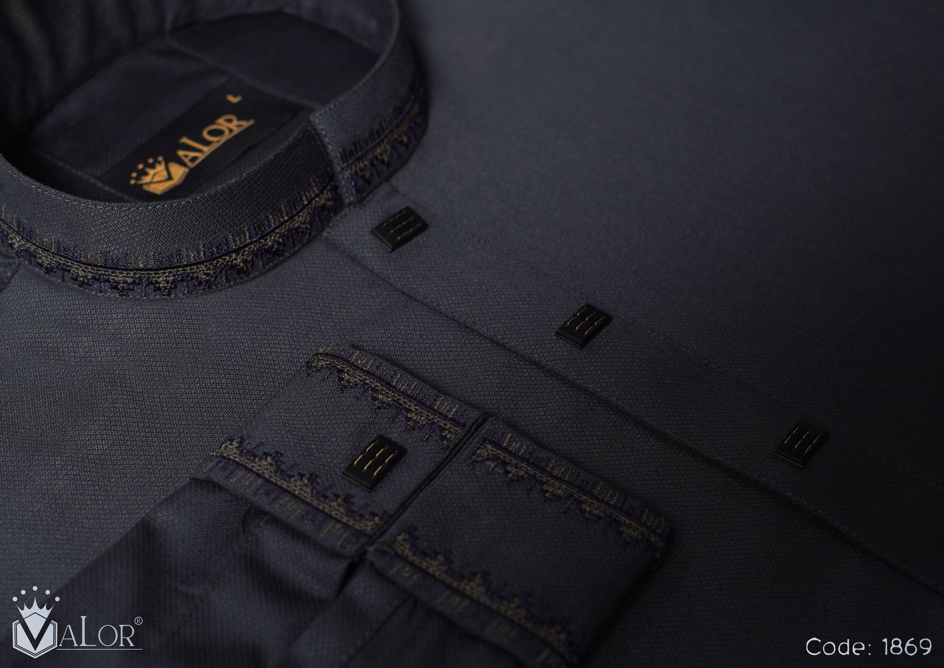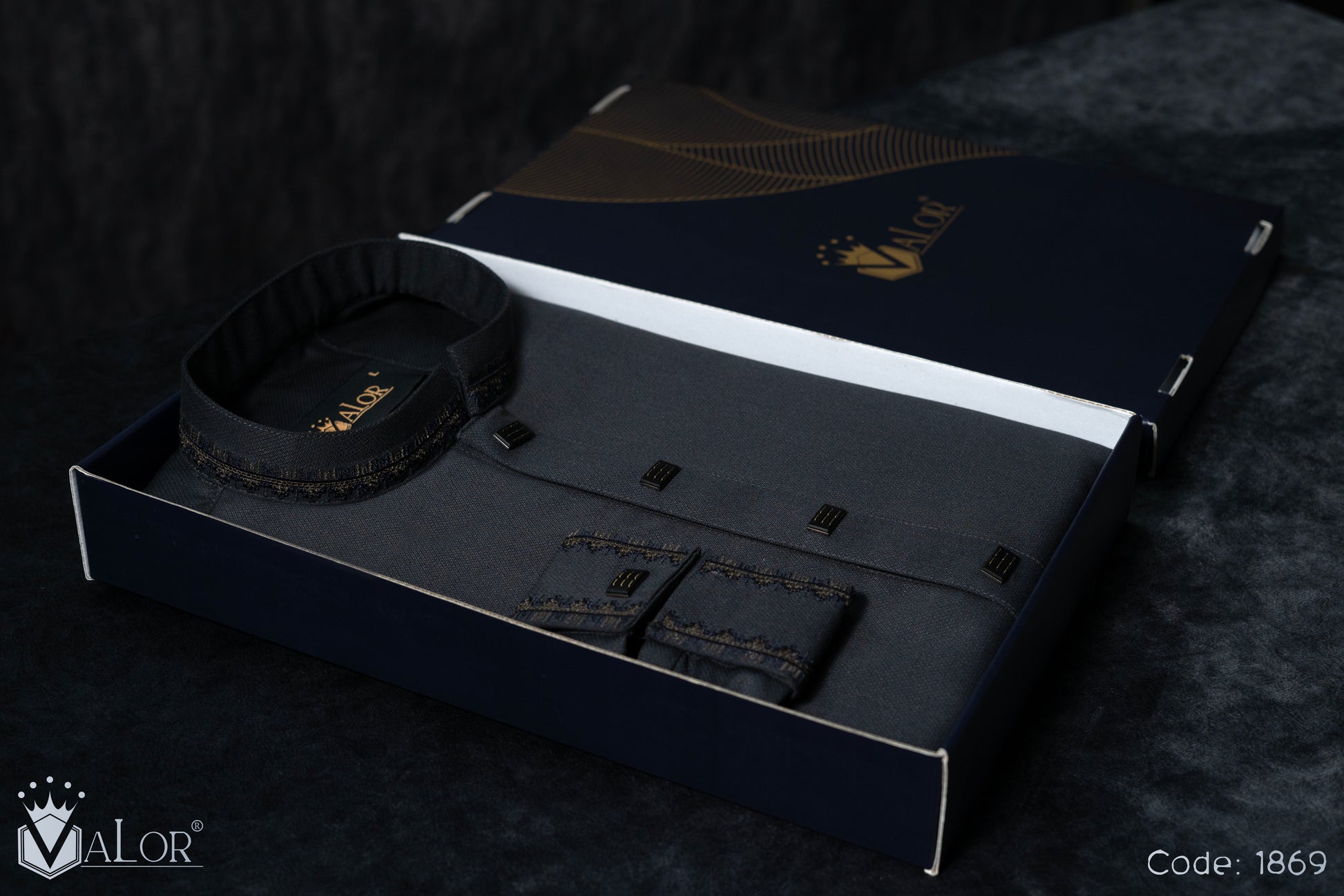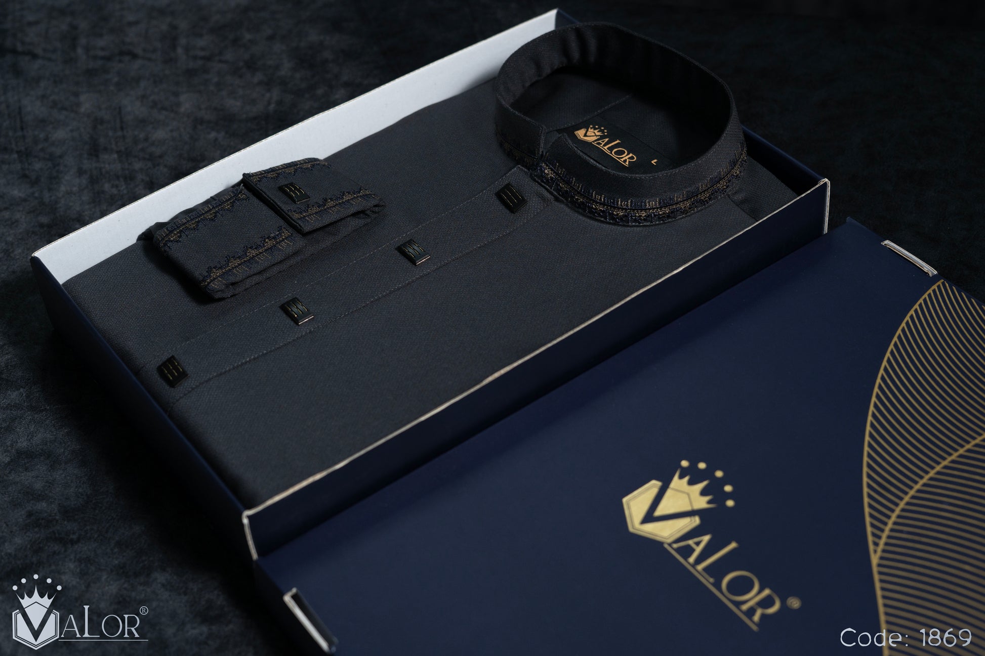 Store your VALOR Panjabi in a cool, dry place, away from direct sunlight, to prevent fabric discoloration. Cover it with a breathable garment bag to protect it from dust.