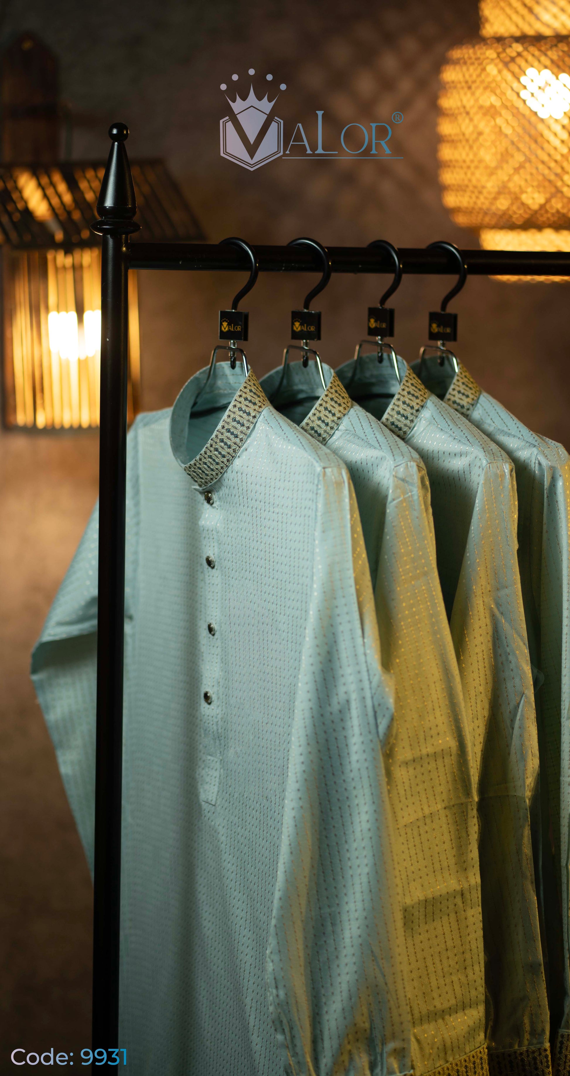 Storage: Store your VALOR Panjabi in a cool, dry place, away from direct sunlight, to prevent fabric discoloration. Cover it with a breathable garment bag to protect it from dust.
