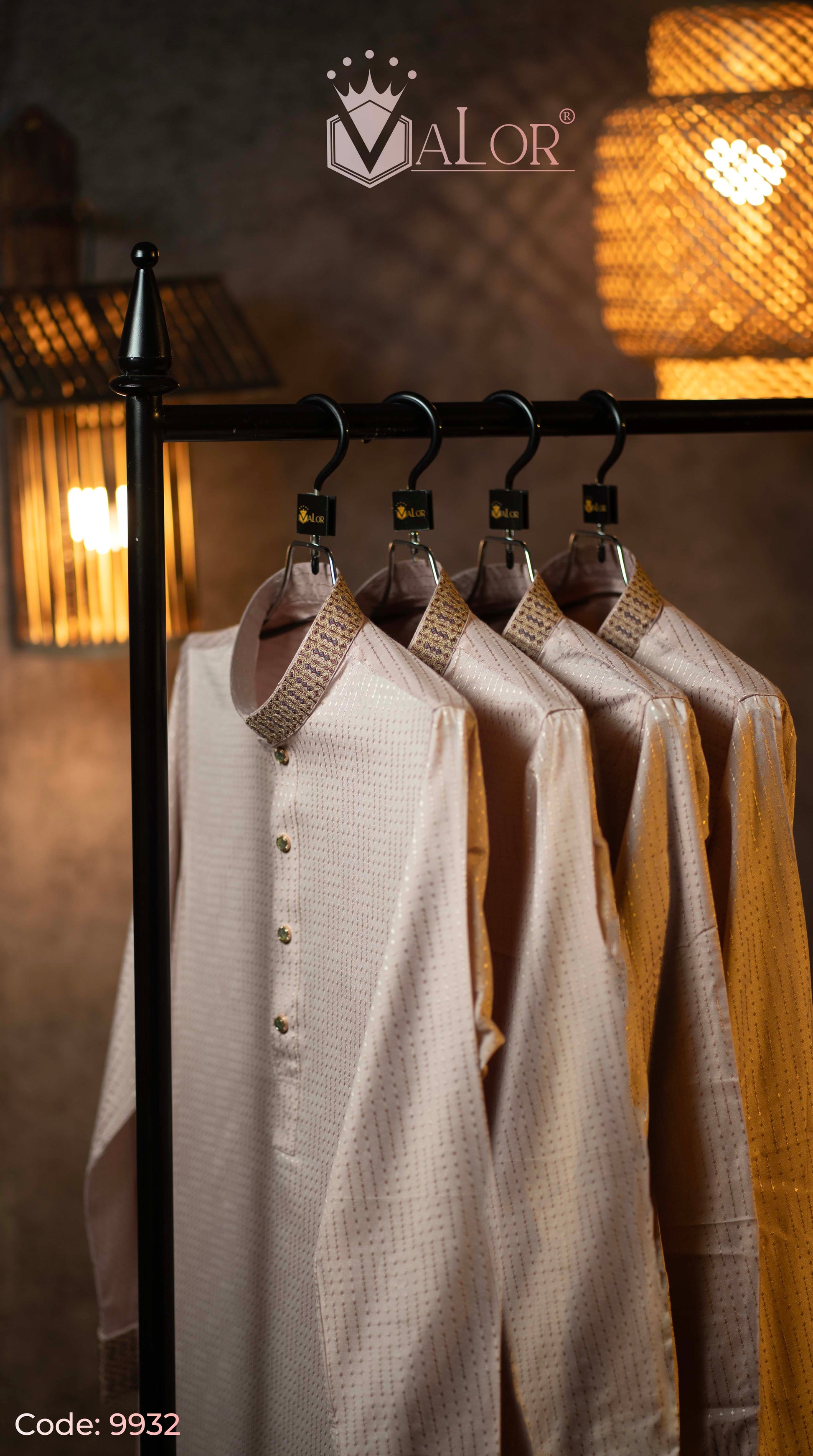 Storage: Store your VALOR Panjabi in a cool, dry place, away from direct sunlight, to prevent fabric discoloration. Cover it with a breathable garment bag to protect it from dust.
