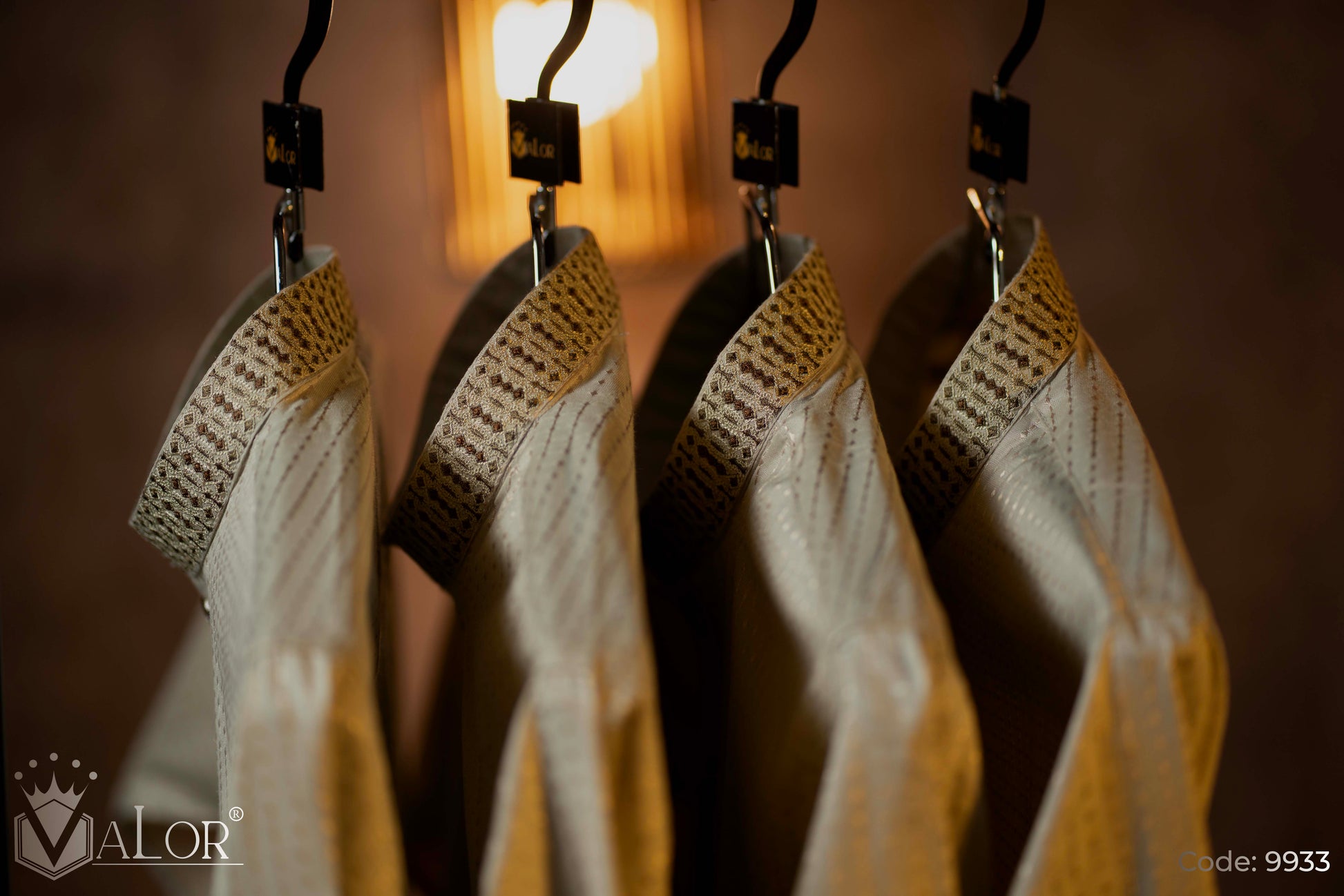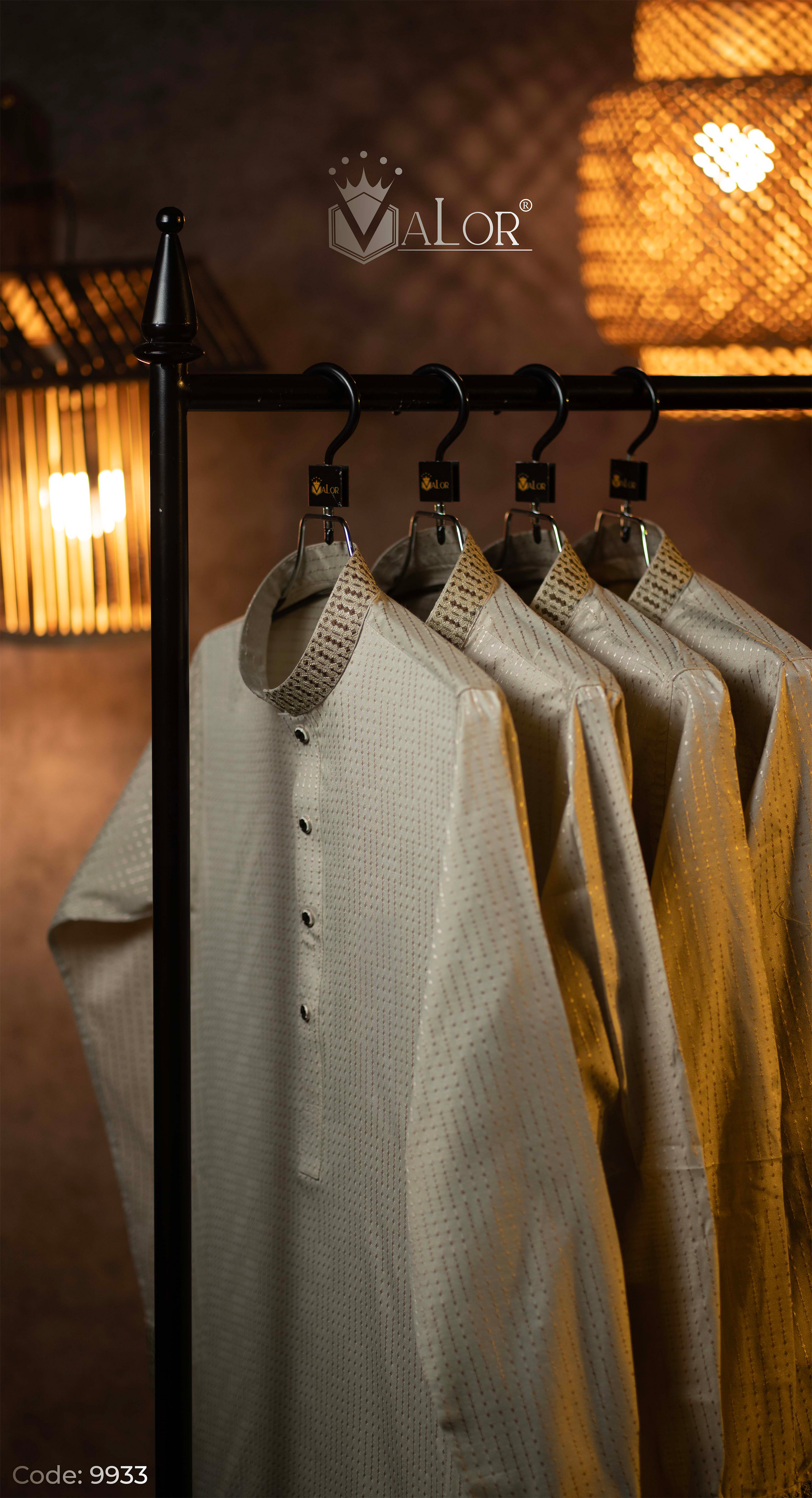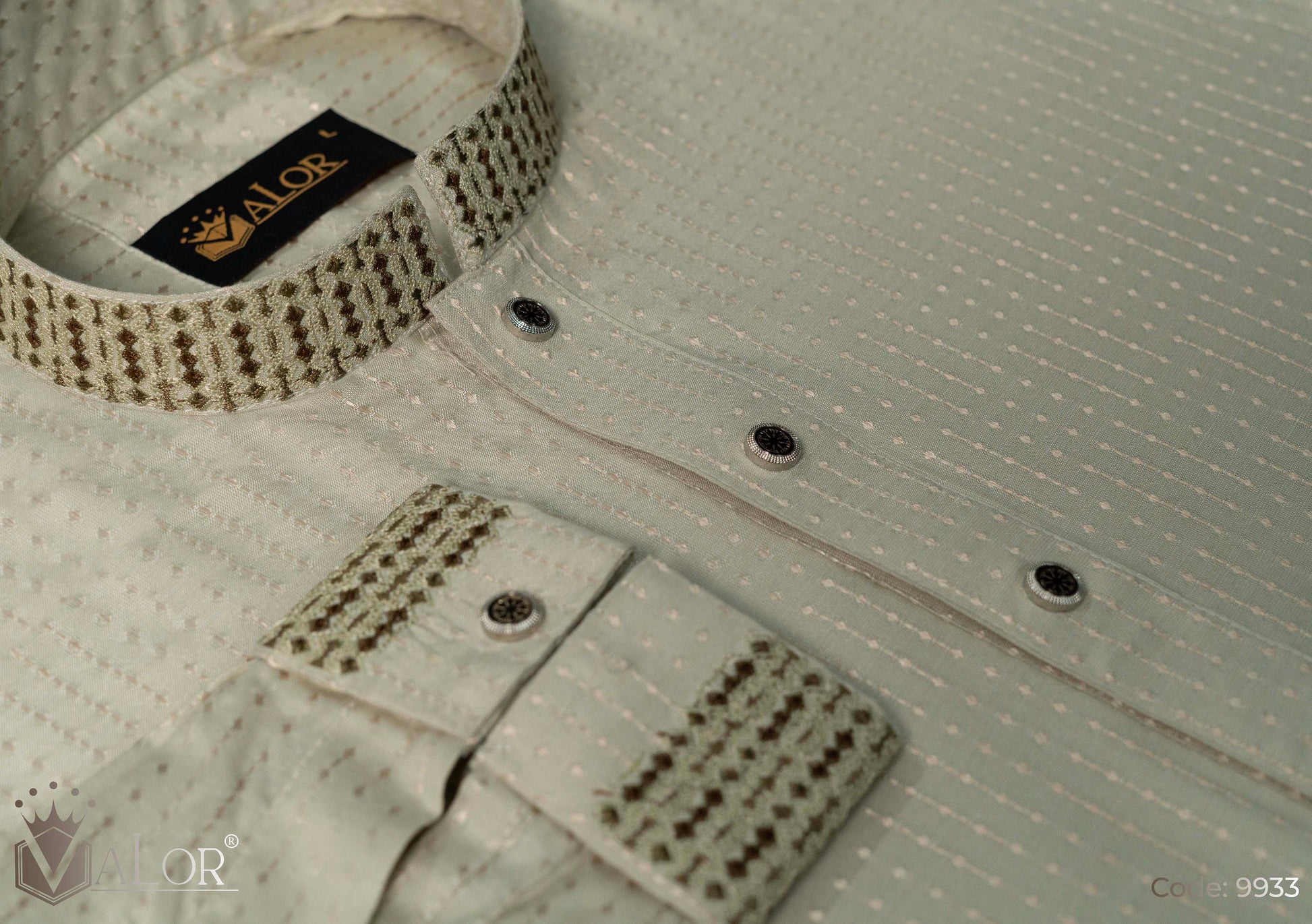 Store your VALOR Panjabi in a cool, dry place, away from direct sunlight, to prevent fabric discoloration. Cover it with a breathable garment bag to protect it from dust.