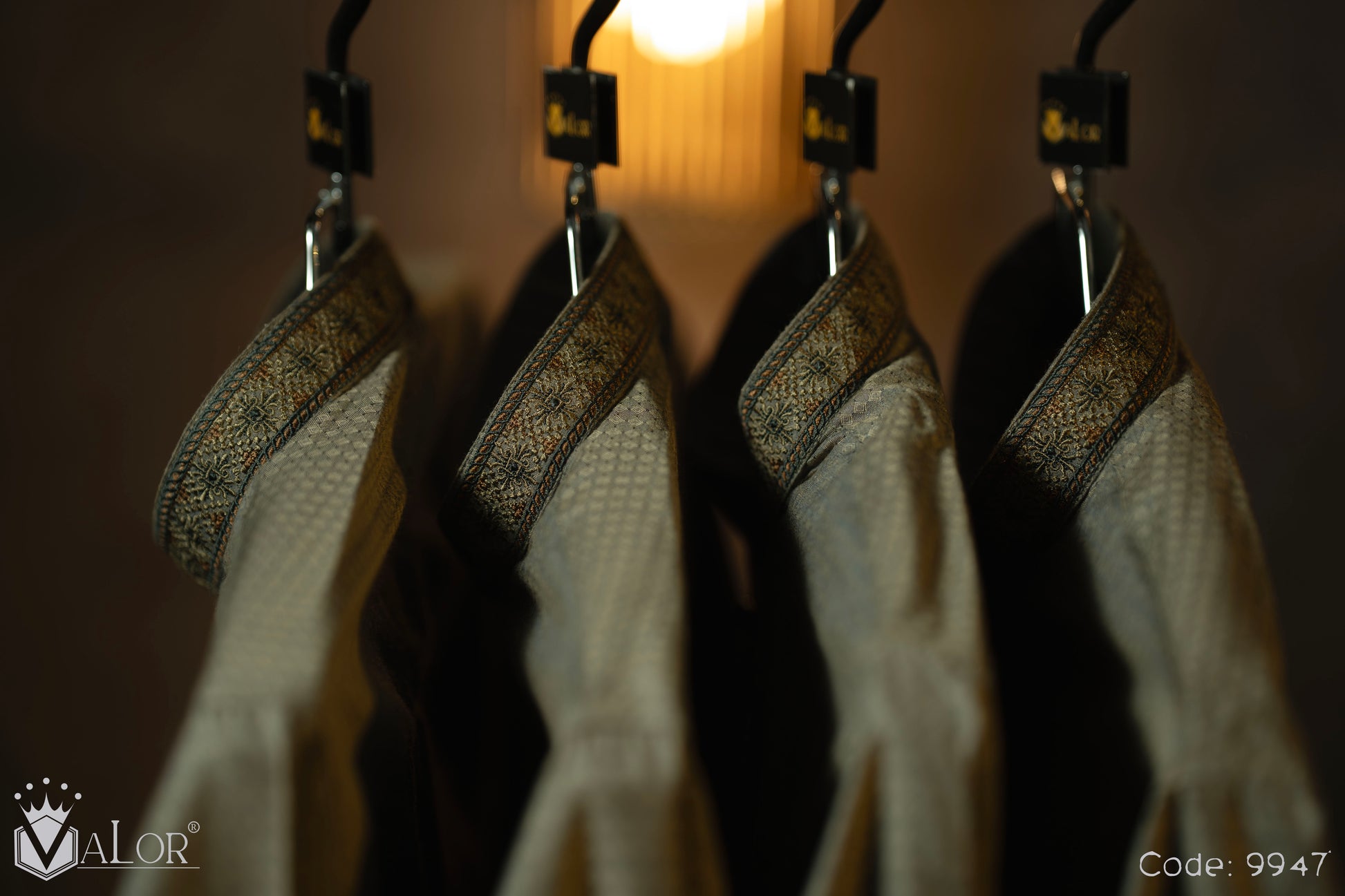 Store your VALOR Panjabi in a cool, dry place, away from direct sunlight, to prevent fabric discoloration. Cover it with a breathable garment bag to protect it from dust.