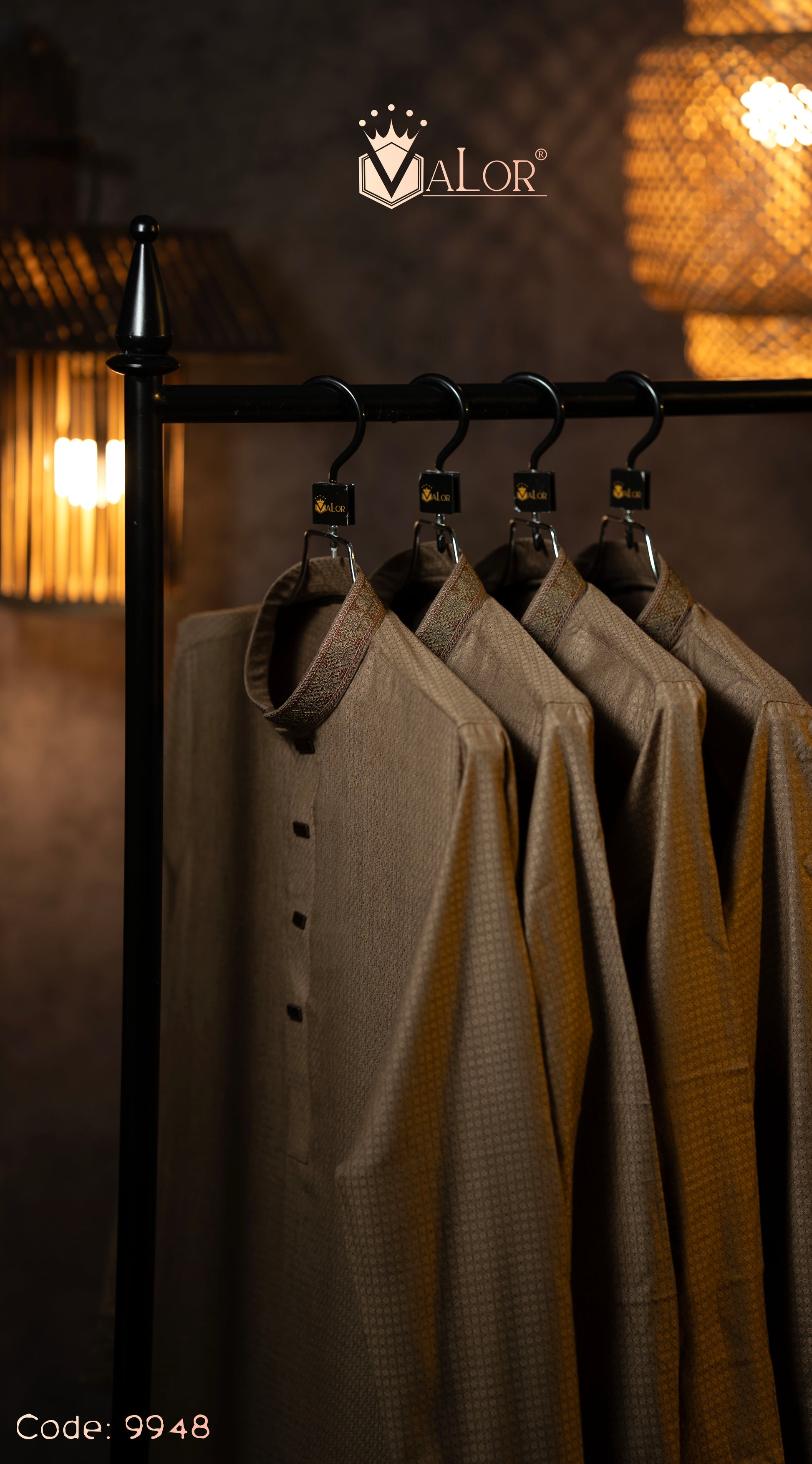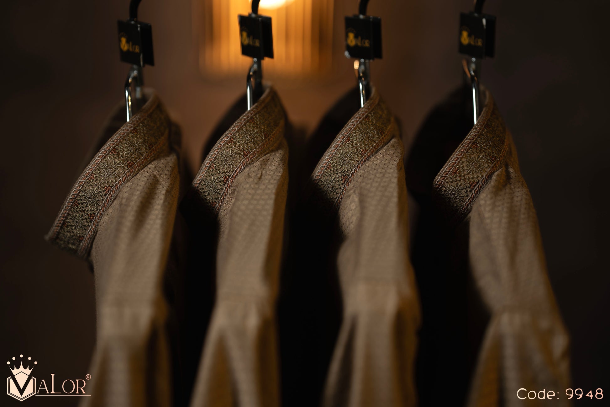 Store your VALOR Panjabi in a cool, dry place, away from direct sunlight, to prevent fabric discoloration. Cover it with a breathable garment bag to protect it from dust.