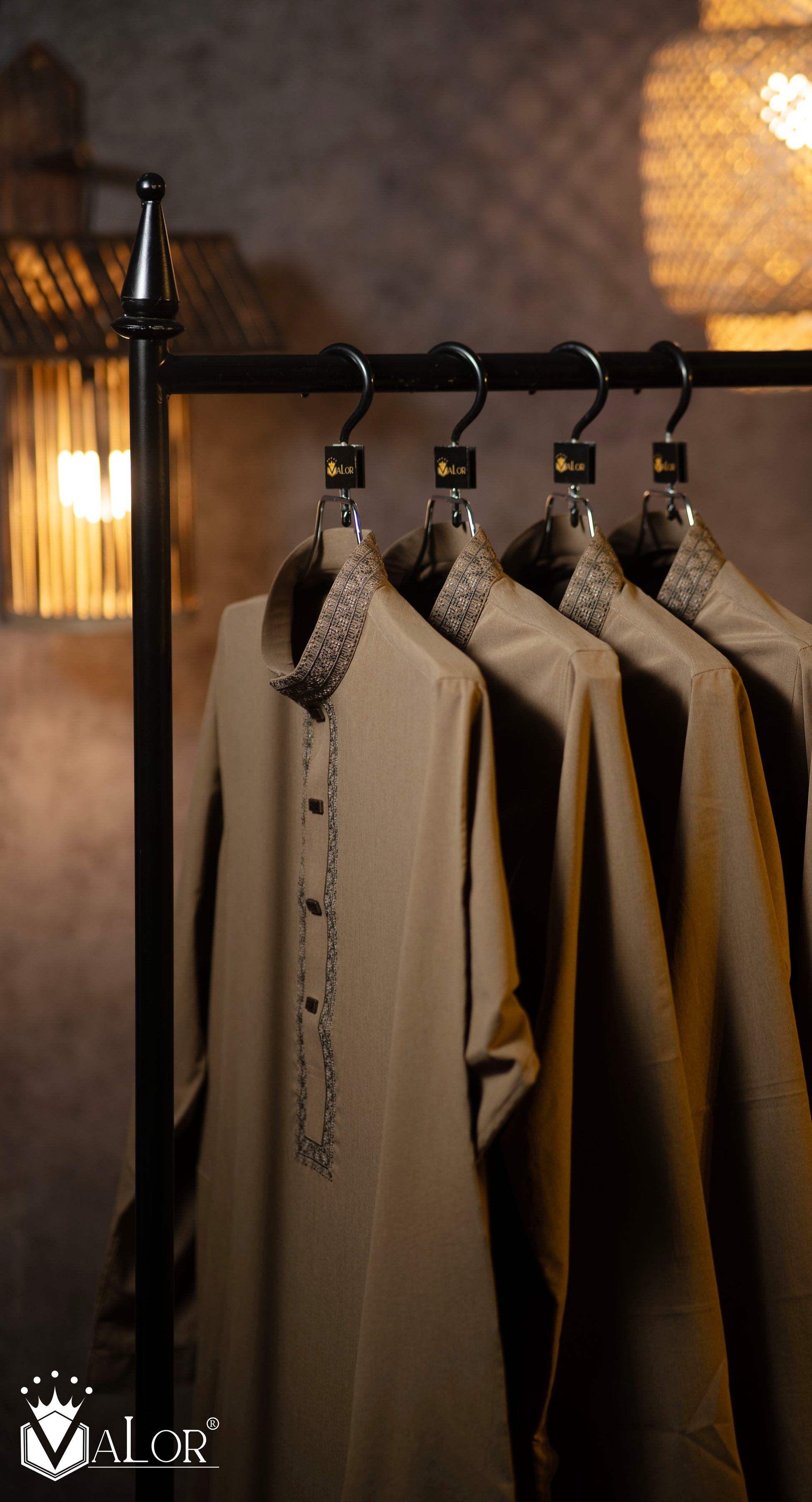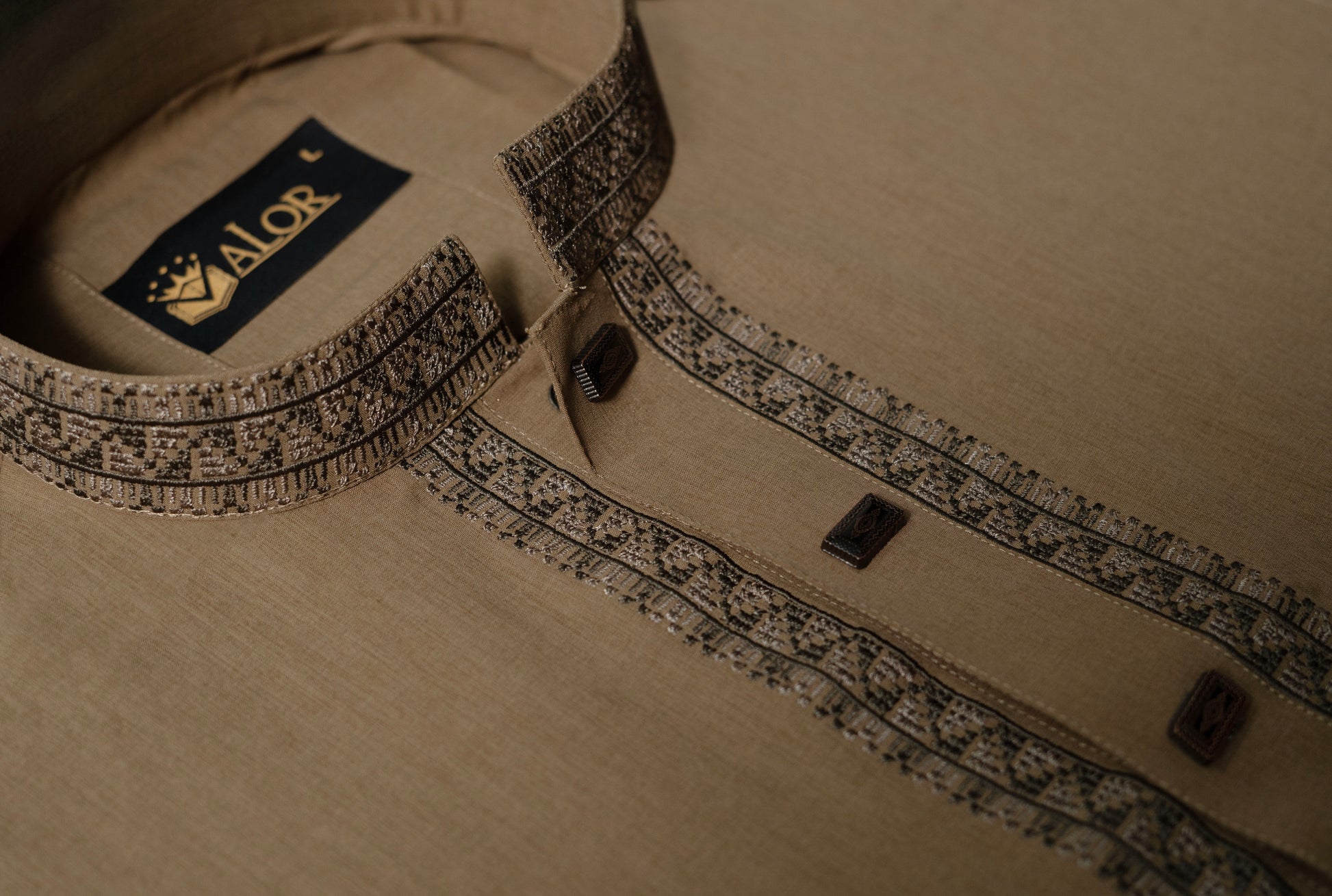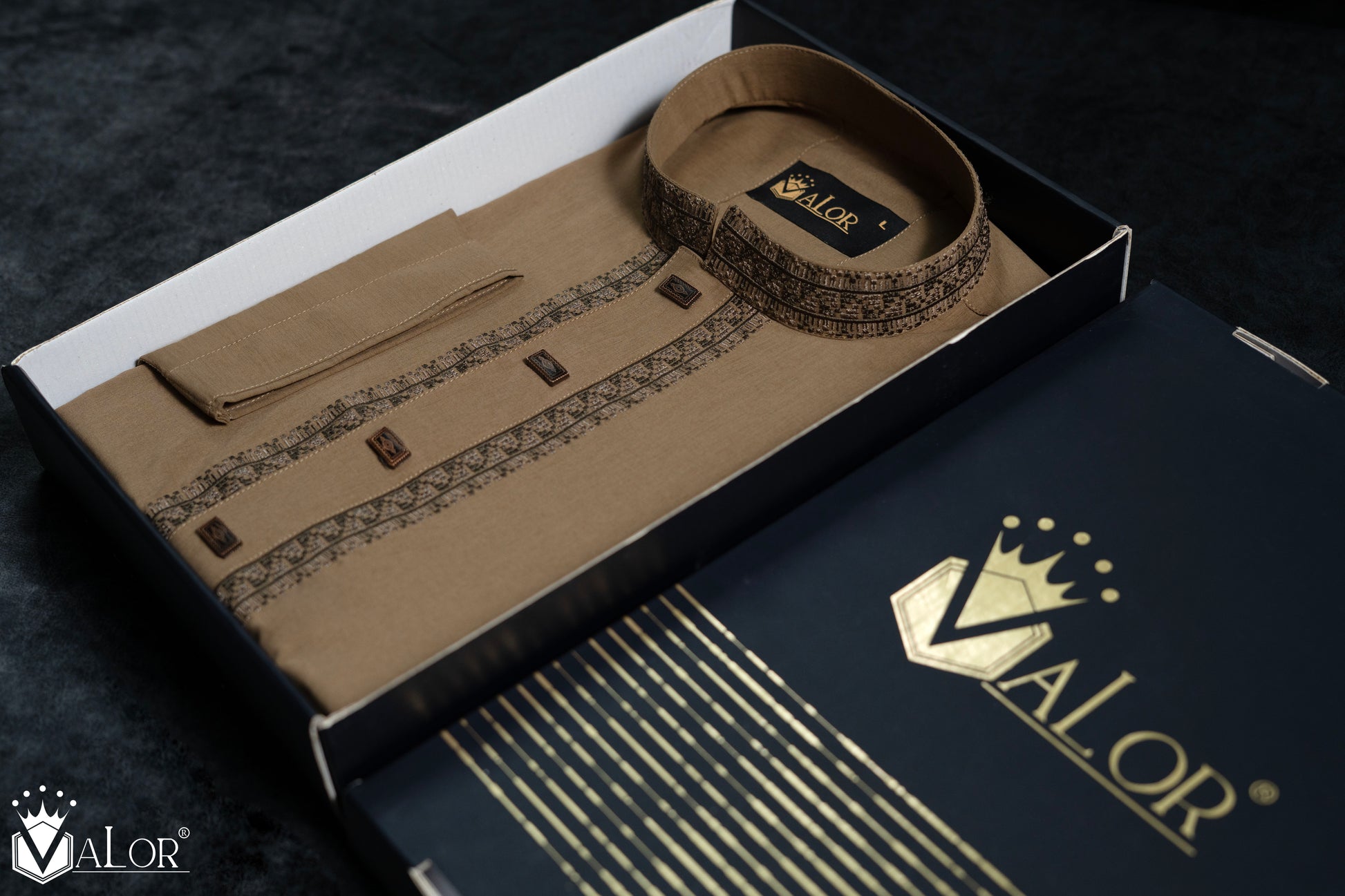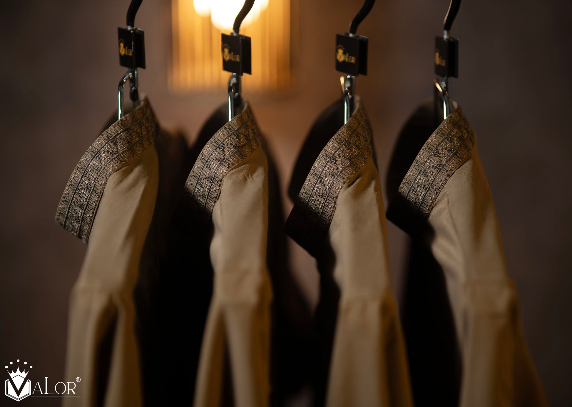Storage: Store your VALOR Panjabi in a cool, dry place, away from direct sunlight, to prevent fabric discoloration. Cover it with a breathable garment bag to protect it from dust.