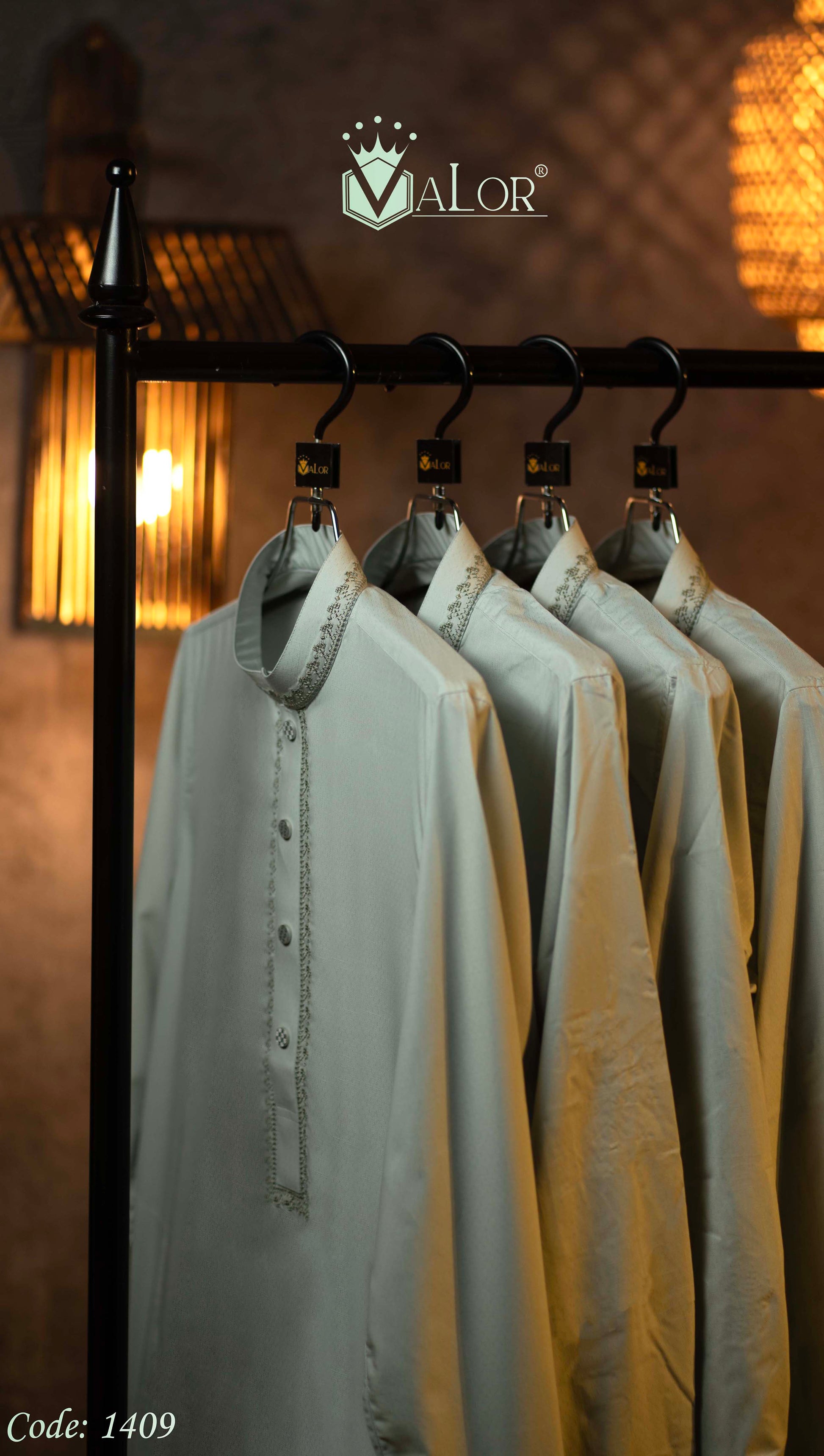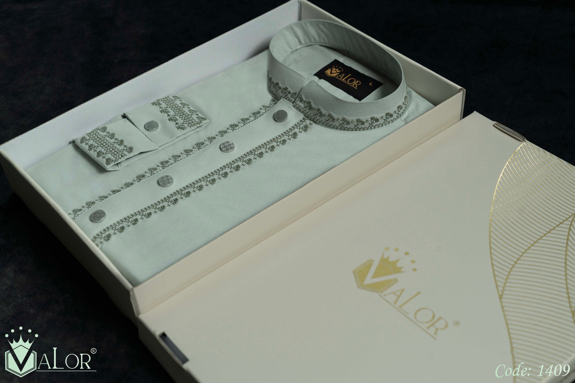 Store your VALOR Panjabi in a cool, dry place, away from direct sunlight, to prevent fabric discoloration. Cover it with a breathable garment bag to protect it from dust.