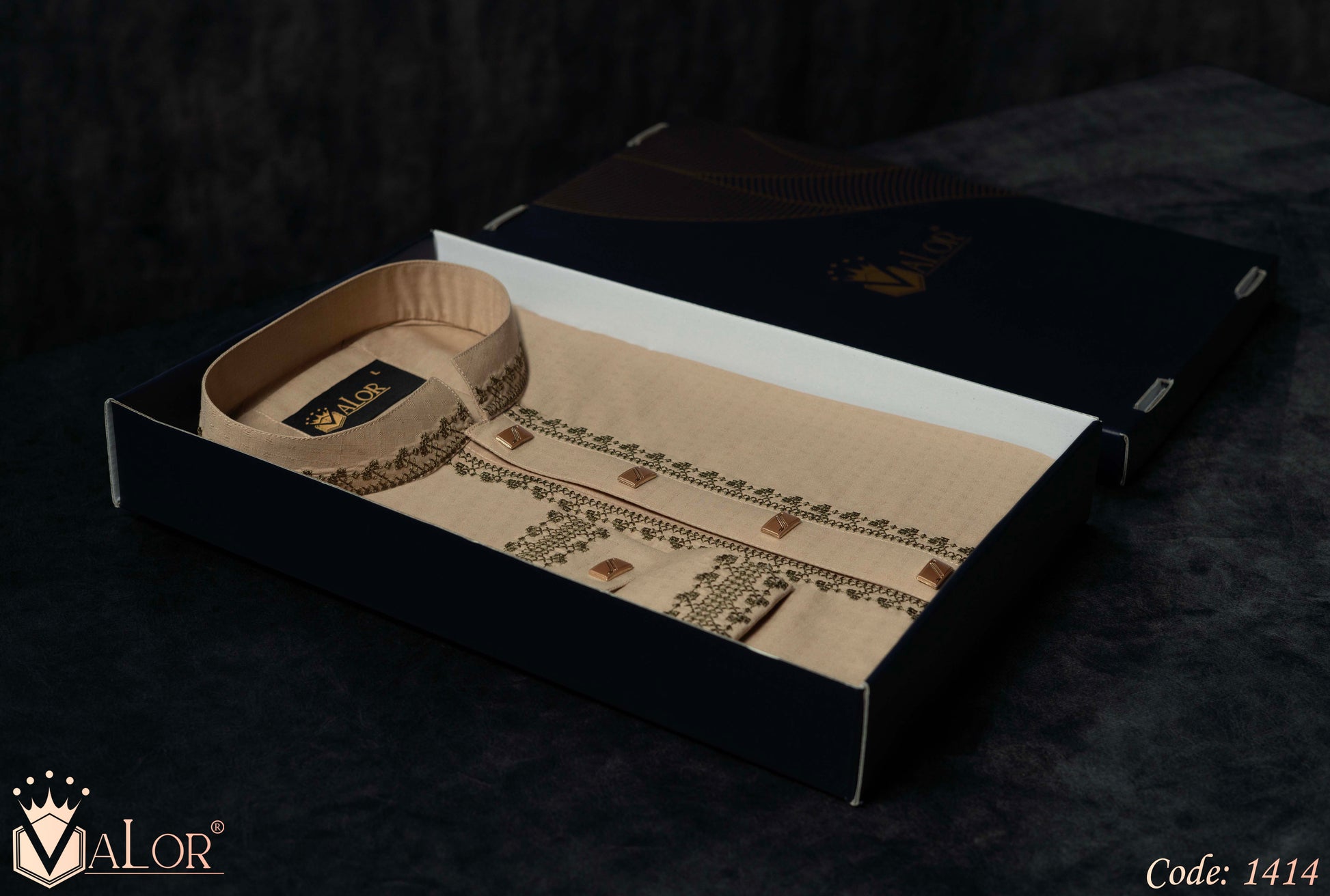 Store your VALOR Panjabi in a cool, dry place, away from direct sunlight, to prevent fabric discoloration. Cover it with a breathable garment bag to protect it from dust.