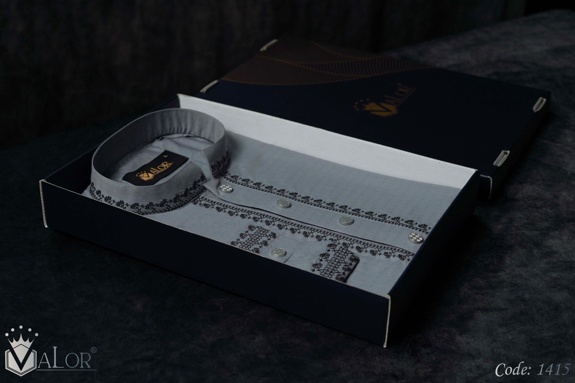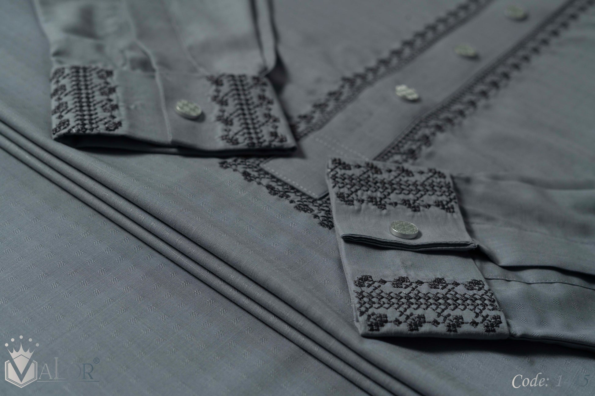 Store your VALOR Panjabi in a cool, dry place, away from direct sunlight, to prevent fabric discoloration. Cover it with a breathable garment bag to protect it from dust.