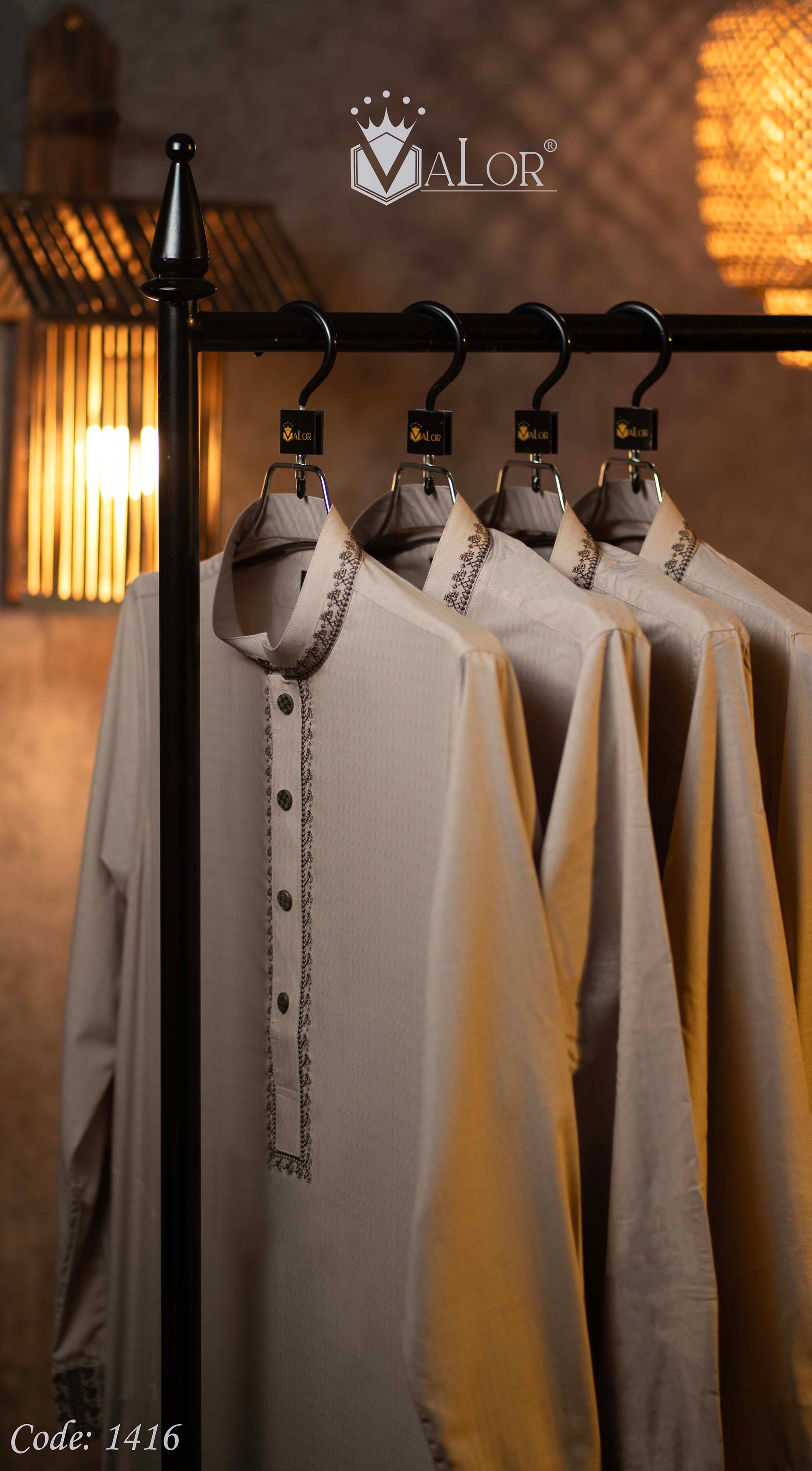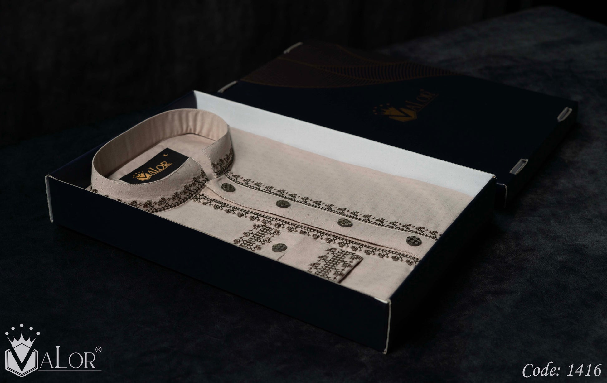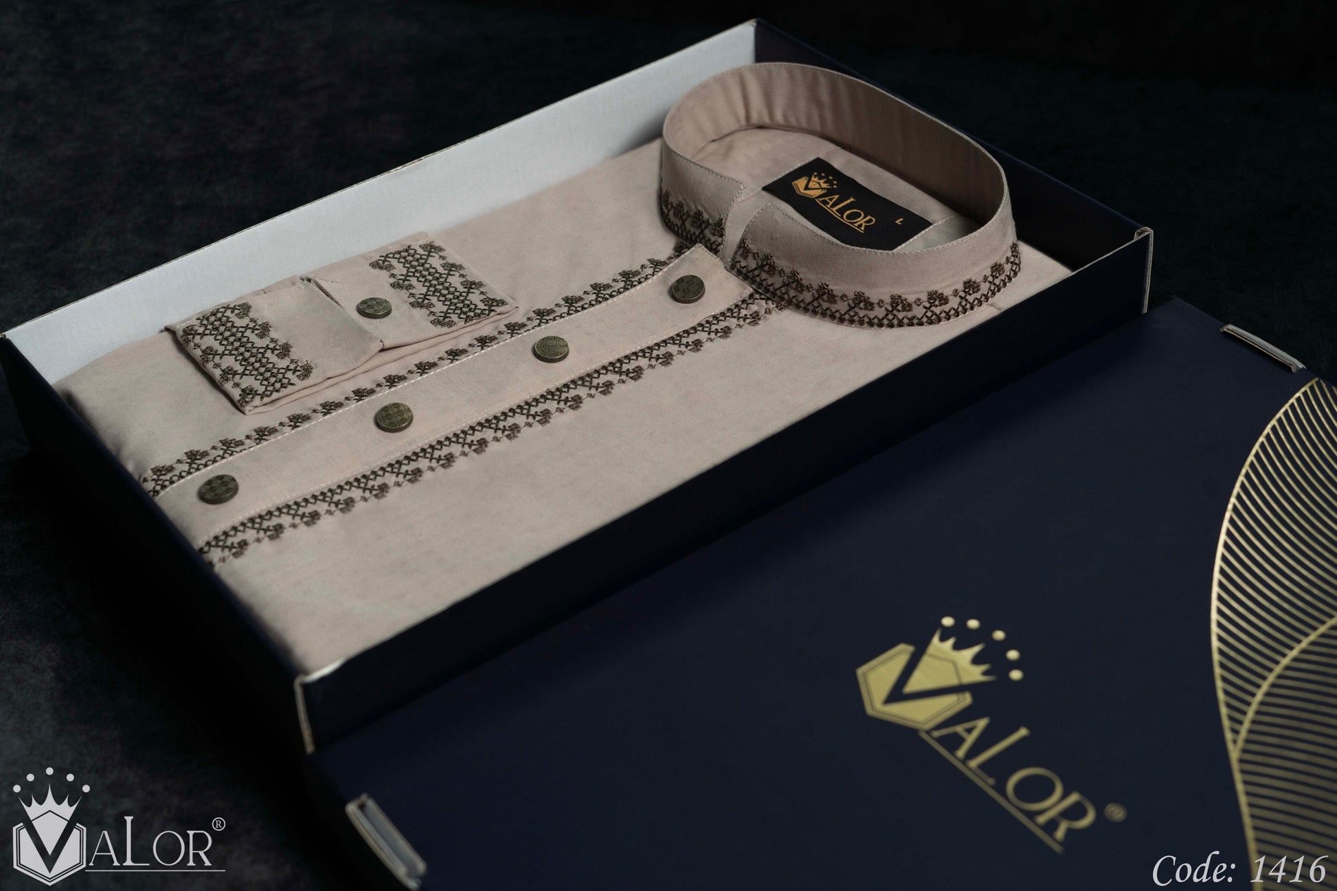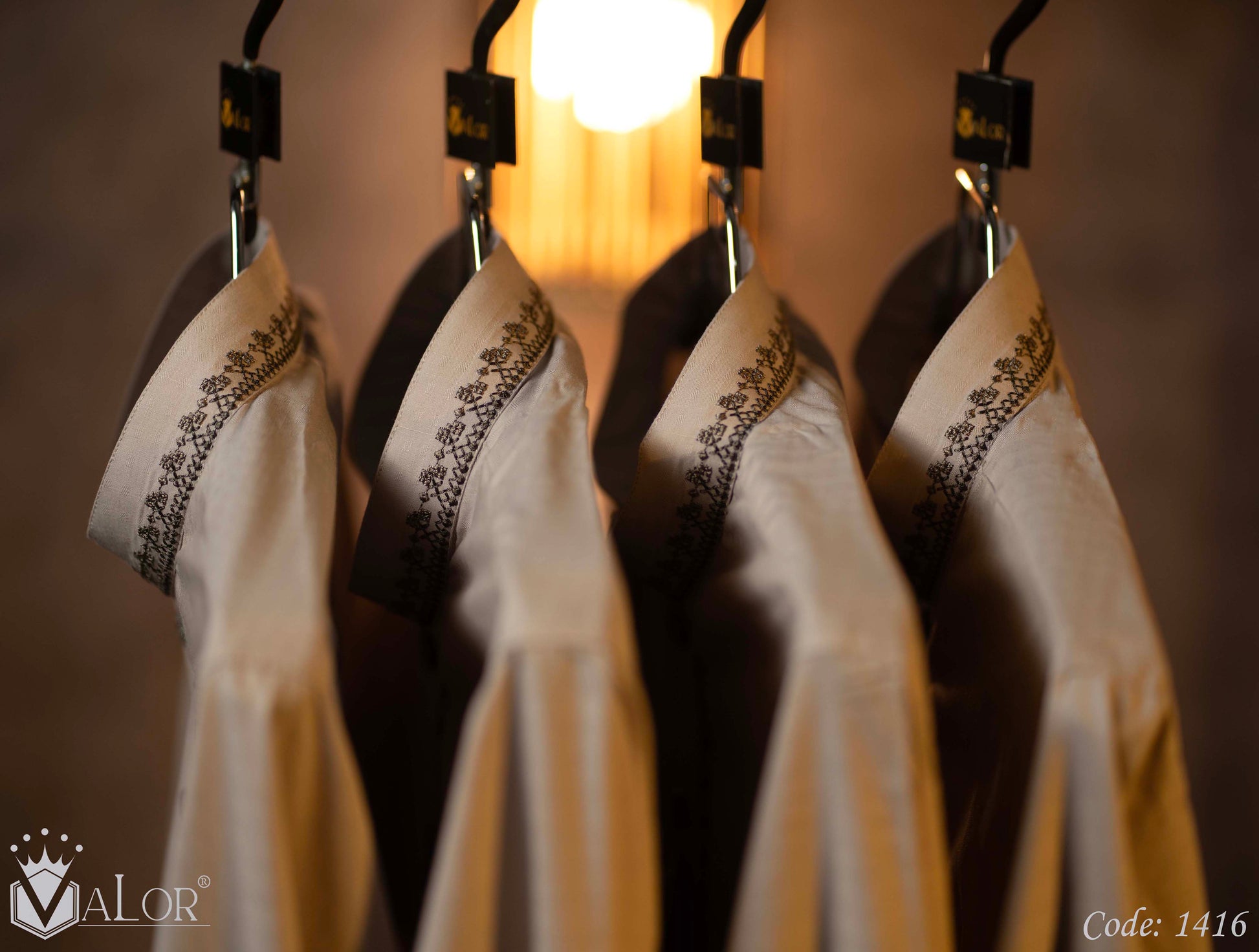 Store your VALOR Panjabi in a cool, dry place, away from direct sunlight, to prevent fabric discoloration. Cover it with a breathable garment bag to protect it from dust.