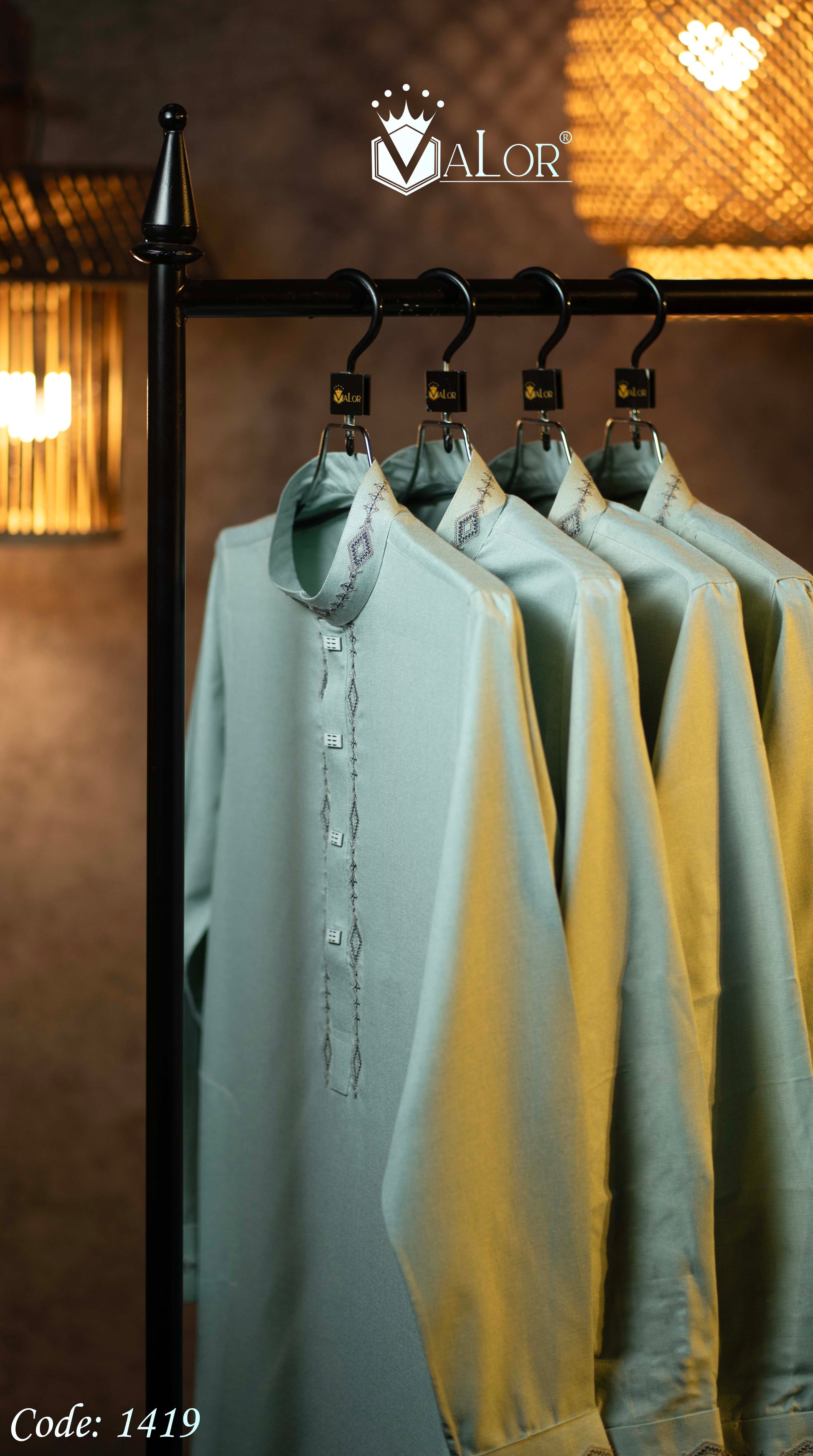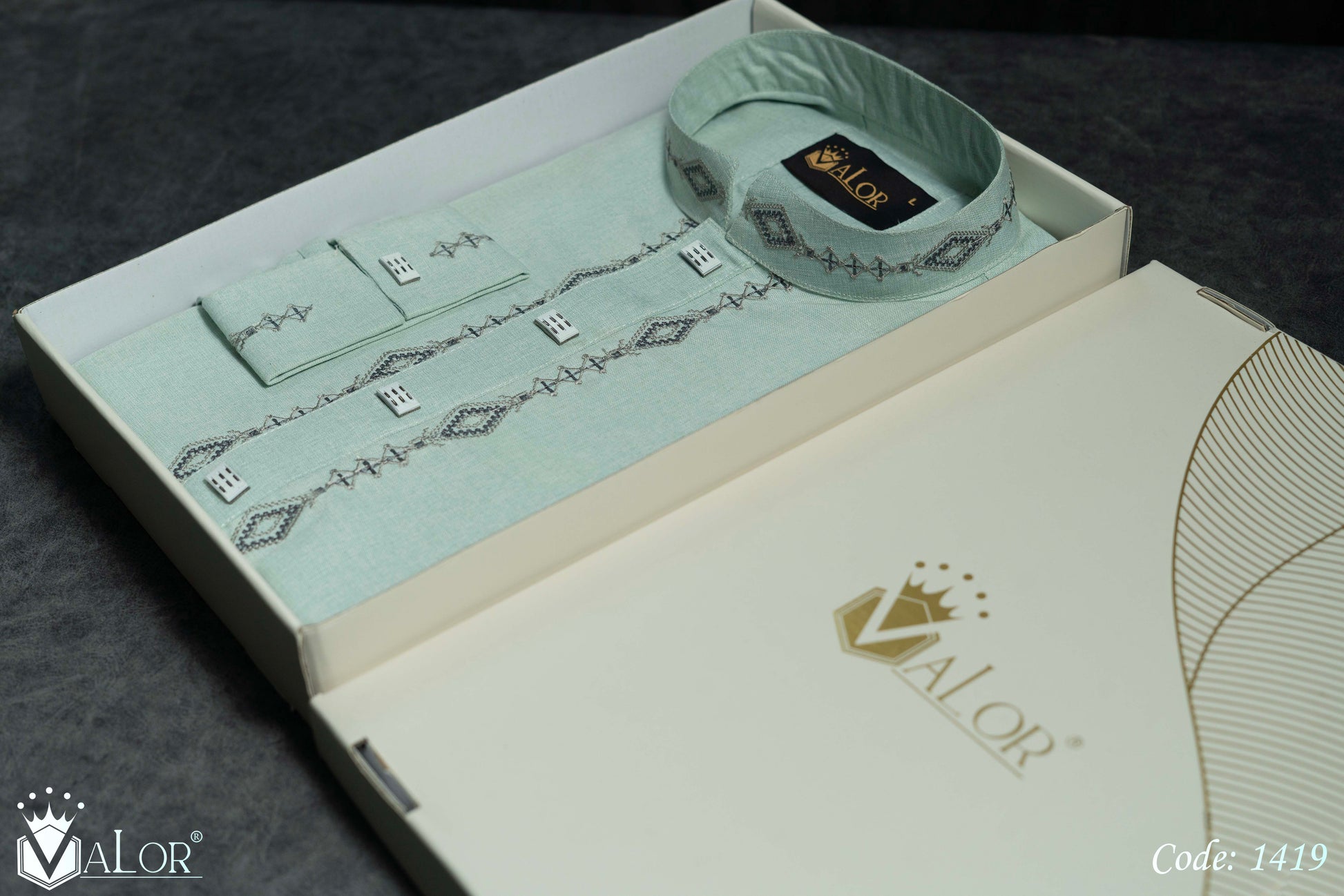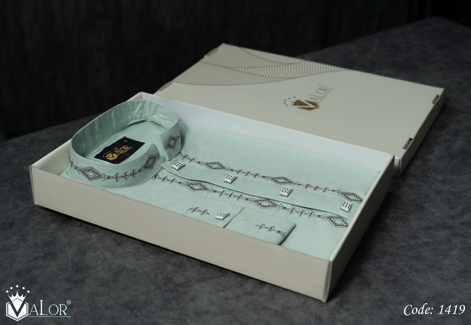 Store your VALOR Panjabi in a cool, dry place, away from direct sunlight, to prevent fabric discoloration. Cover it with a breathable garment bag to protect it from dust.