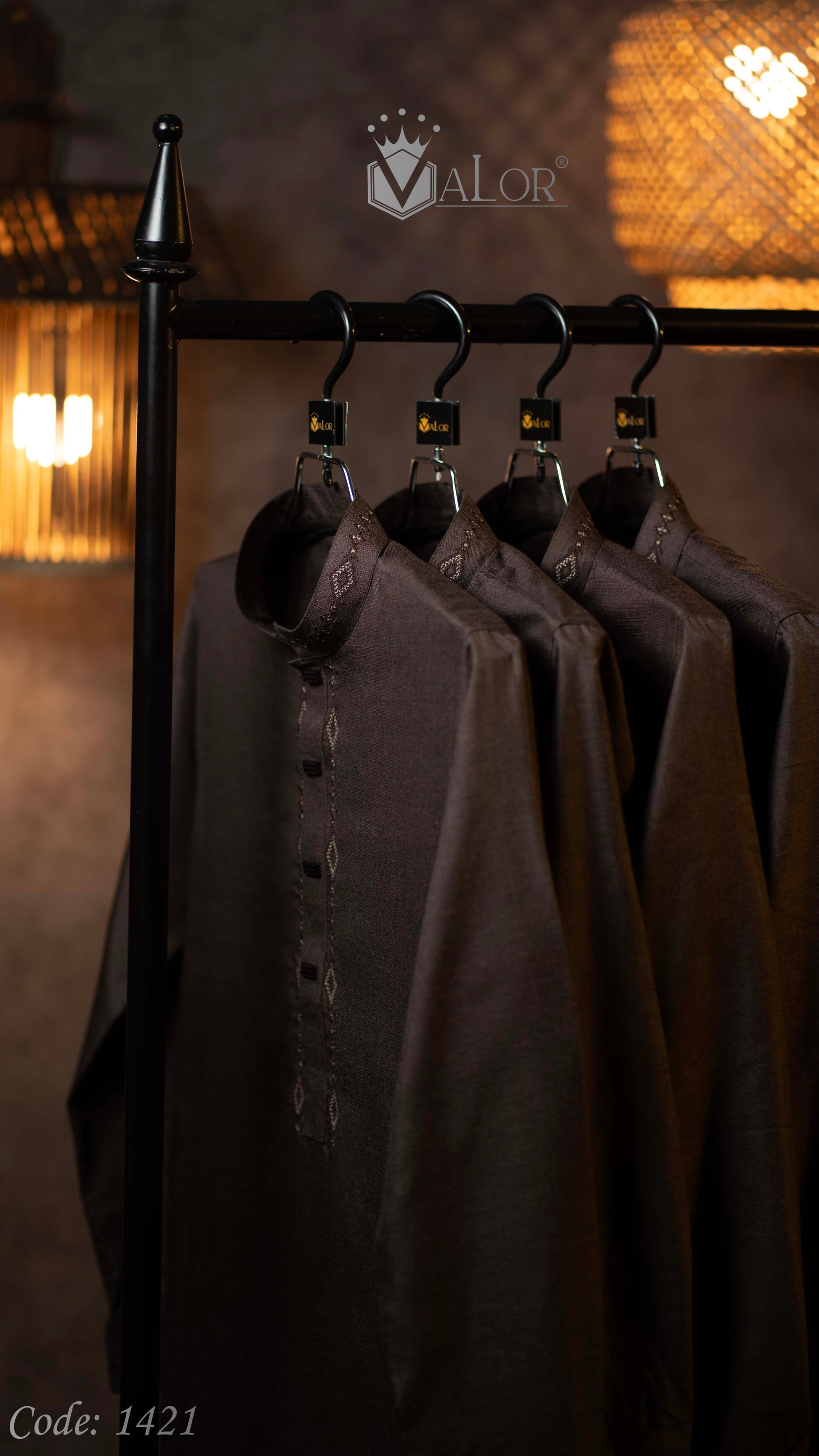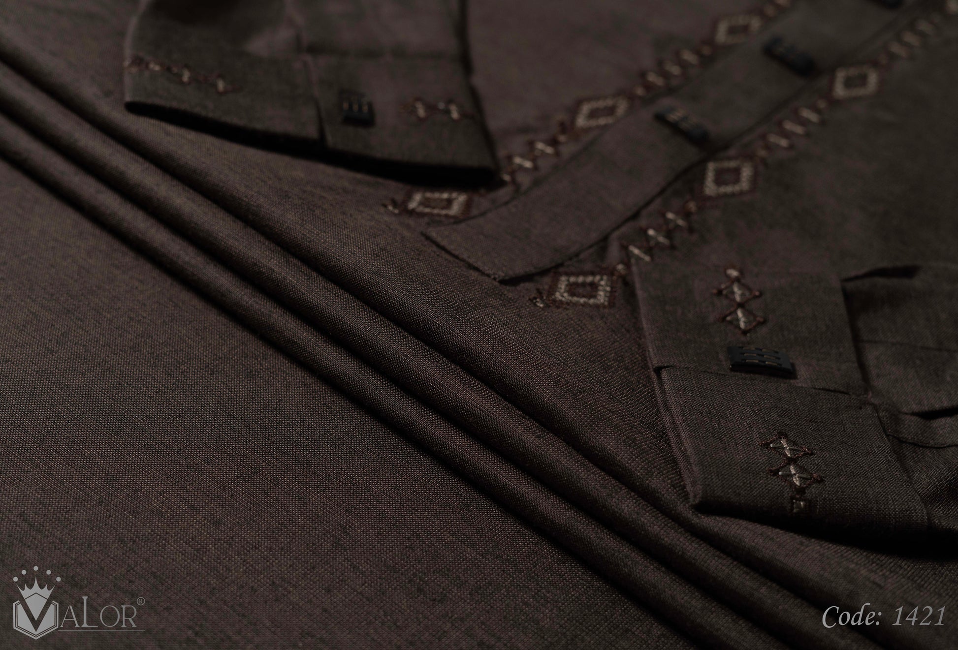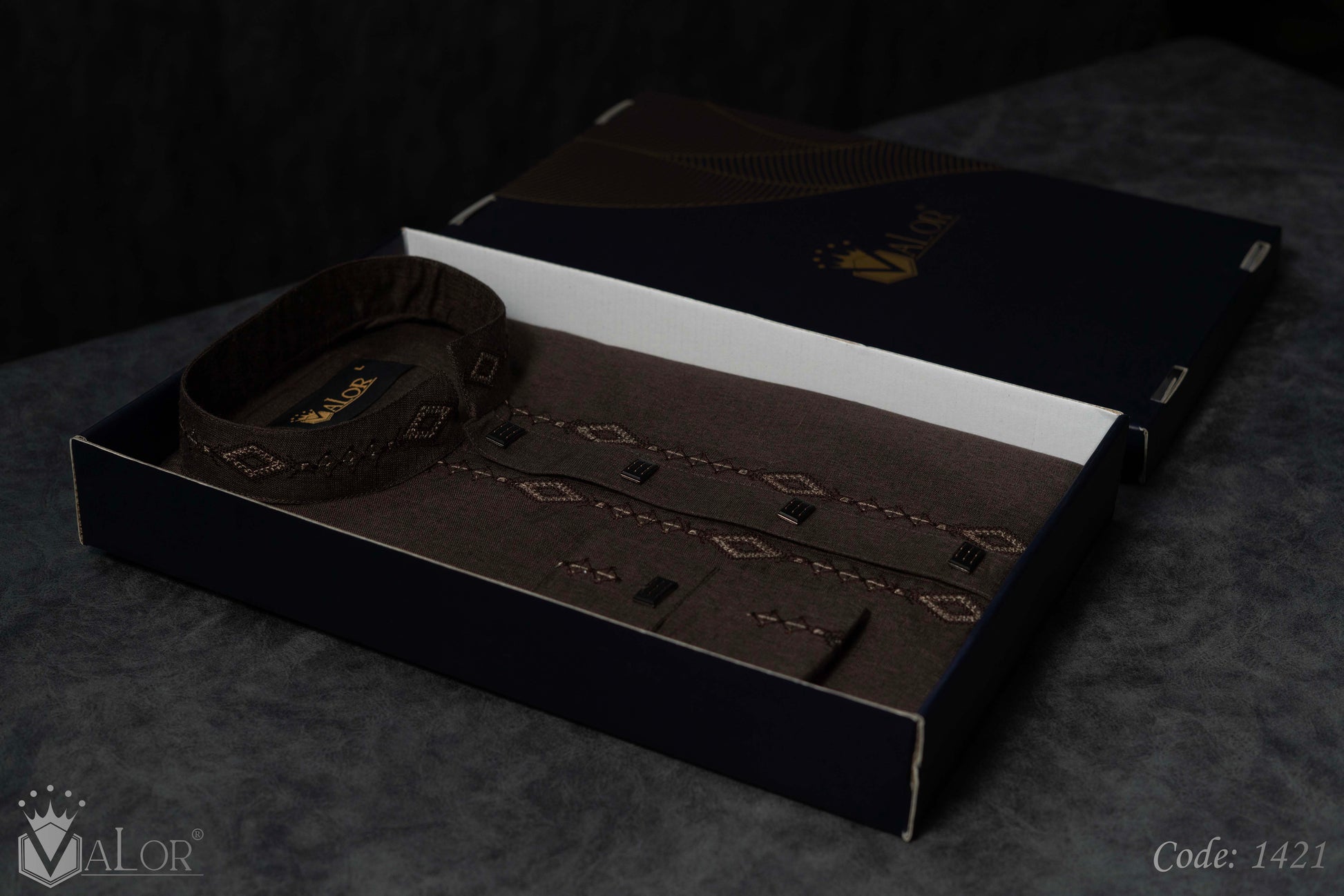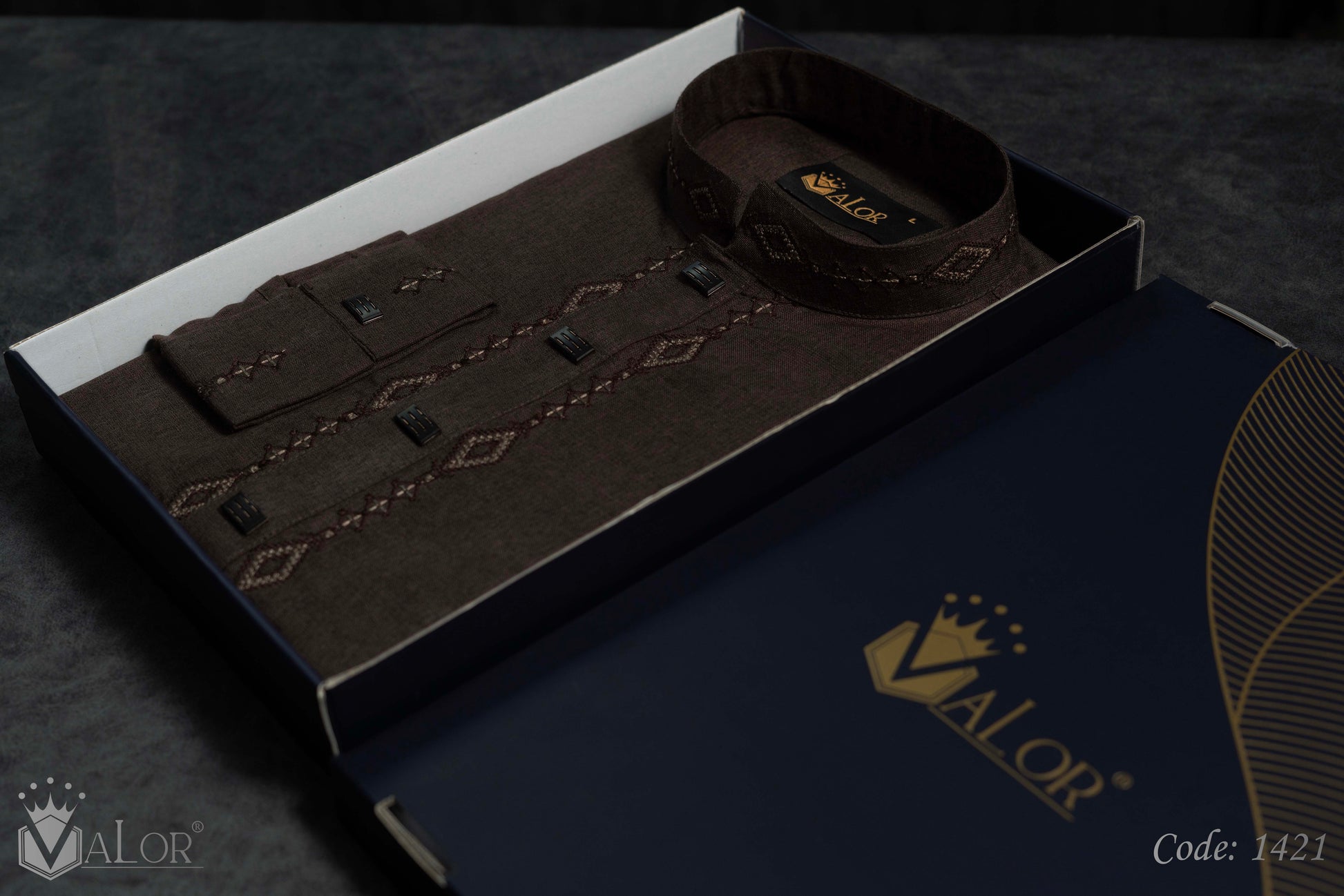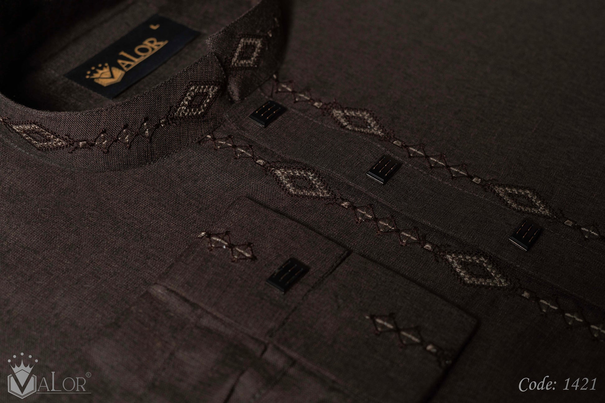 Store your VALOR Panjabi in a cool, dry place, away from direct sunlight, to prevent fabric discoloration. Cover it with a breathable garment bag to protect it from dust.