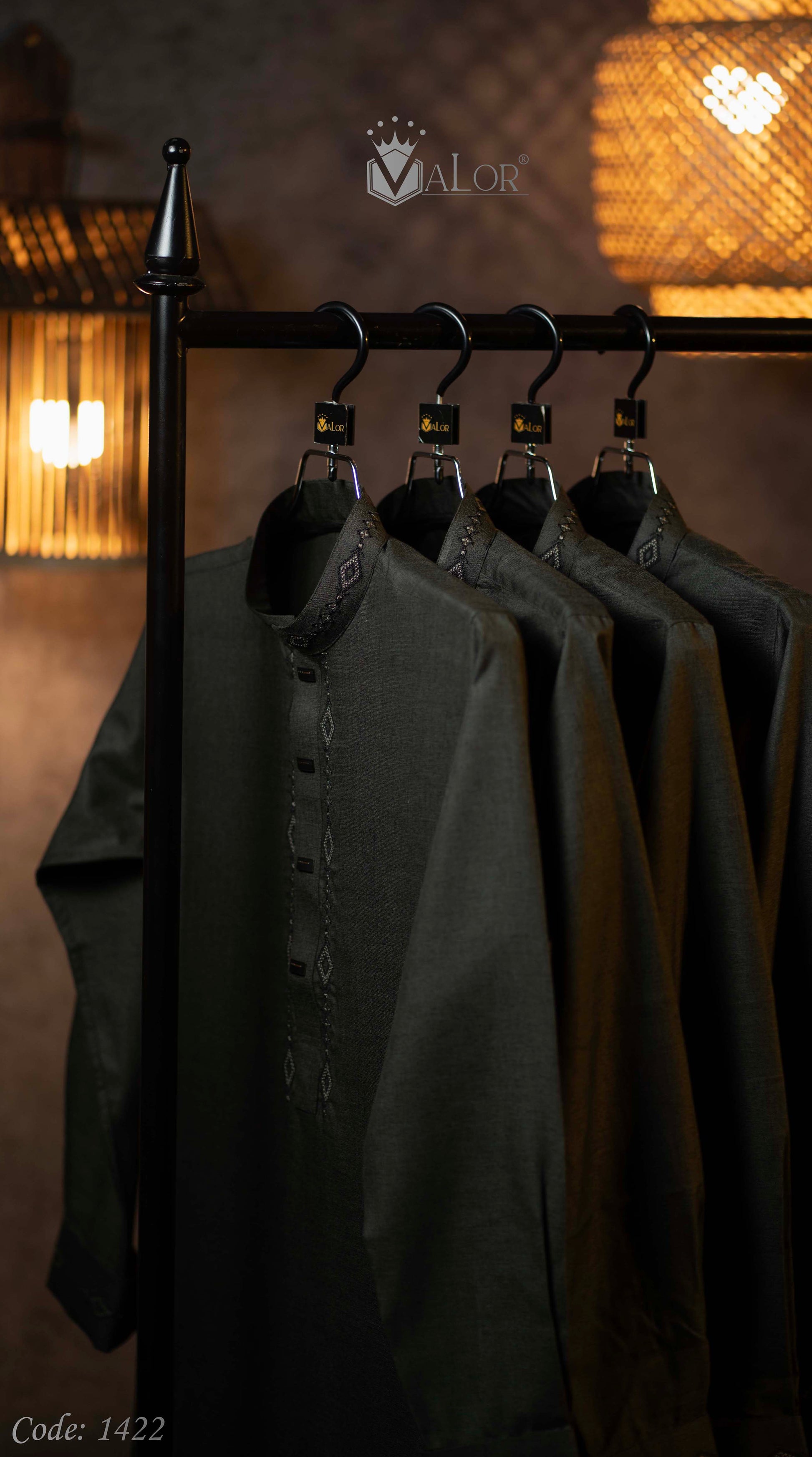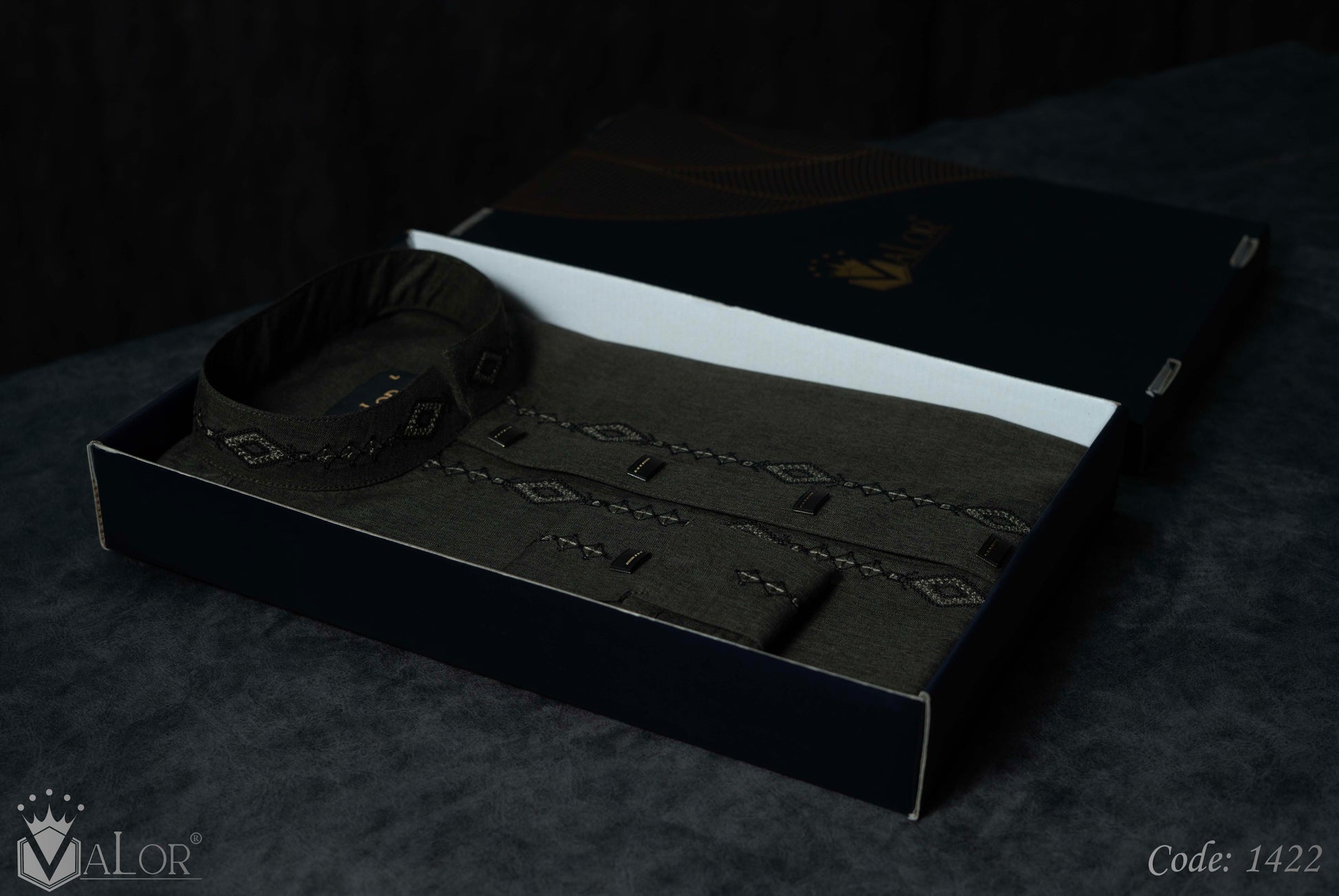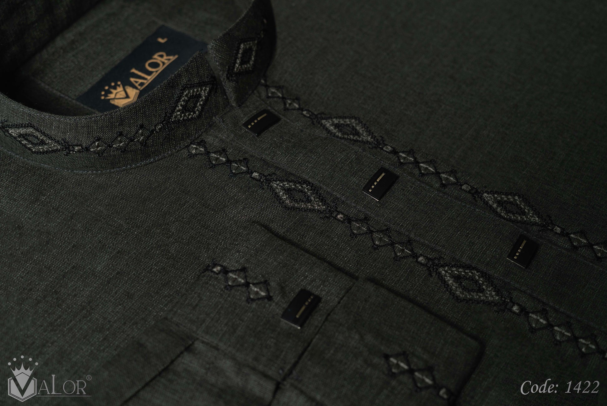 Store your VALOR Panjabi in a cool, dry place, away from direct sunlight, to prevent fabric discoloration. Cover it with a breathable garment bag to protect it from dust.