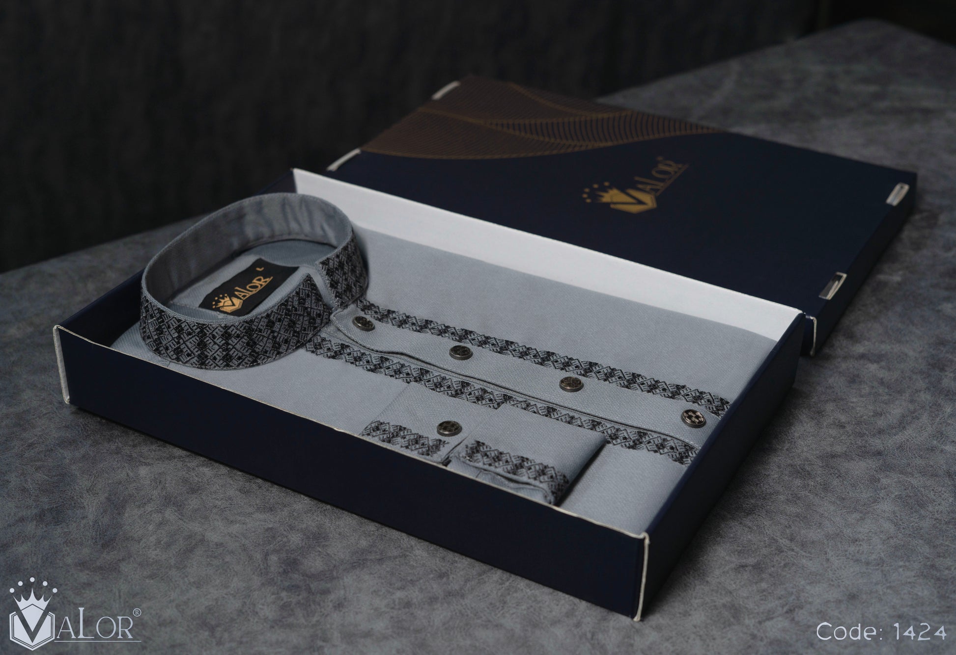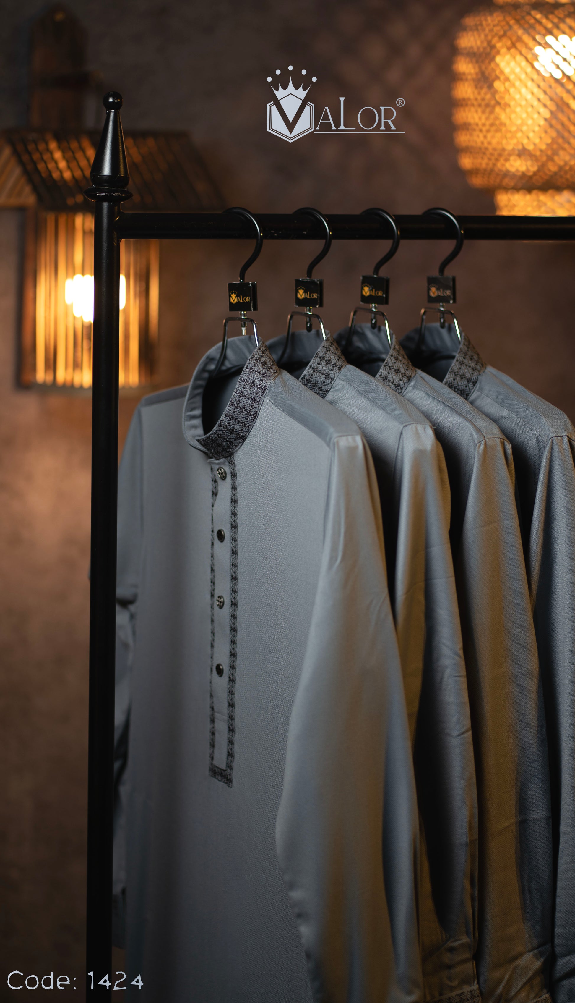Store your VALOR Panjabi in a cool, dry place, away from direct sunlight, to prevent fabric discoloration. Cover it with a breathable garment bag to protect it from dust.