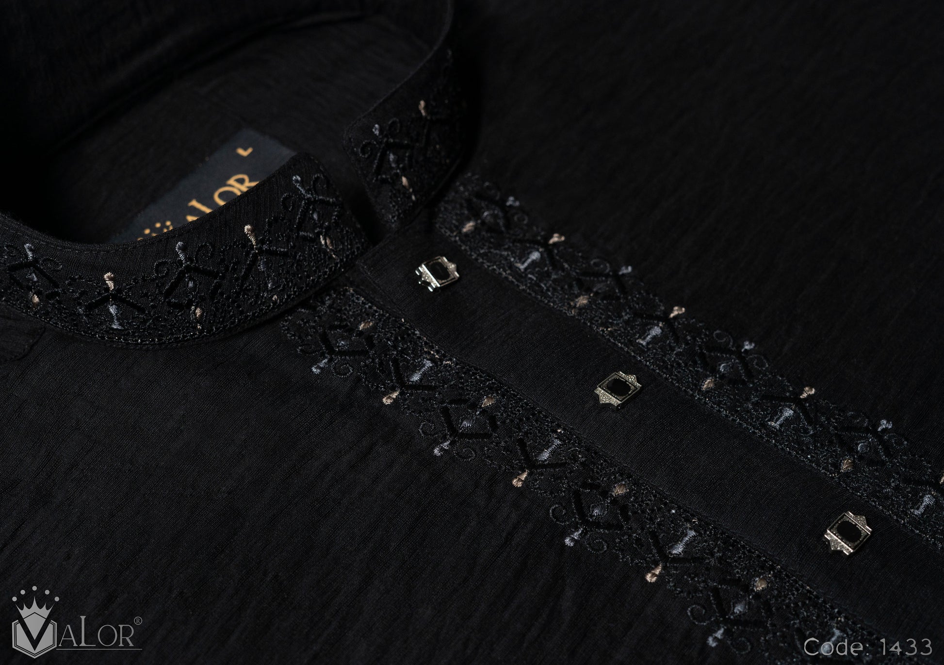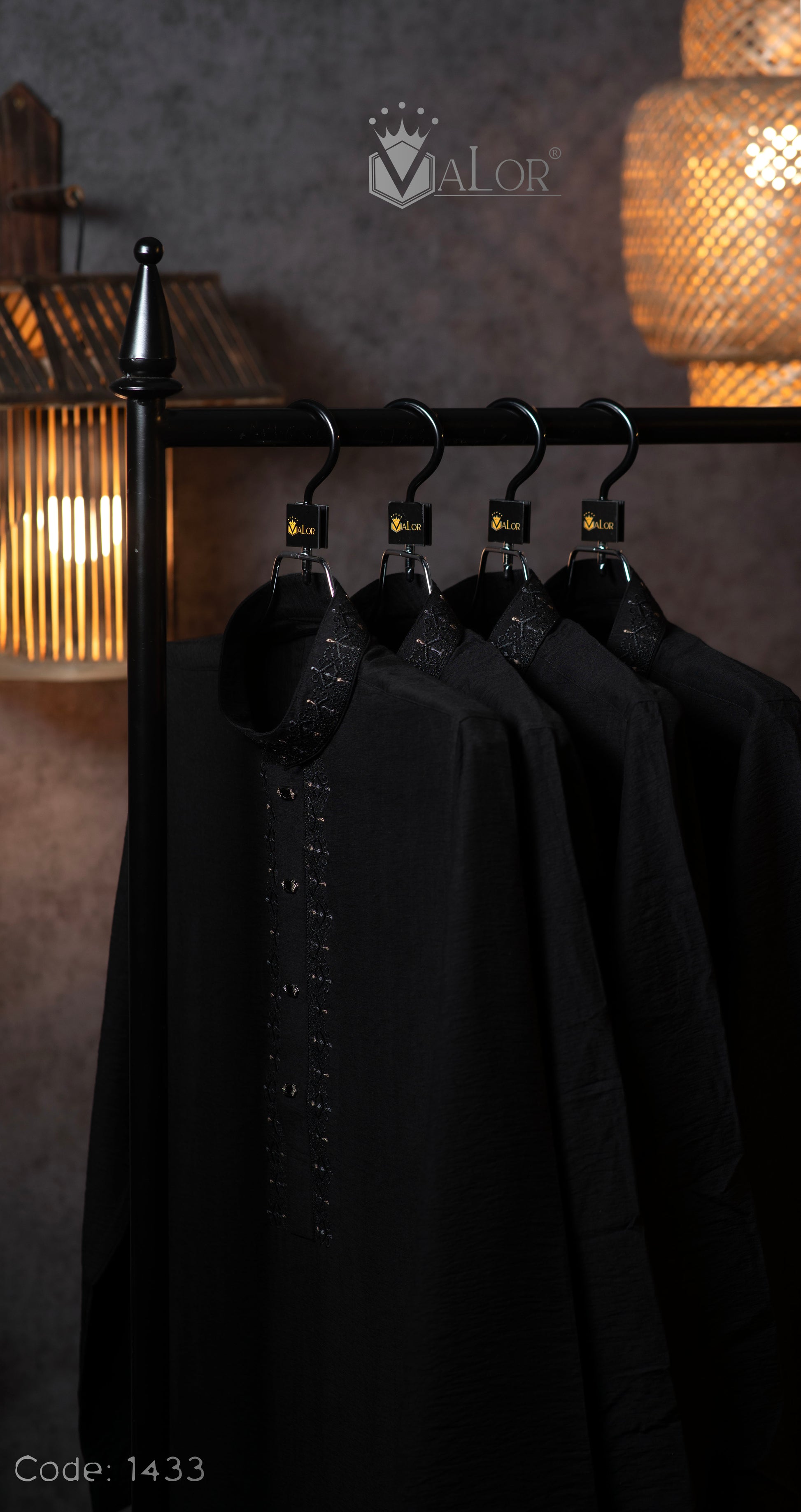 Store your VALOR Panjabi in a cool, dry place, away from direct sunlight, to prevent fabric discoloration. Cover it with a breathable garment bag to protect it from dust.
