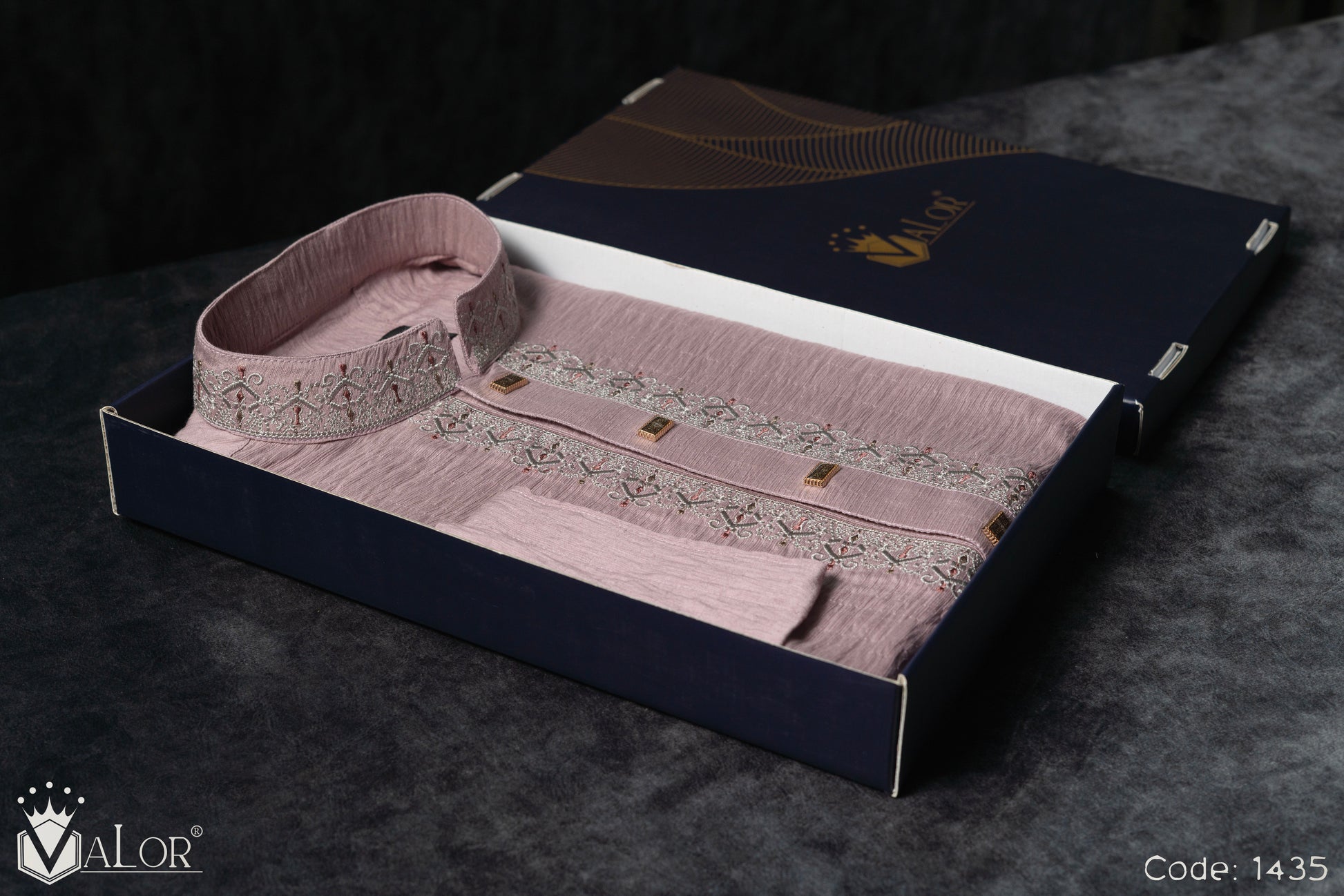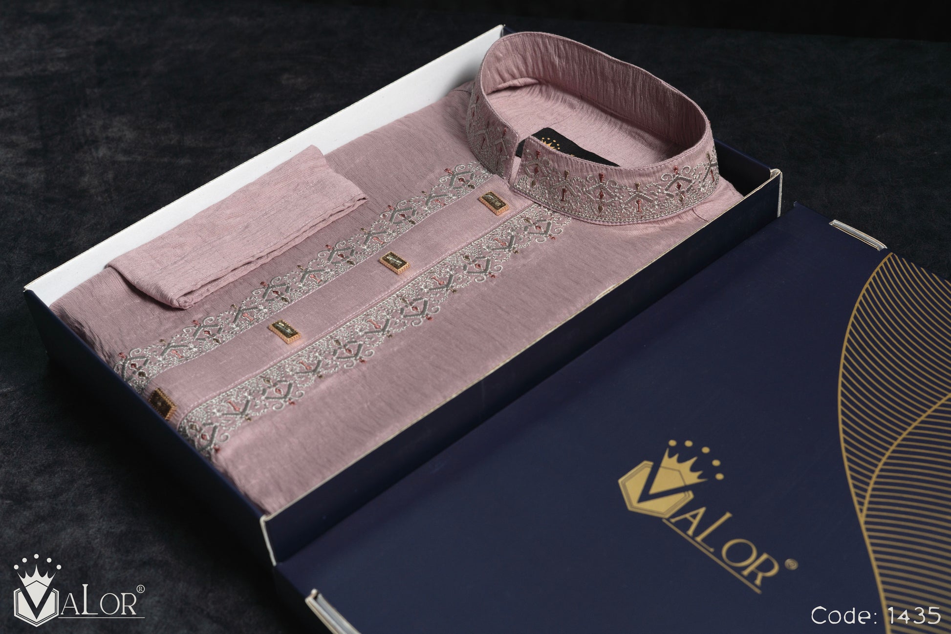 Store your VALOR Panjabi in a cool, dry place, away from direct sunlight, to prevent fabric discoloration. Cover it with a breathable garment bag to protect it from dust.