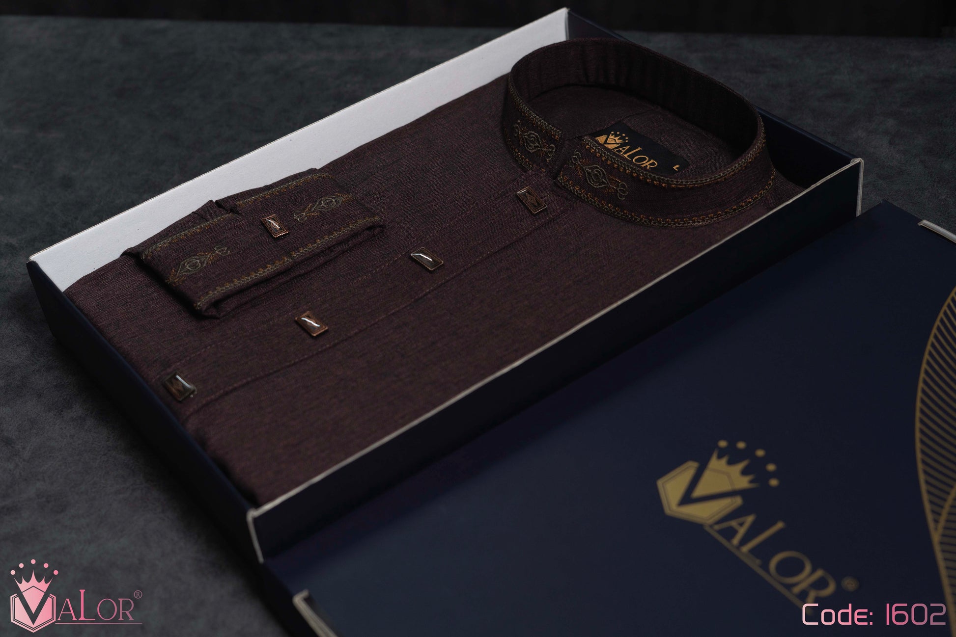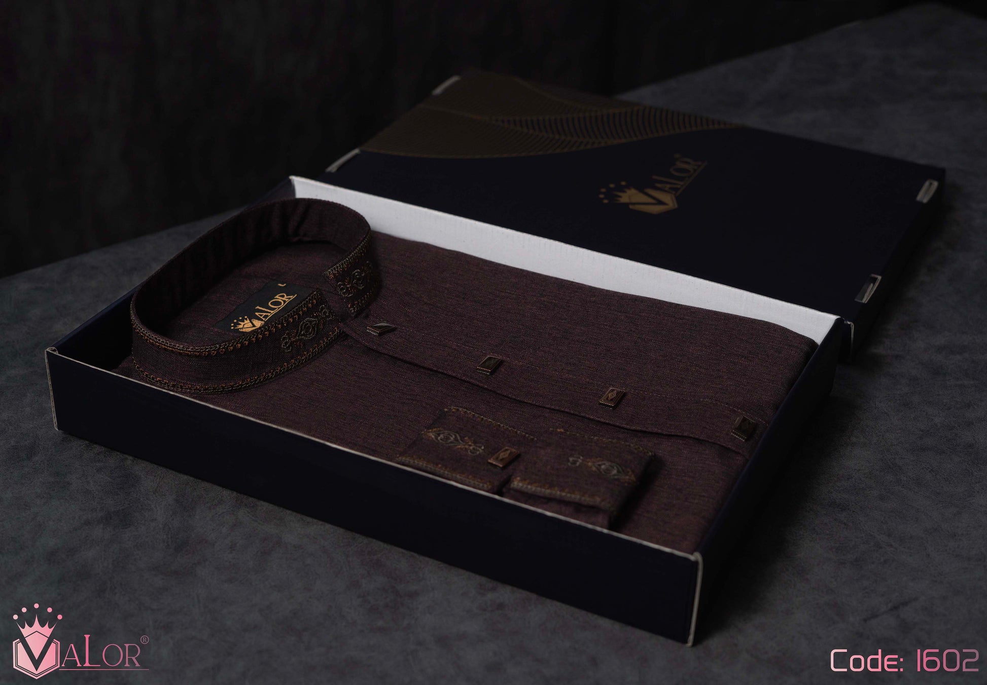 Store your VALOR Panjabi in a cool, dry place, away from direct sunlight, to prevent fabric discoloration. Cover it with a breathable garment bag to protect it from dust.