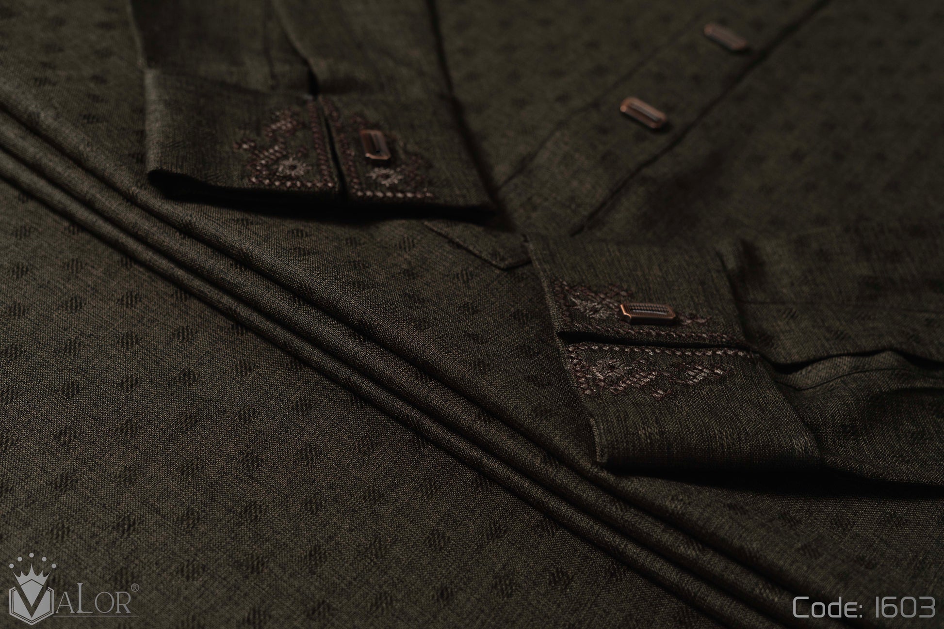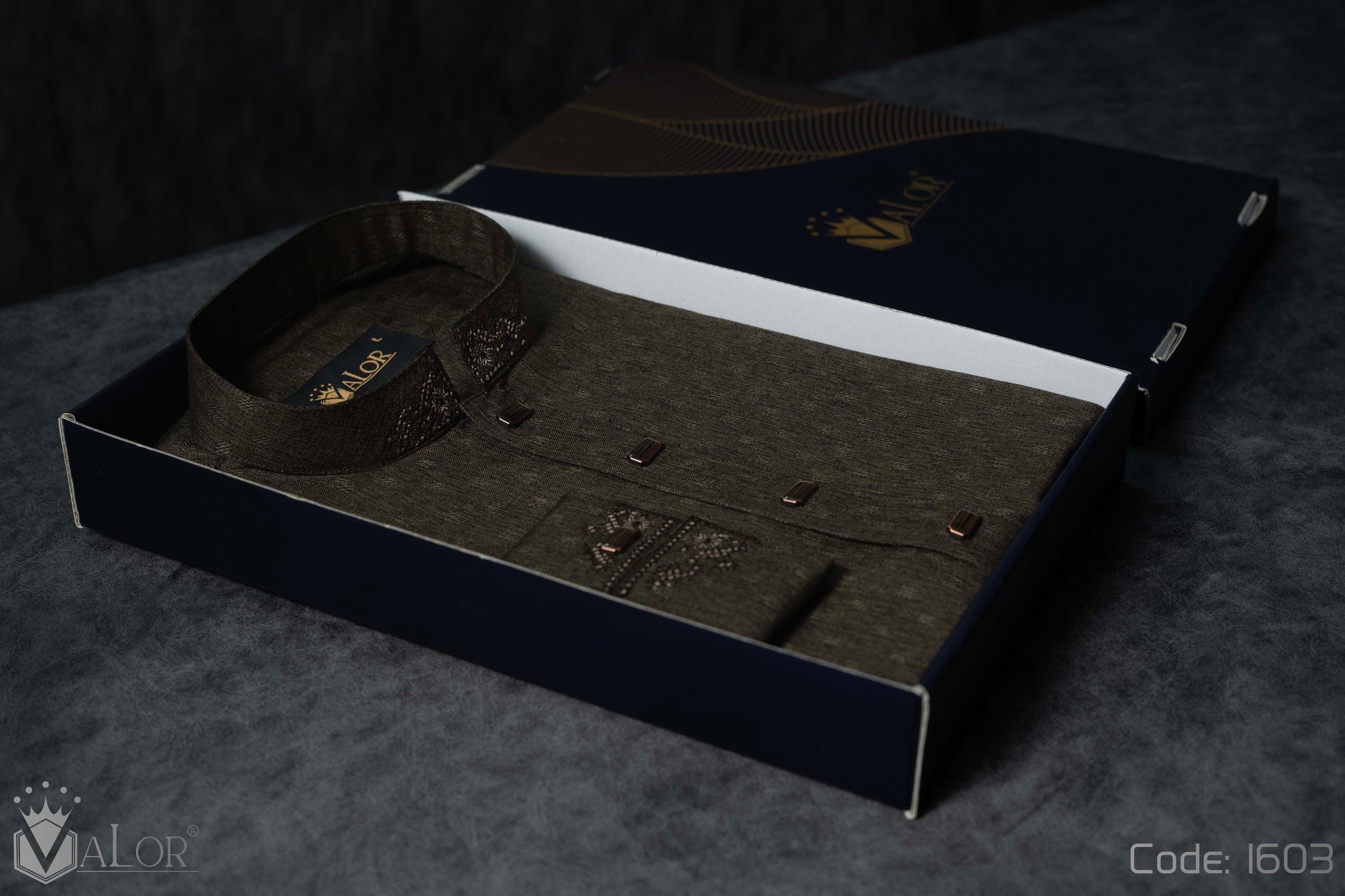 Store your VALOR Panjabi in a cool, dry place, away from direct sunlight, to prevent fabric discoloration. Cover it with a breathable garment bag to protect it from dust.