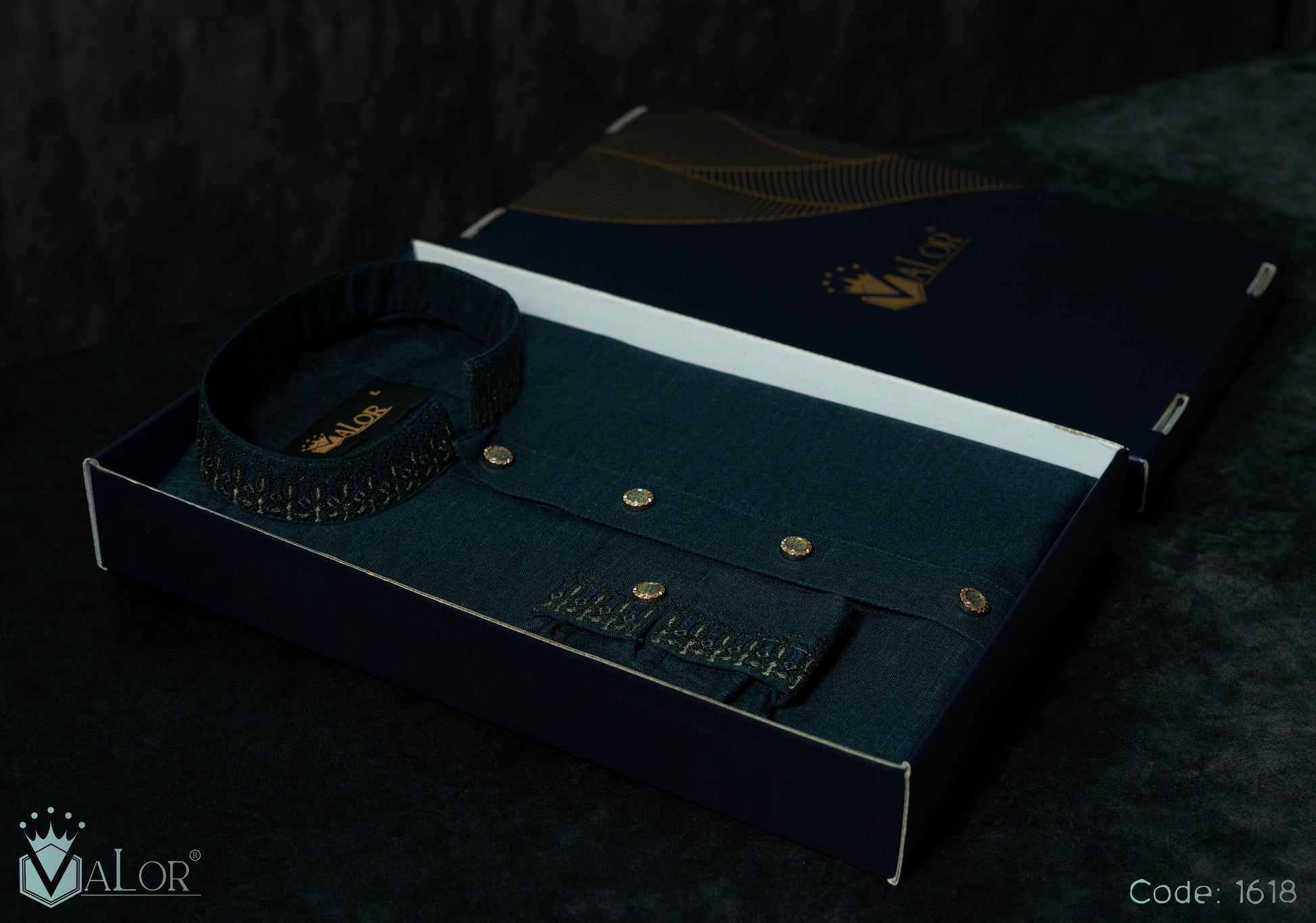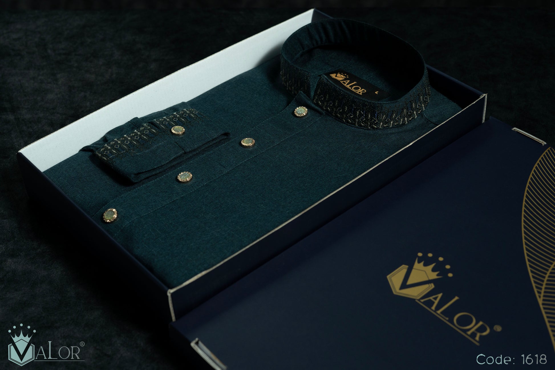 Store your VALOR Panjabi in a cool, dry place, away from direct sunlight, to prevent fabric discoloration. Cover it with a breathable garment bag to protect it from dust.