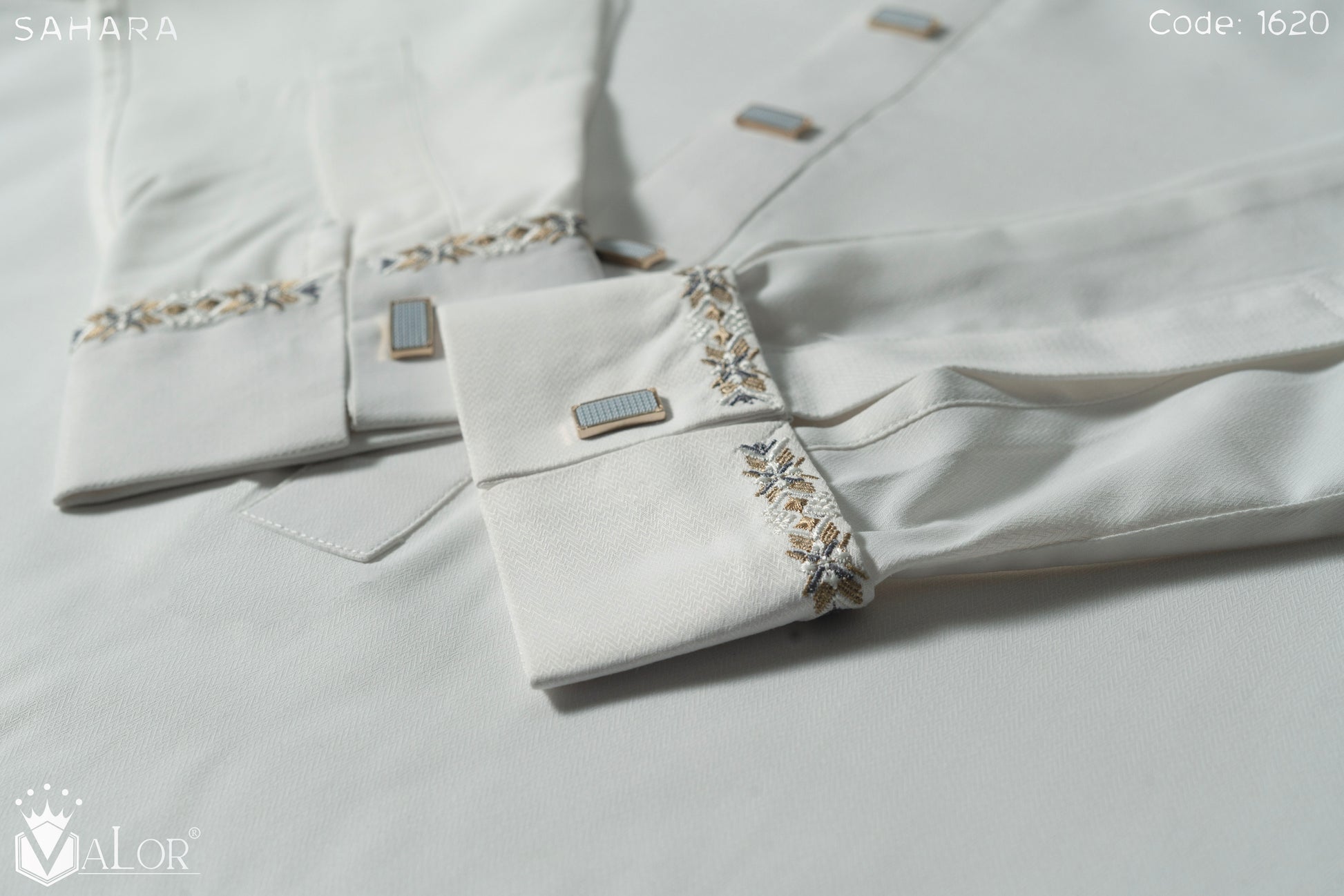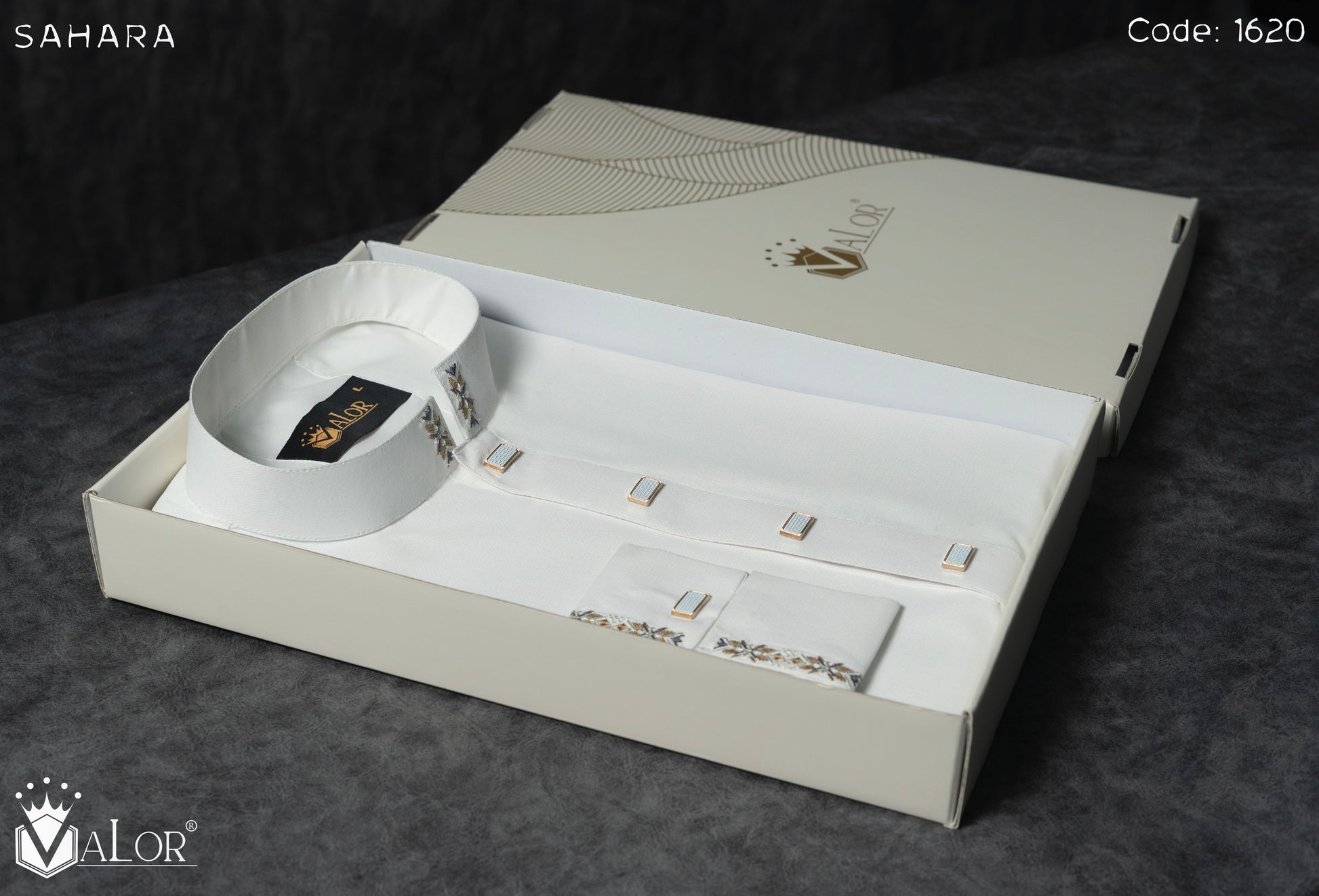Store your VALOR Panjabi in a cool, dry place, away from direct sunlight, to prevent fabric discoloration. Cover it with a breathable garment bag to protect it from dust.