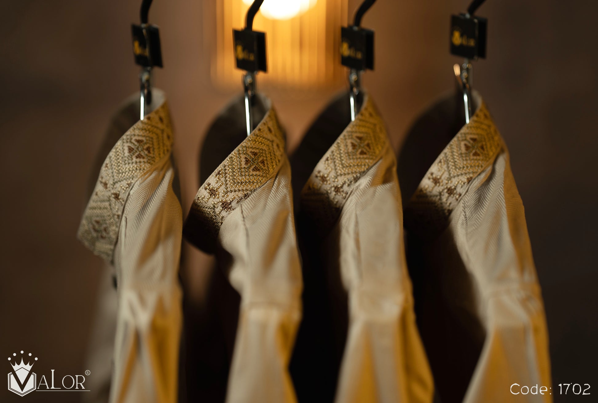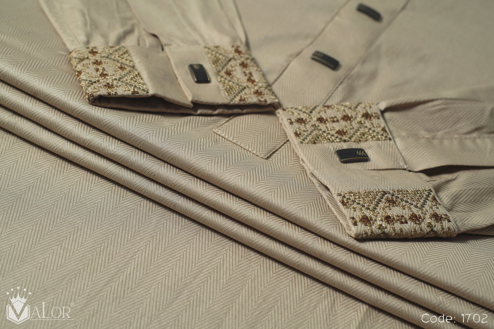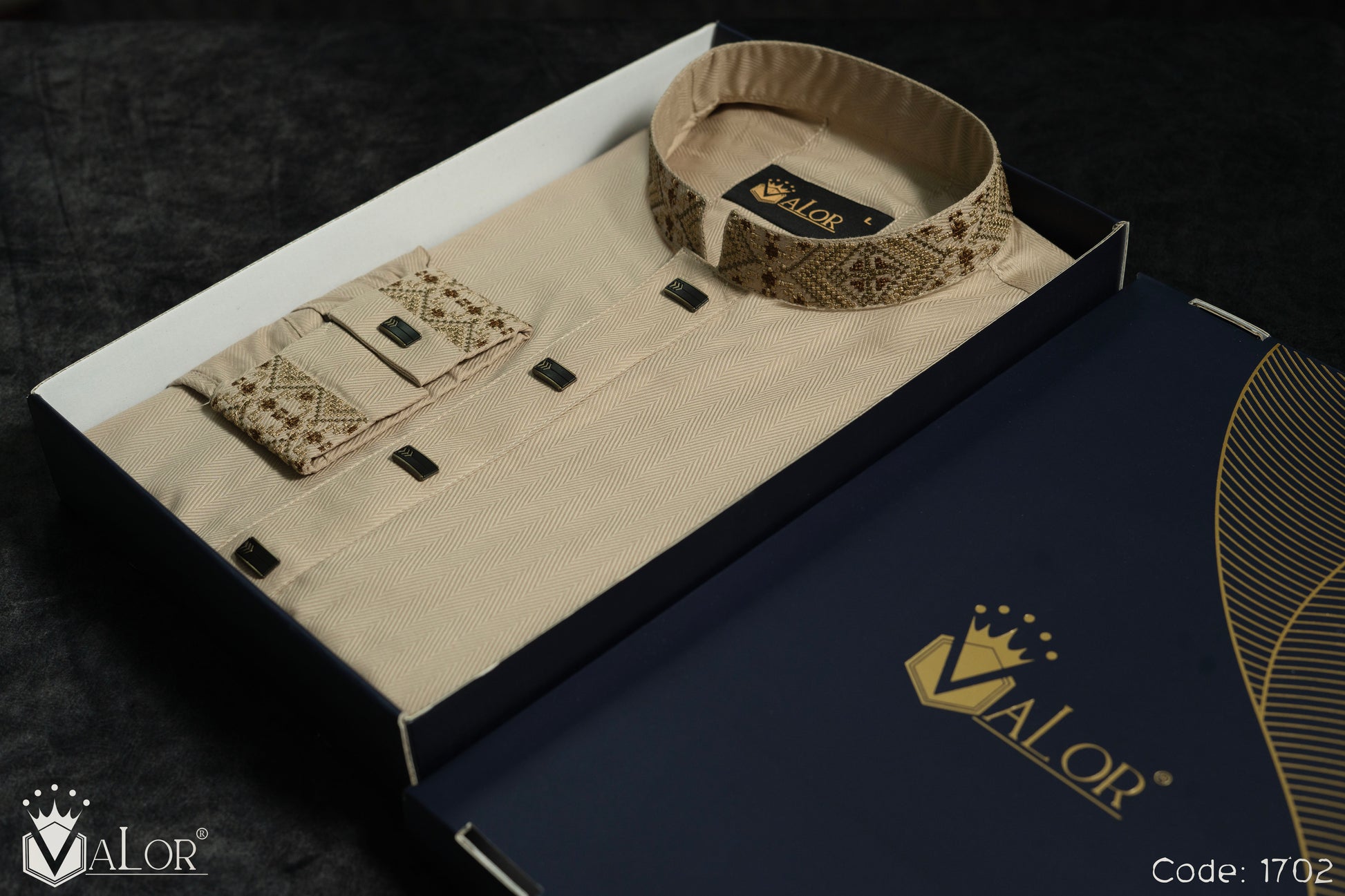 Store your VALOR Panjabi in a cool, dry place, away from direct sunlight, to prevent fabric discoloration. Cover it with a breathable garment bag to protect it from dust.