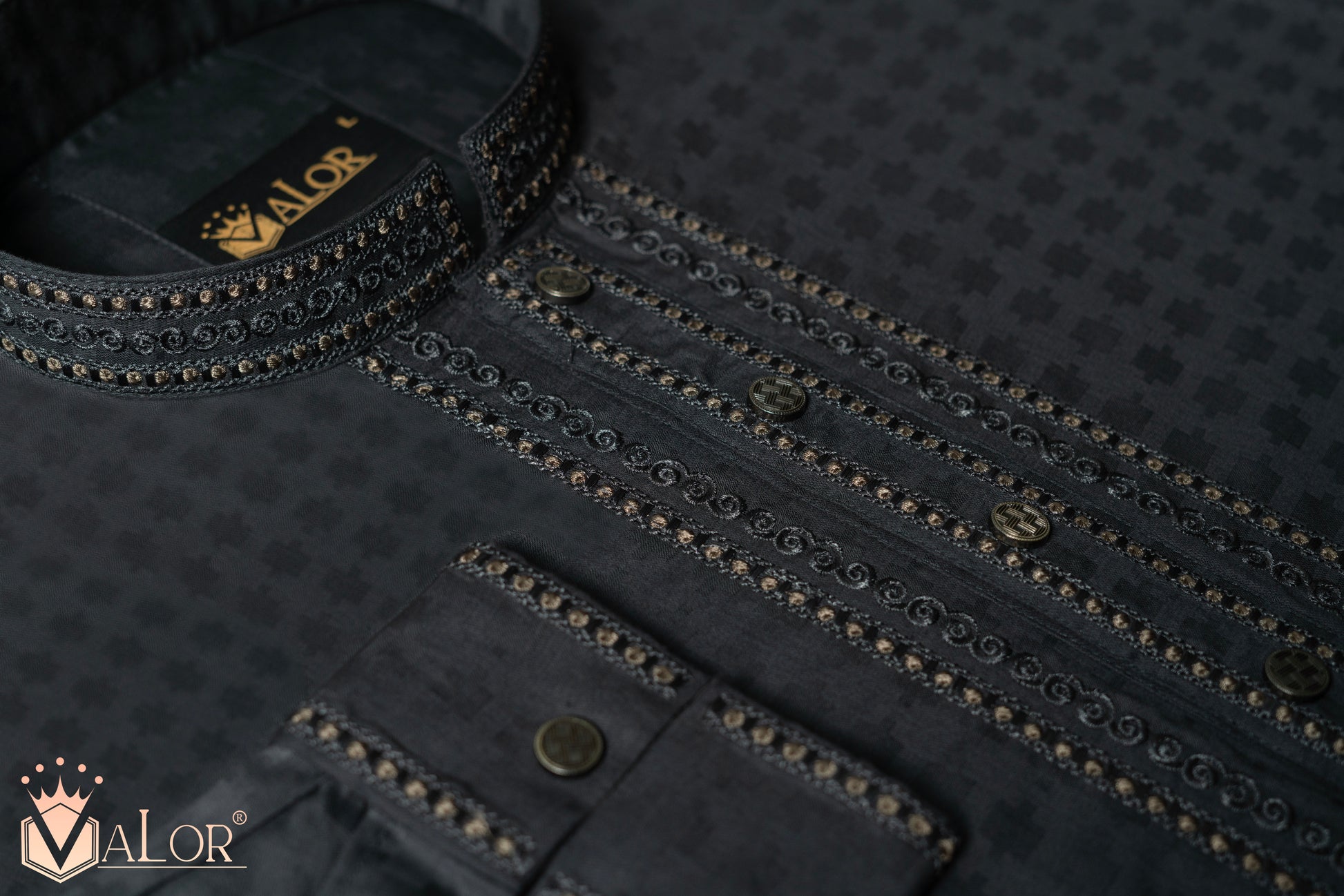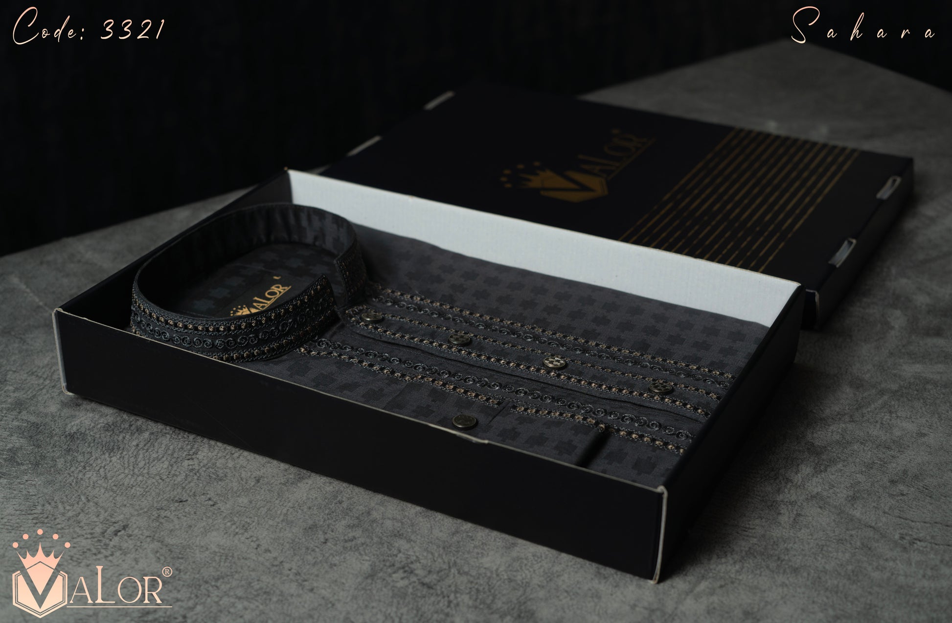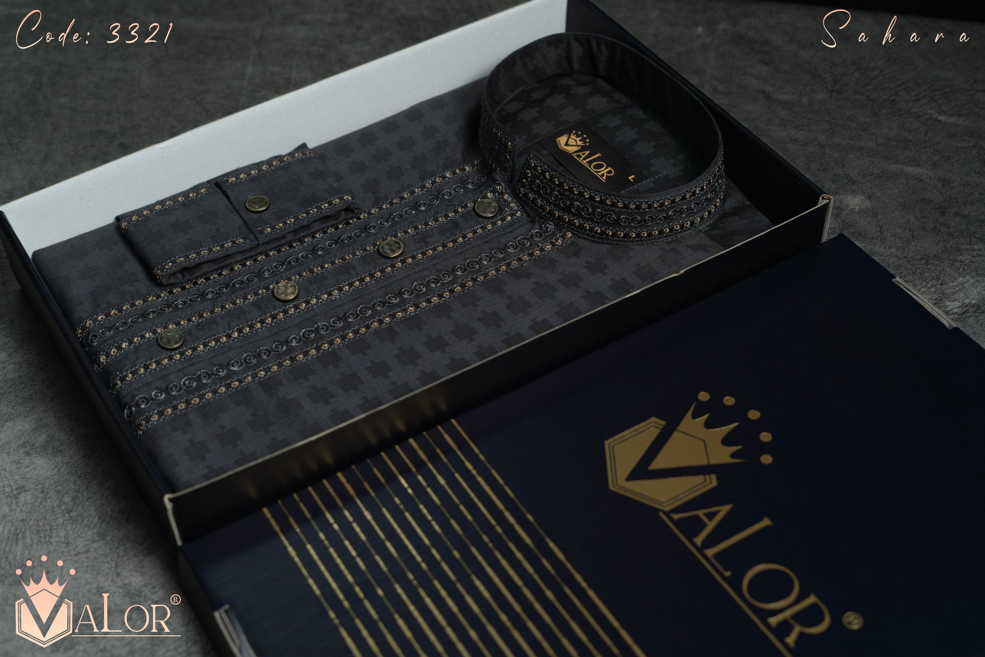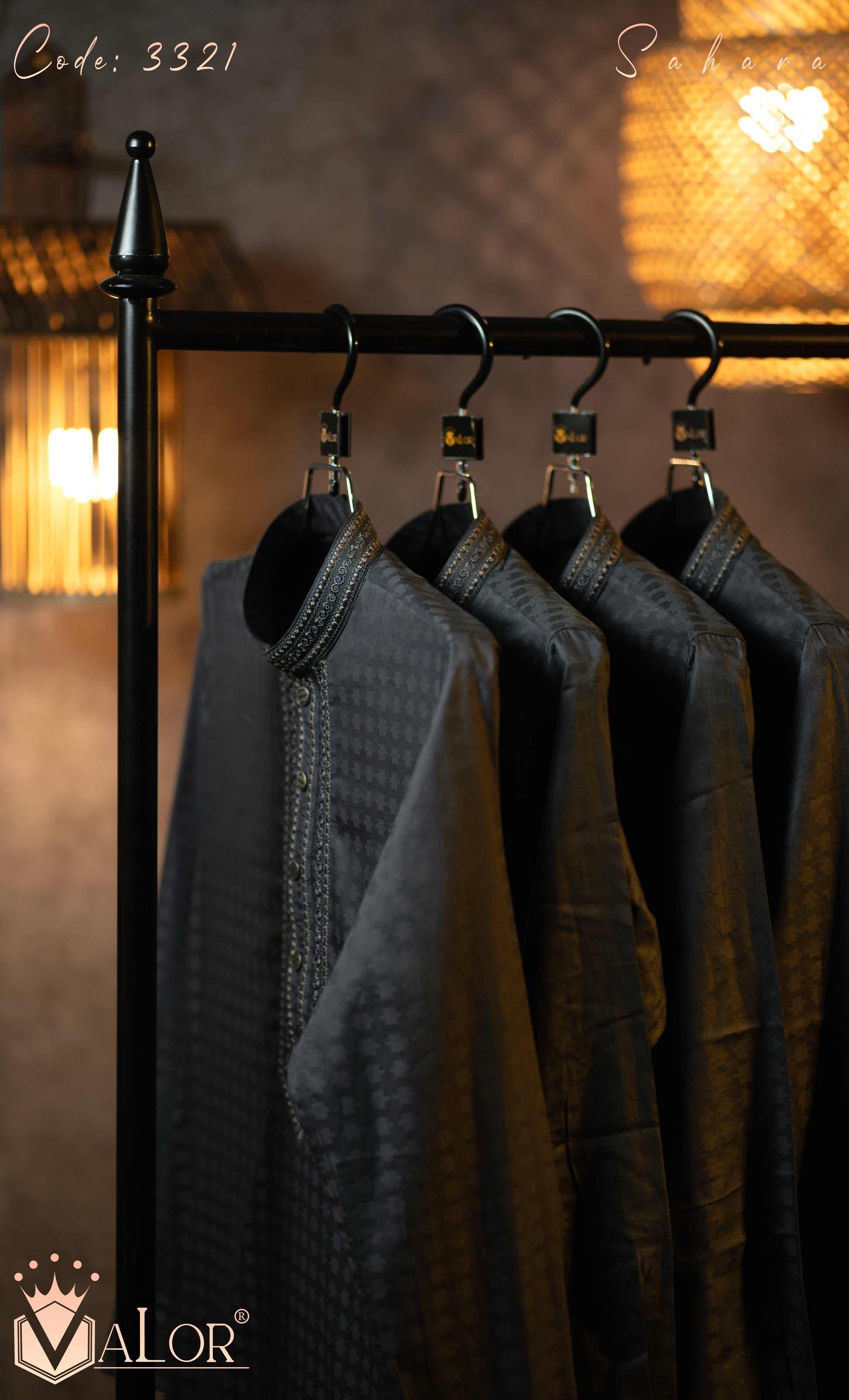 Storage: Store your VALOR Panjabi in a cool, dry place, away from direct sunlight, to prevent fabric discoloration. Cover it with a breathable garment bag to protect it from dust.