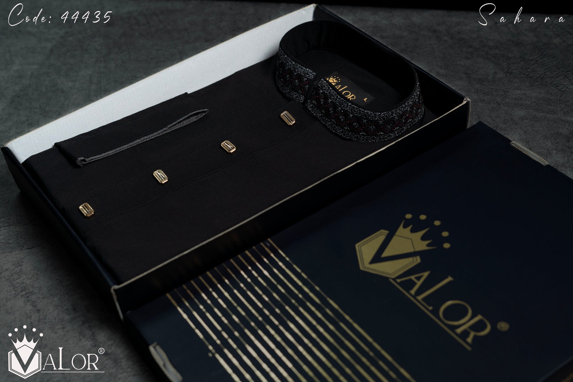 Storage: Store your VALOR Panjabi in a cool, dry place, away from direct sunlight, to prevent fabric discoloration. Cover it with a breathable garment bag to protect it from dust.