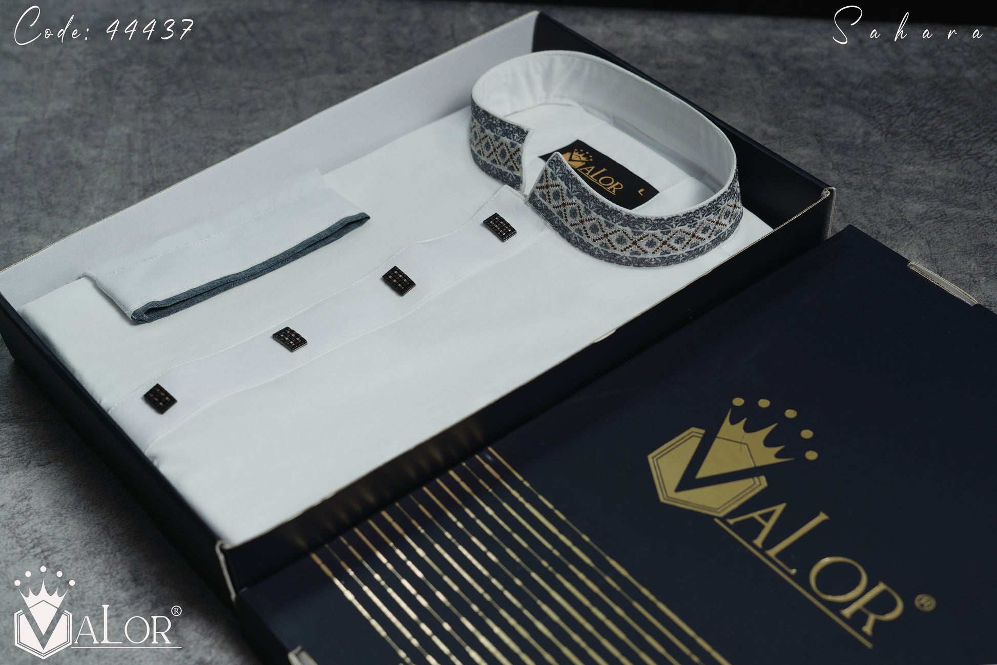 Storage: Store your VALOR Panjabi in a cool, dry place, away from direct sunlight, to prevent fabric discoloration. Cover it with a breathable garment bag to protect it from dust.