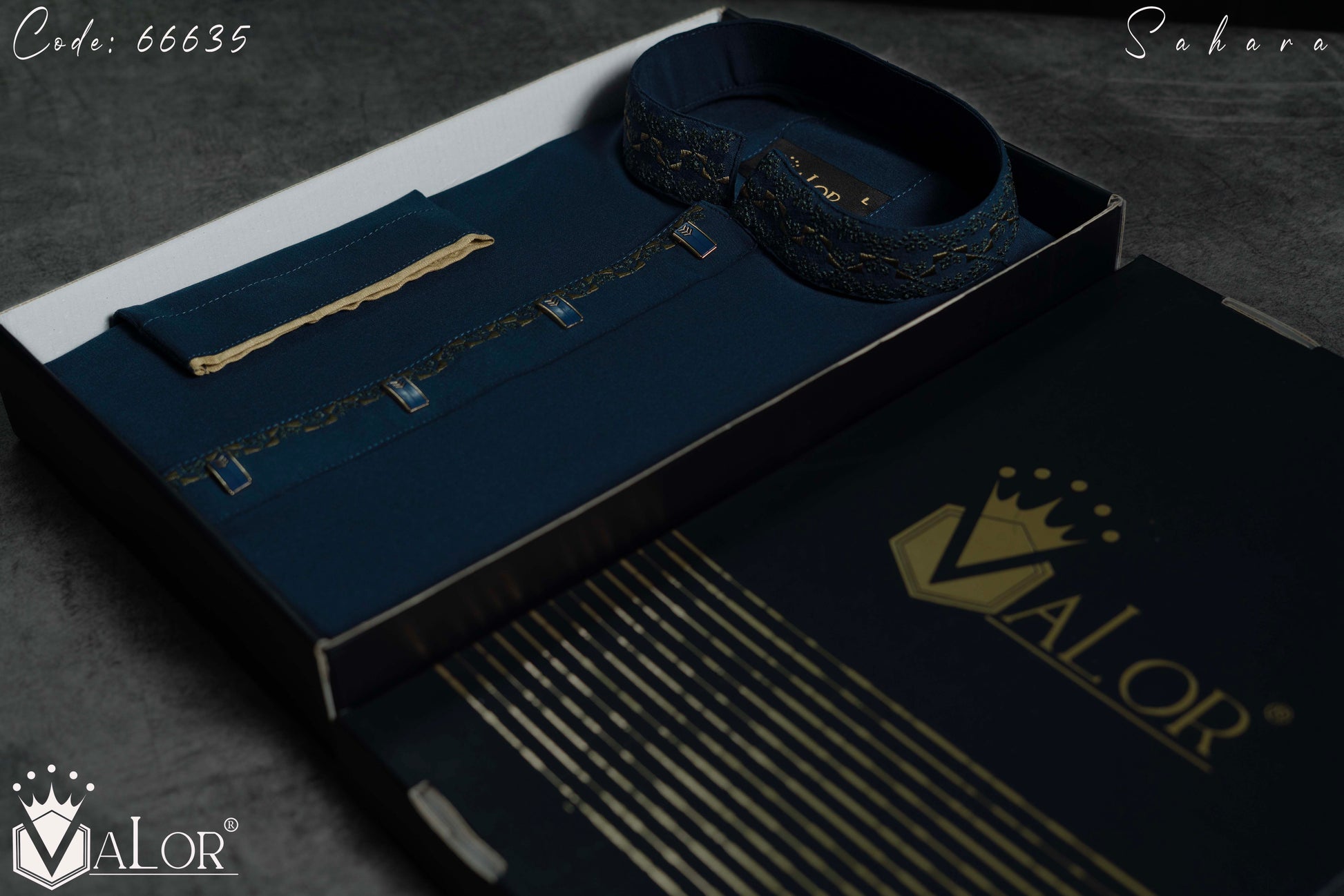 Storage: Store your VALOR Panjabi in a cool, dry place, away from direct sunlight, to prevent fabric discoloration. Cover it with a breathable garment bag to protect it from dust.