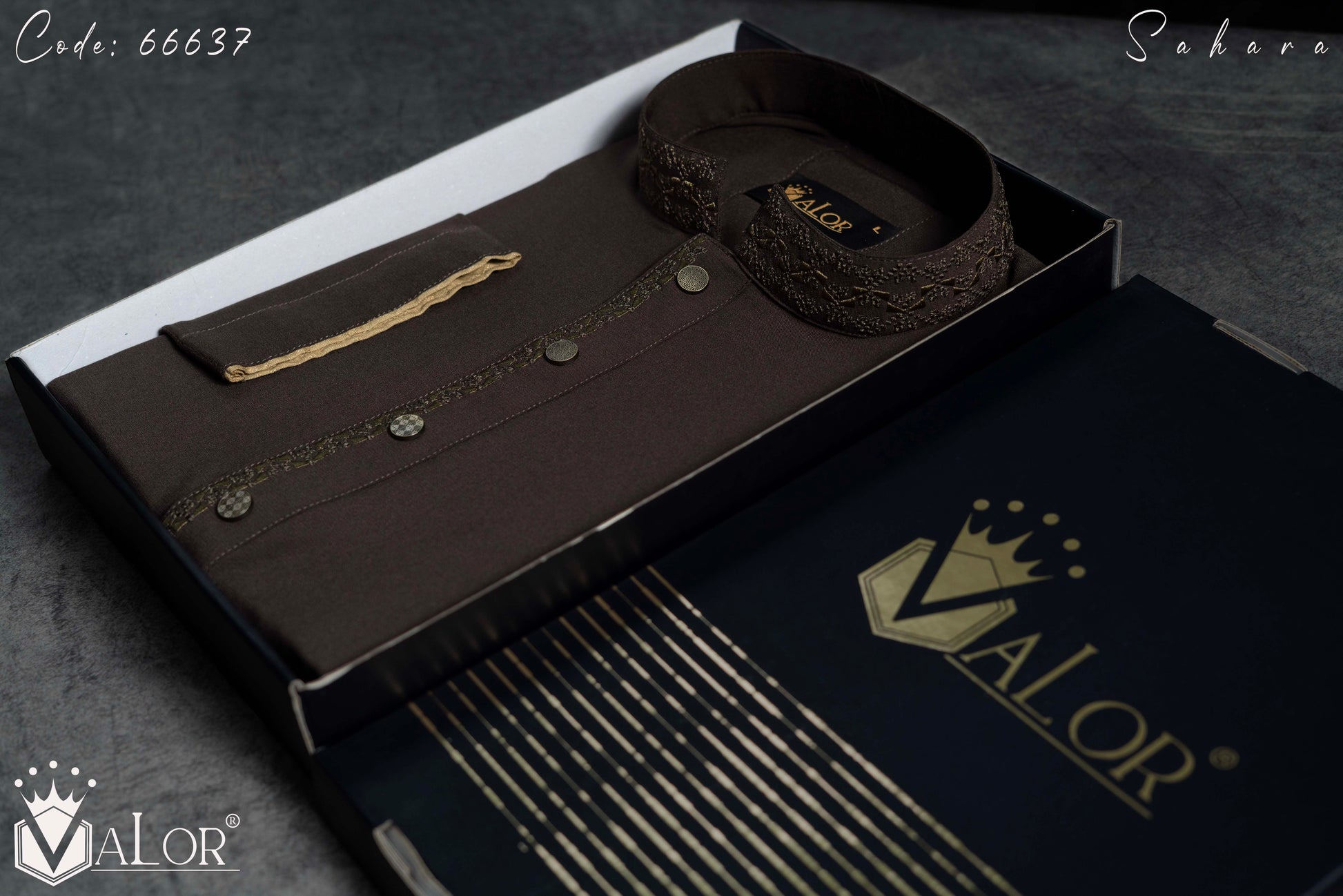 Storage: Store your VALOR Panjabi in a cool, dry place, away from direct sunlight, to prevent fabric discoloration. Cover it with a breathable garment bag to protect it from dust.