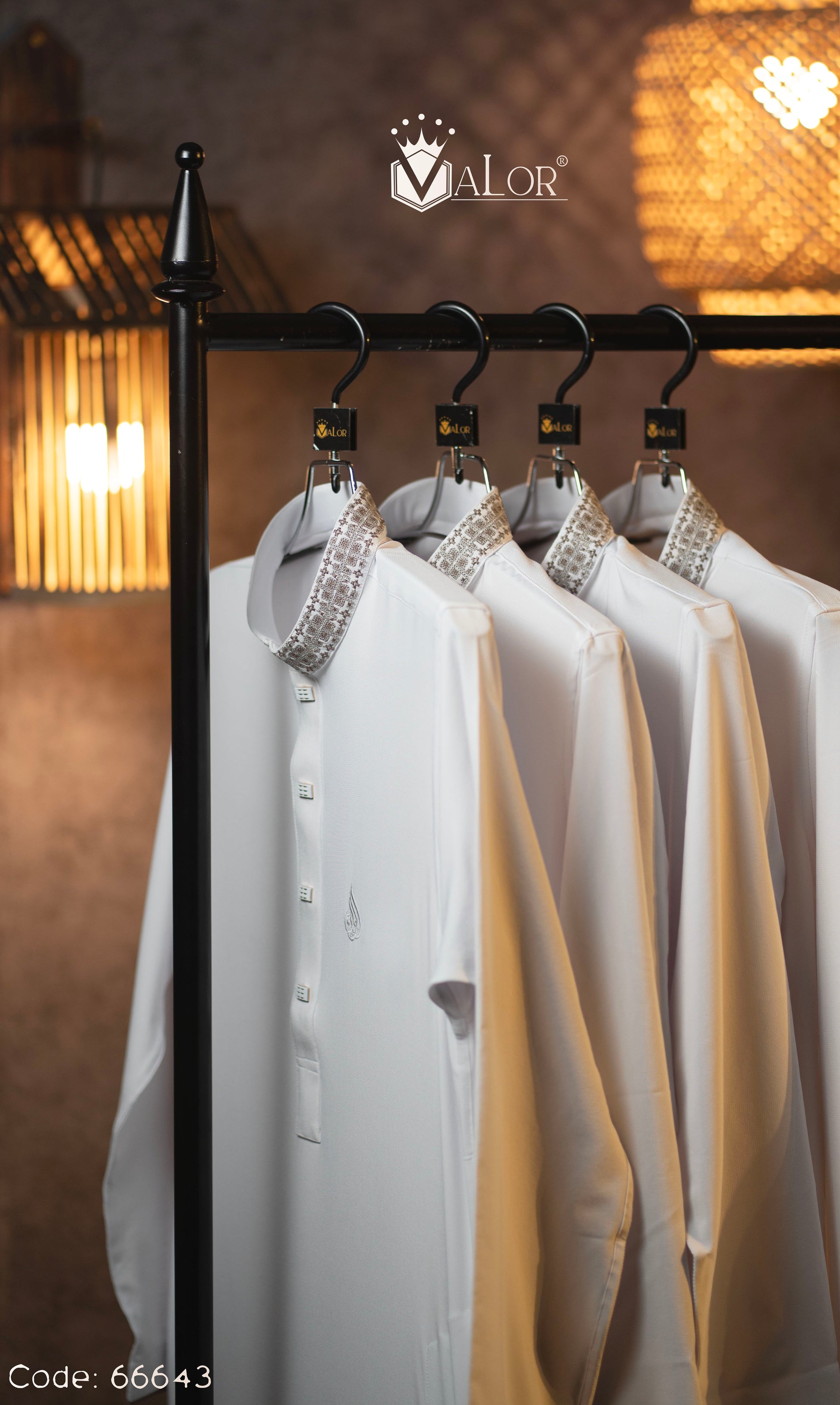 Store your VALOR Panjabi in a cool, dry place, away from direct sunlight, to prevent fabric discoloration. Cover it with a breathable garment bag to protect it from dust.
