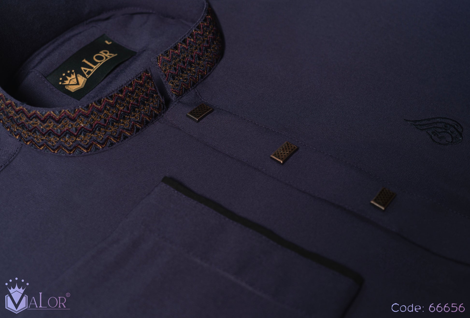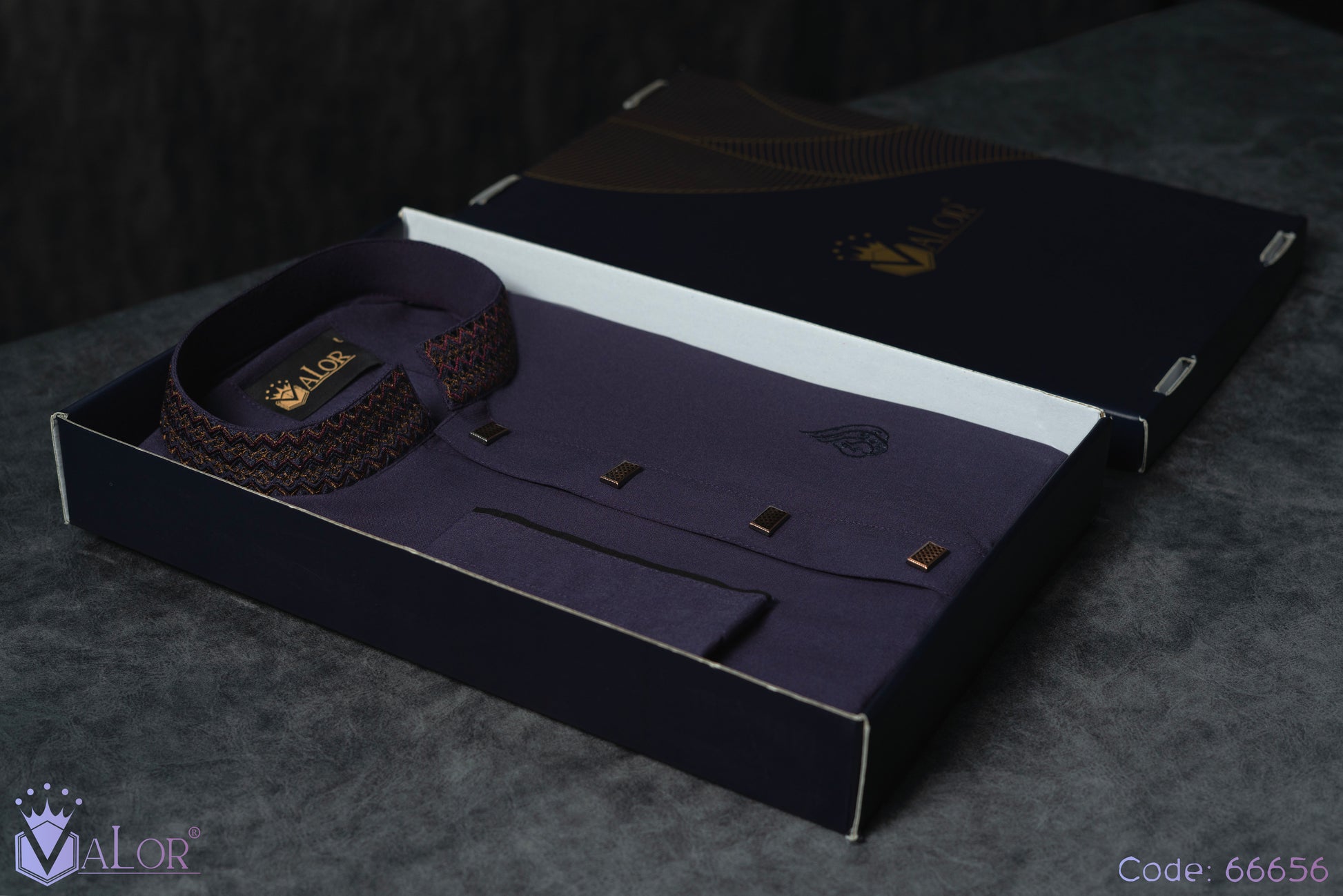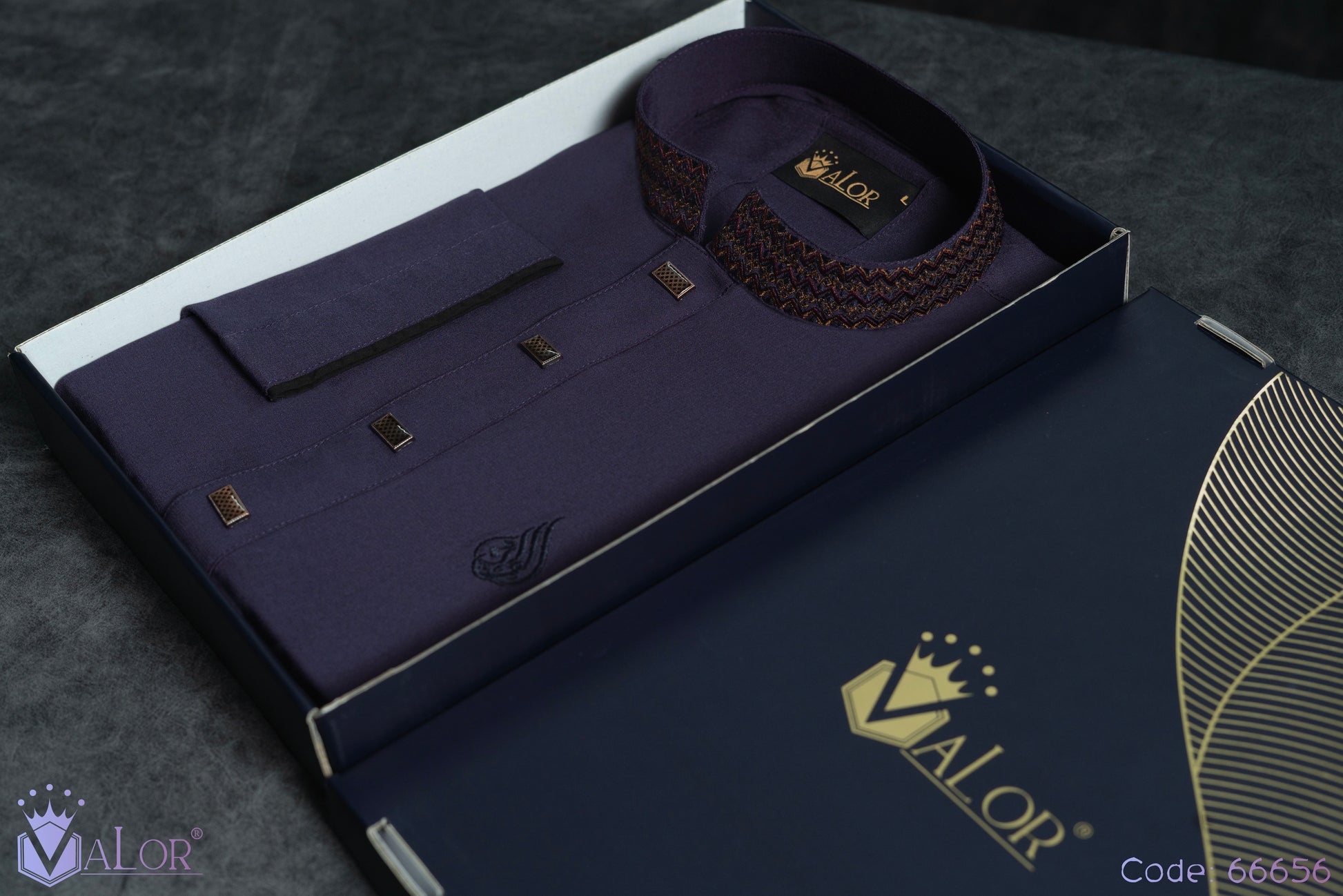 Store your VALOR Panjabi in a cool, dry place, away from direct sunlight, to prevent fabric discoloration. Cover it with a breathable garment bag to protect it from dust.