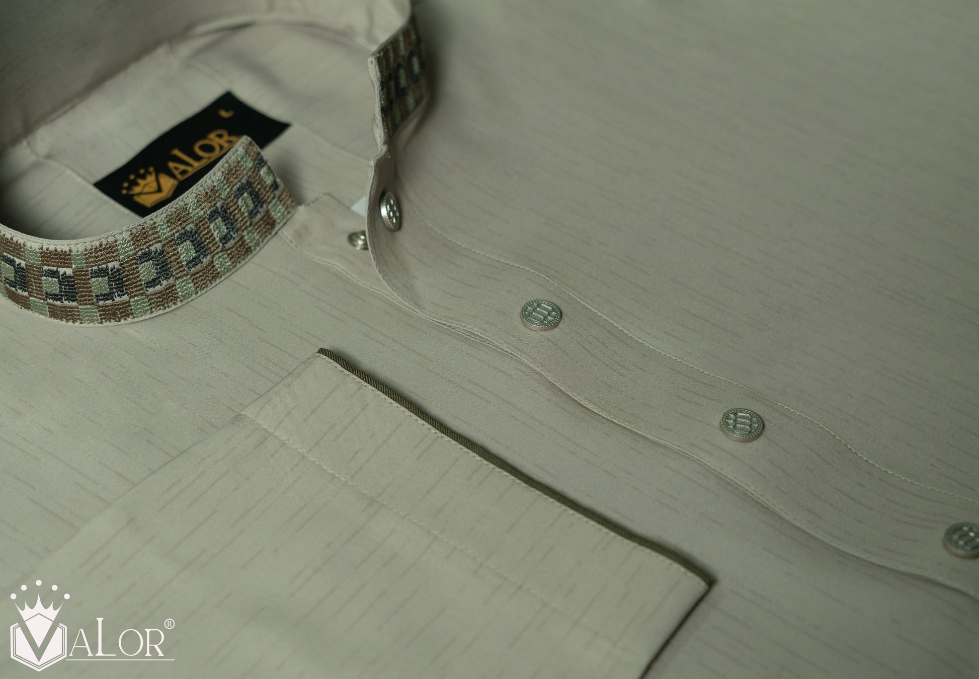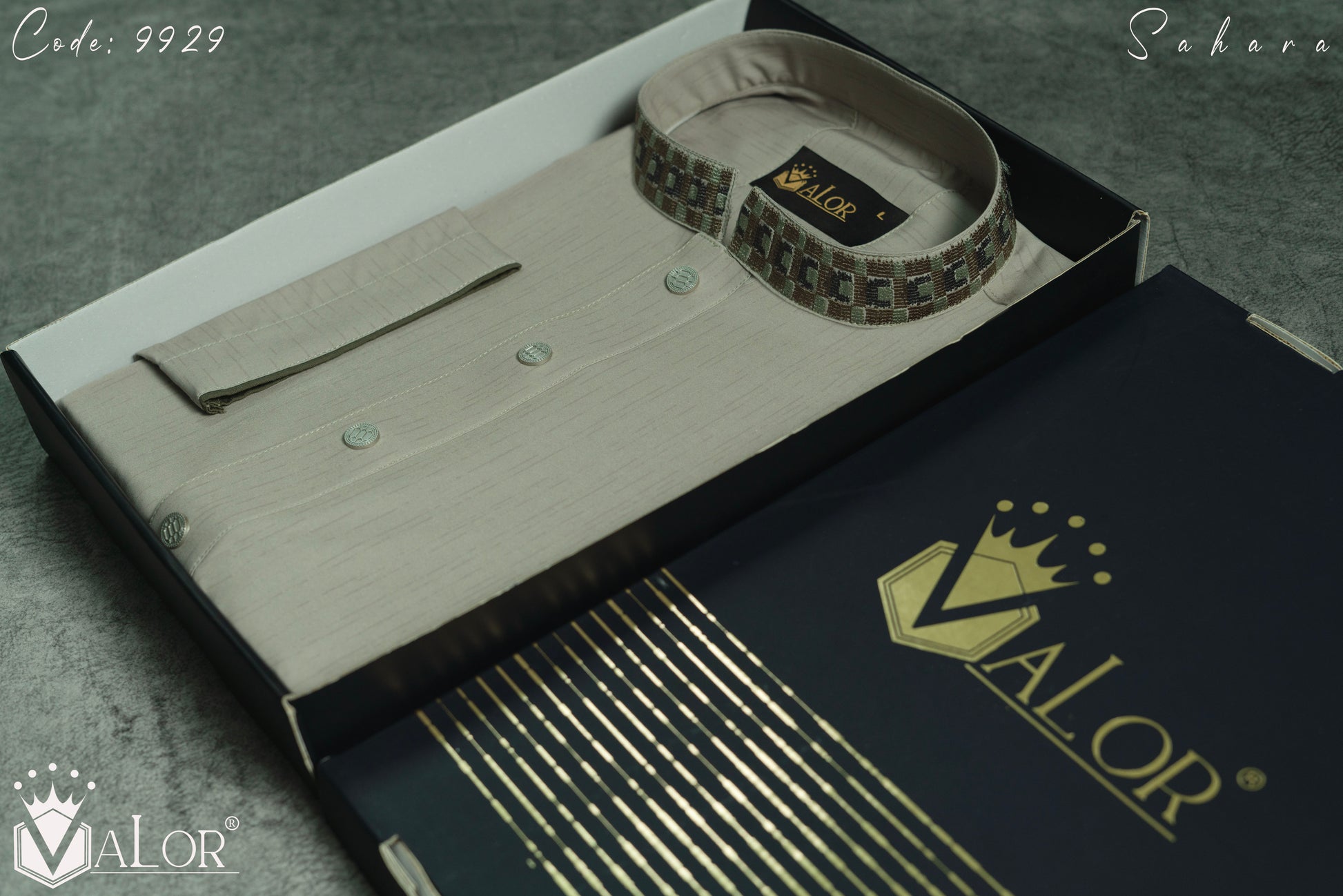 Storage: Store your VALOR Panjabi in a cool, dry place, away from direct sunlight, to prevent fabric discoloration. Cover it with a breathable garment bag to protect it from dust.